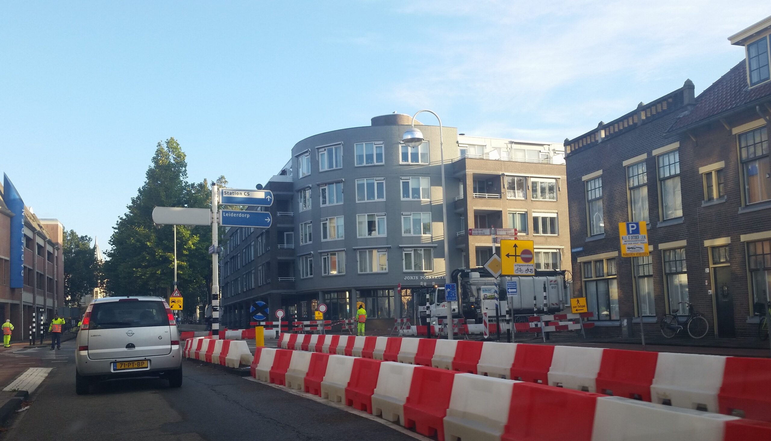 Na een korte onderbreking rond Leidens Ontzet is de gemeente weer volop aan de slag met de herinrichting van de omgeving van het Levendaal, de Geregracht en de Oranjeboomstraat. Voor het verkeer is het opletten geblazen. De situatie is momenteel zeer onoverzichtelijk. Vooral op de Oranjeboomstraat en de St. Jorissteeg waar het verkeer om en om gebruik moet maken van slechts één rijstrook.