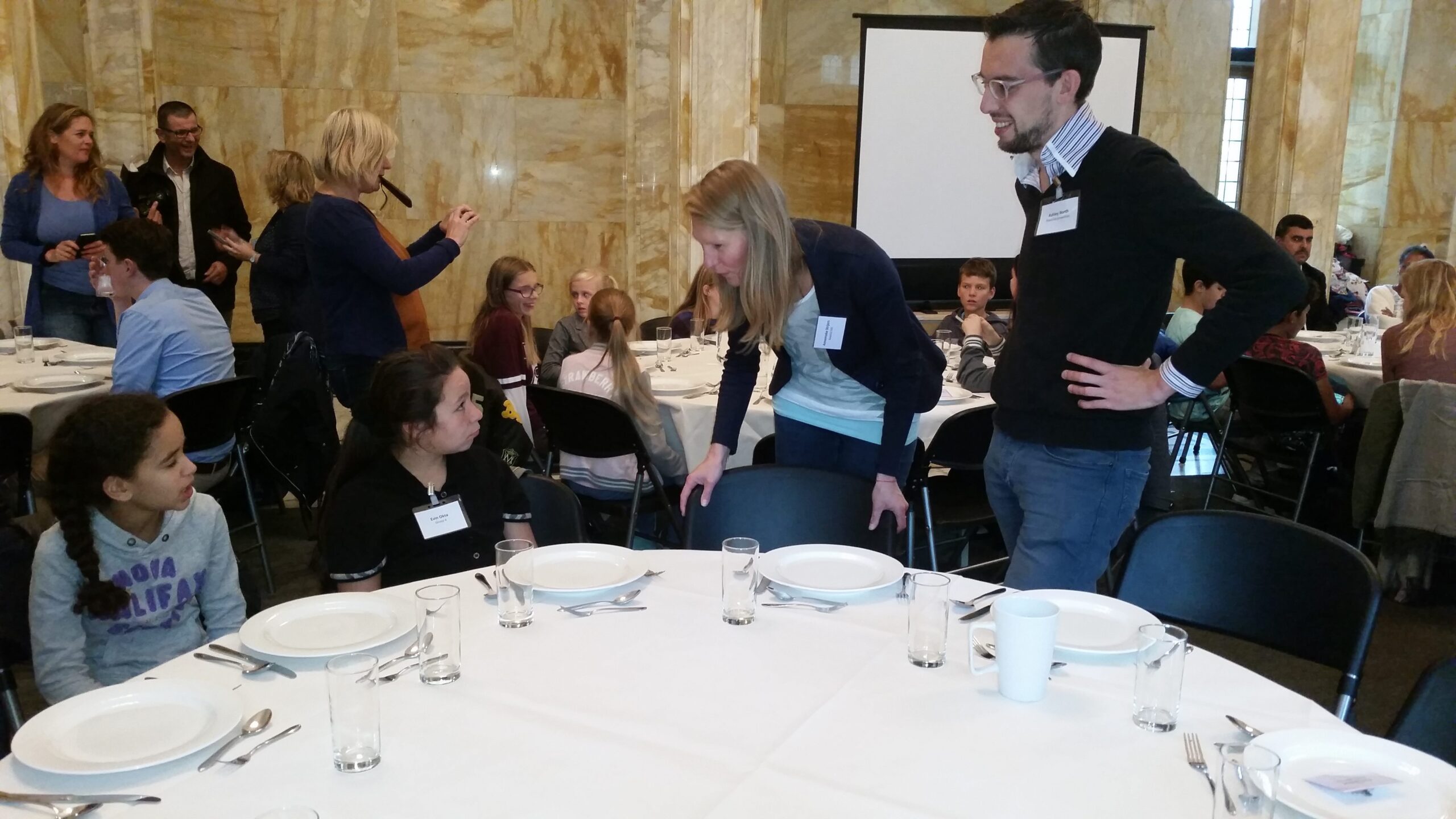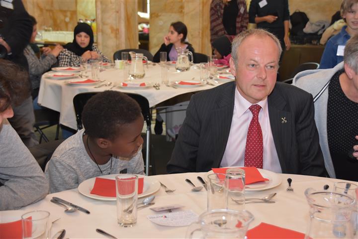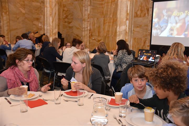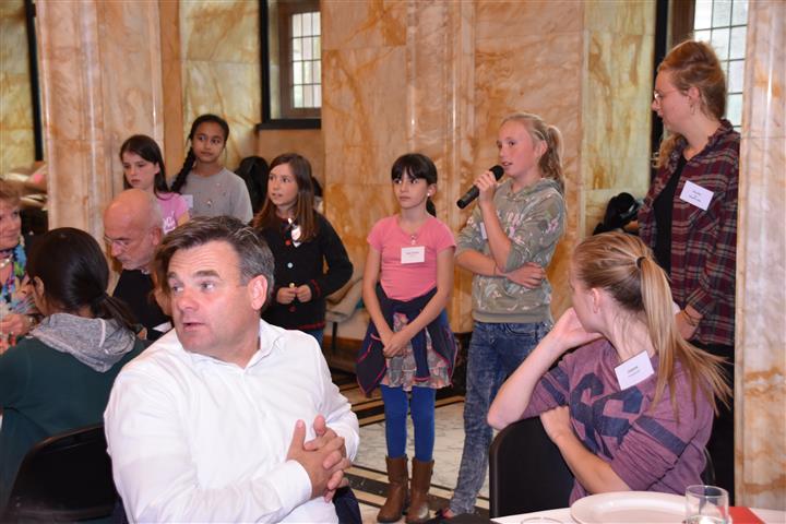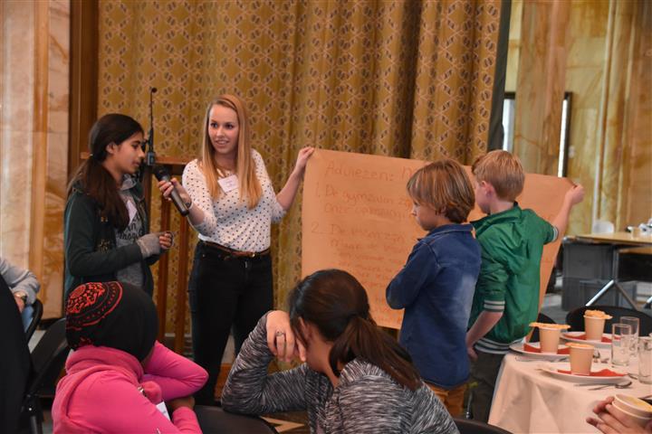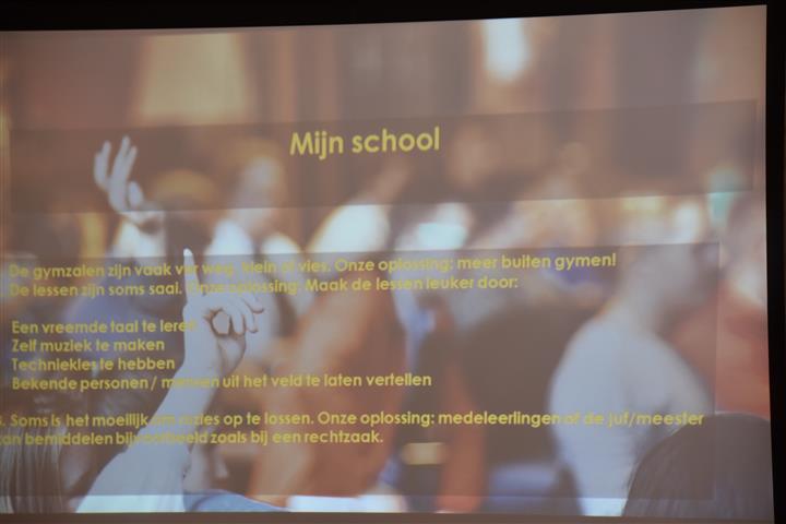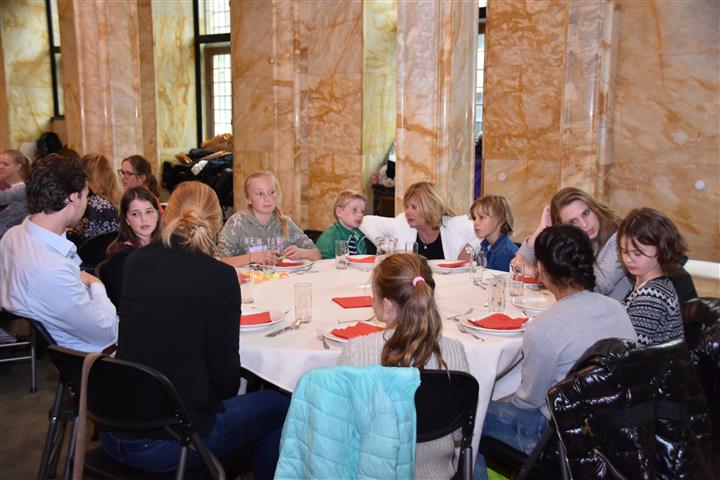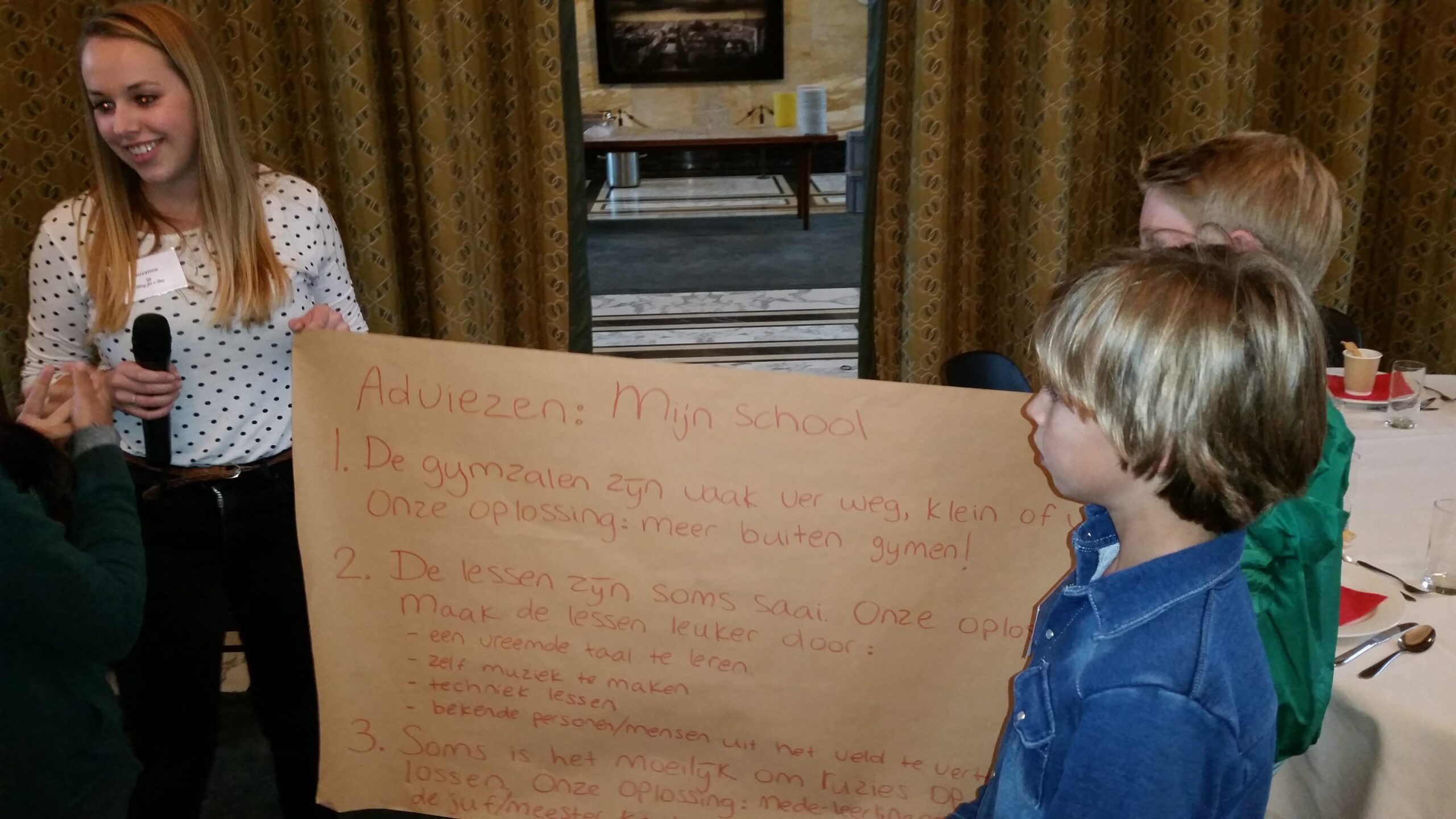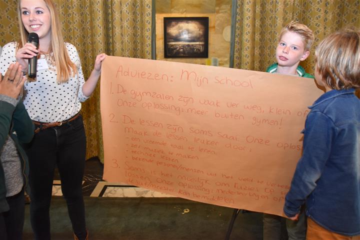 Als je voor één dag koning zou zijn, wat zou je dan veranderen. Dat konden de kinderen gisteren zelf ervaren tijdens de meeting waarbij ze niet alleen met talloze ideeën op de proppen kwamen, maar ook met een zelfgemaakte maaltijd. Voor dat driegangendiner waren raads- en collegeleden uitgenodigd. Terwijl ze samen met de kinderen aan tafel gingen, werden de ideeën gepresenteerd.