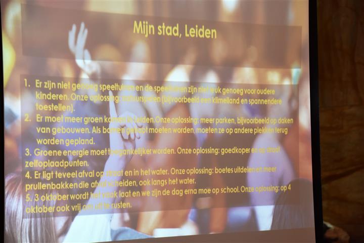 King for a Day hield gisteren een bijeenkomst in het stadhuis om met suggesties te komen voor de gemeente. Leerlingen van de groepen 7 en 8 van verschillende Leidse basisscholen gingen in verschillende themagroepjes aan de slag om de gemeente te voorzien van suggesties om de eigen school of omgeving beter of leuker te maken. Ook vrije tijd en gezondheid kwamen aan de orde.