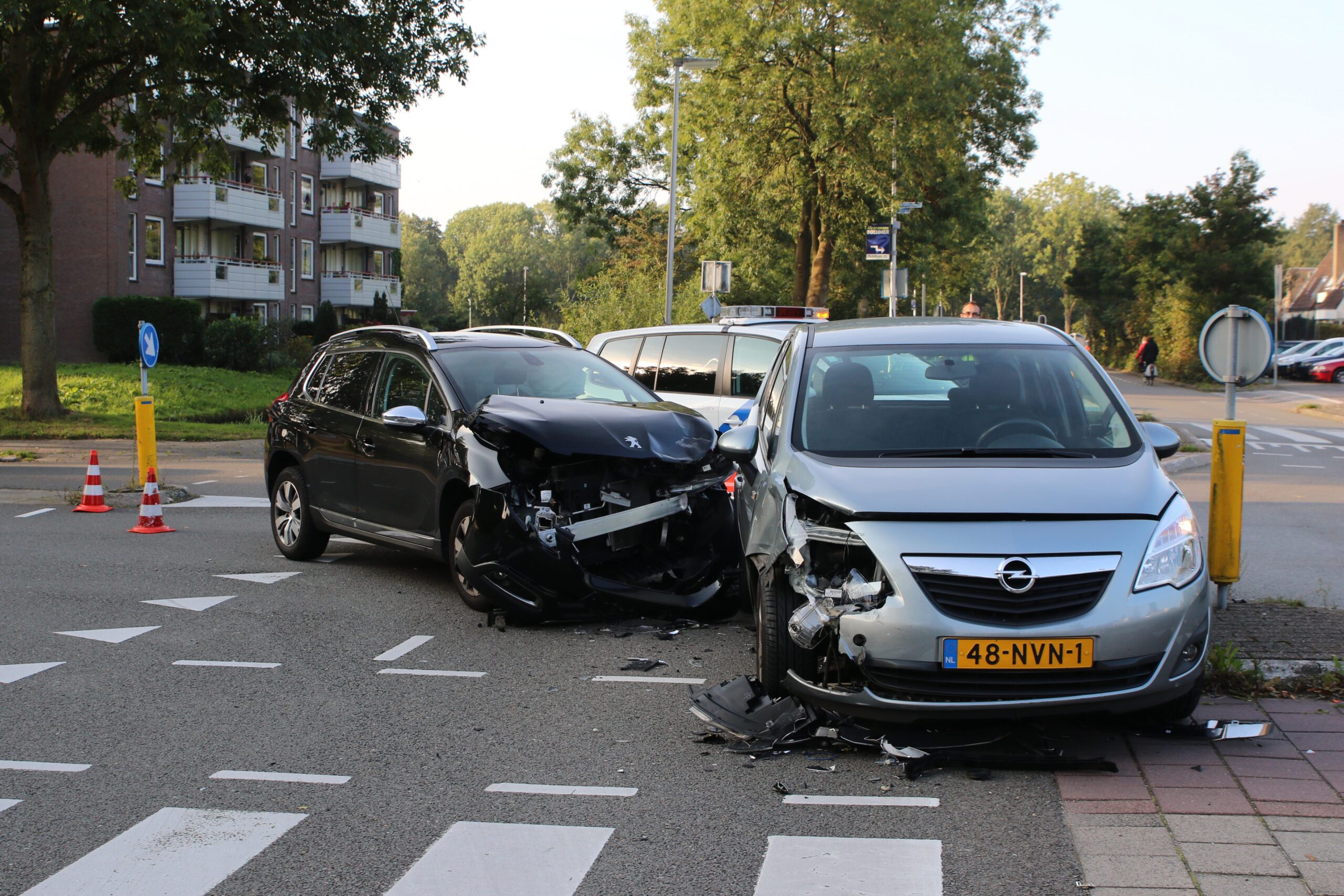 Een ongeval op de Gallaslaan met de Voorhoflaan in Leiderdorp heeft vanmorgen rond 10.00 uur voor enorme schade gezorgd. Waarschijnlijk heeft een van de auto’s de ander over het hoofd gezien tijdens het oprijden van de weg. Bij het ongeval zijn geen gewonden gevallen. Beide auto’s worden geborgen.