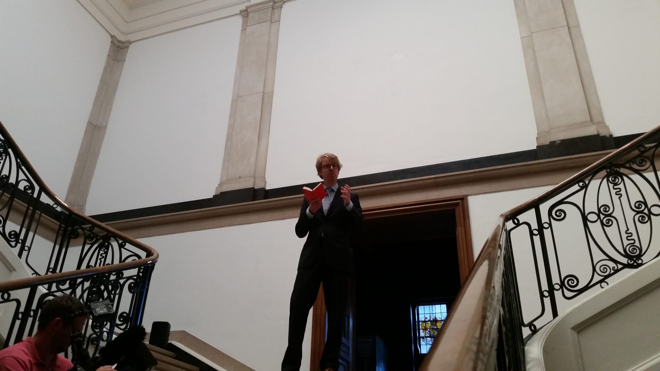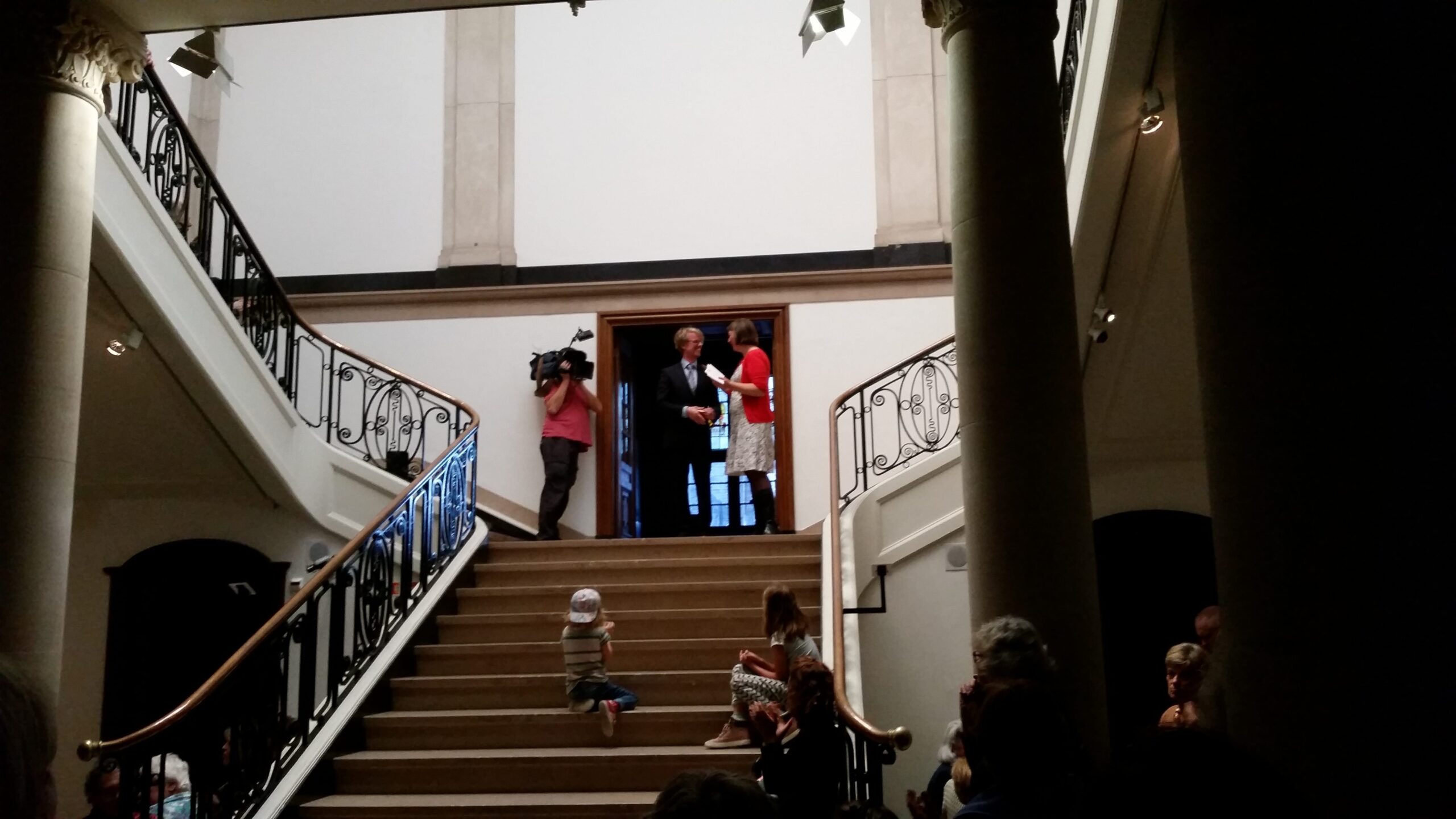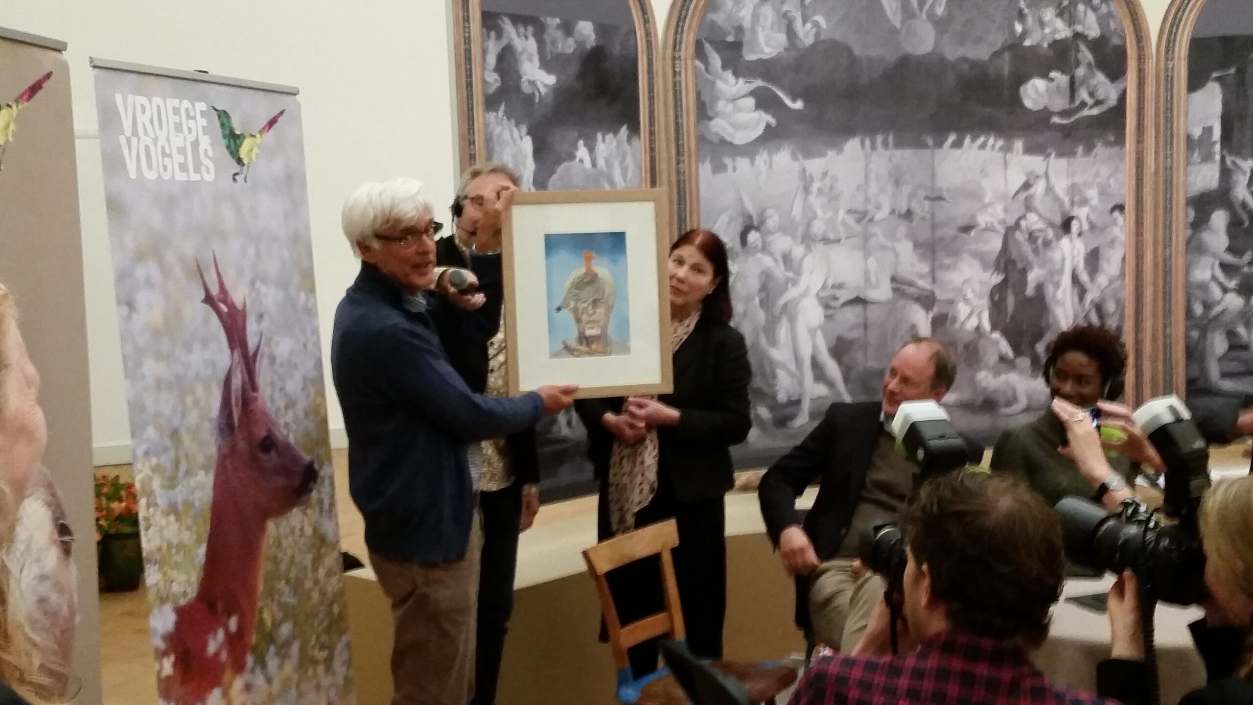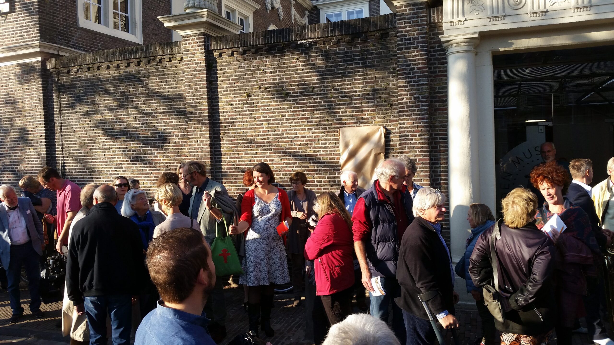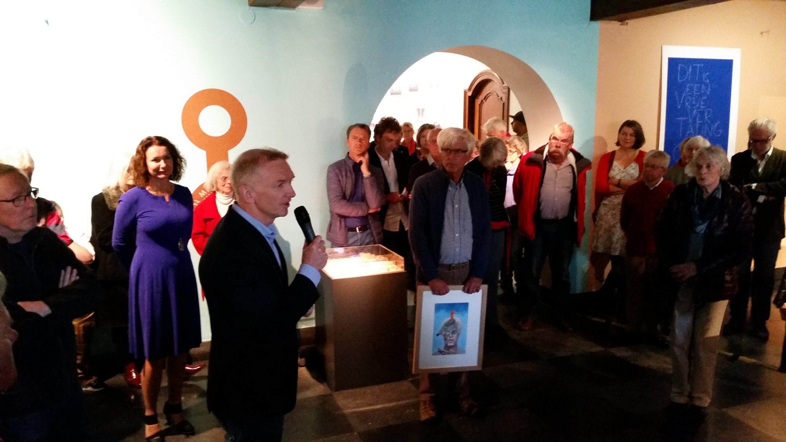 Chris de Waard maakte een radioverslag over de uitreiking van de Jan Wolkersprijs in de Lakenhal.