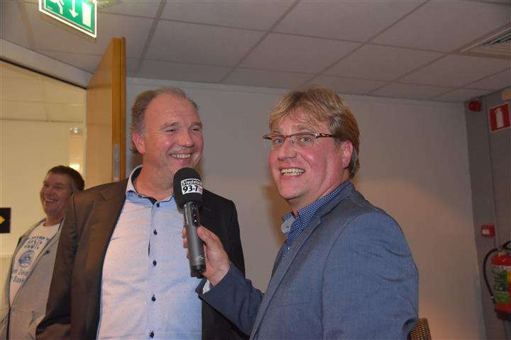 Rolf Marselis in gesprek met ZZ Leiden speler Rogier Jansen.