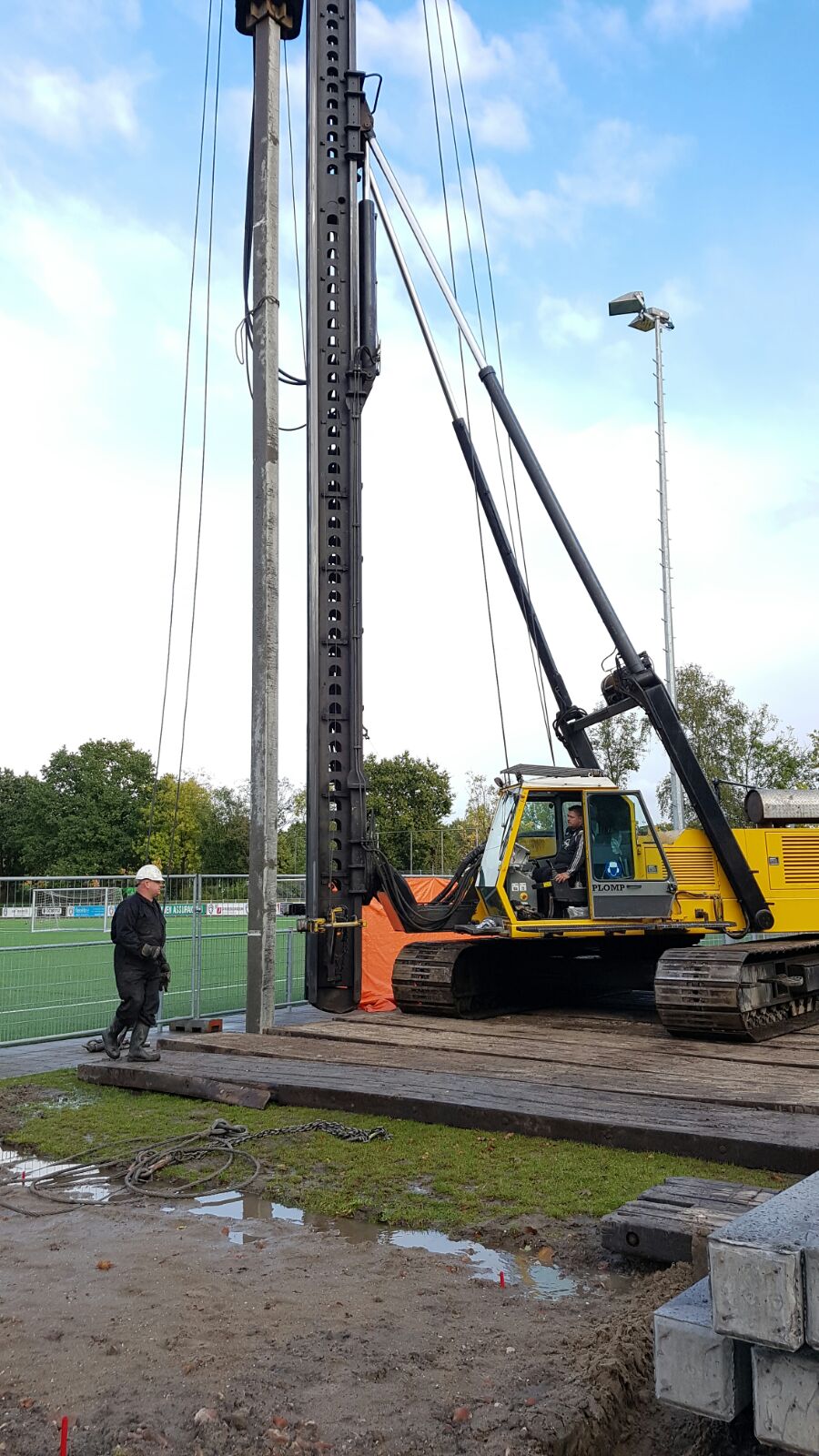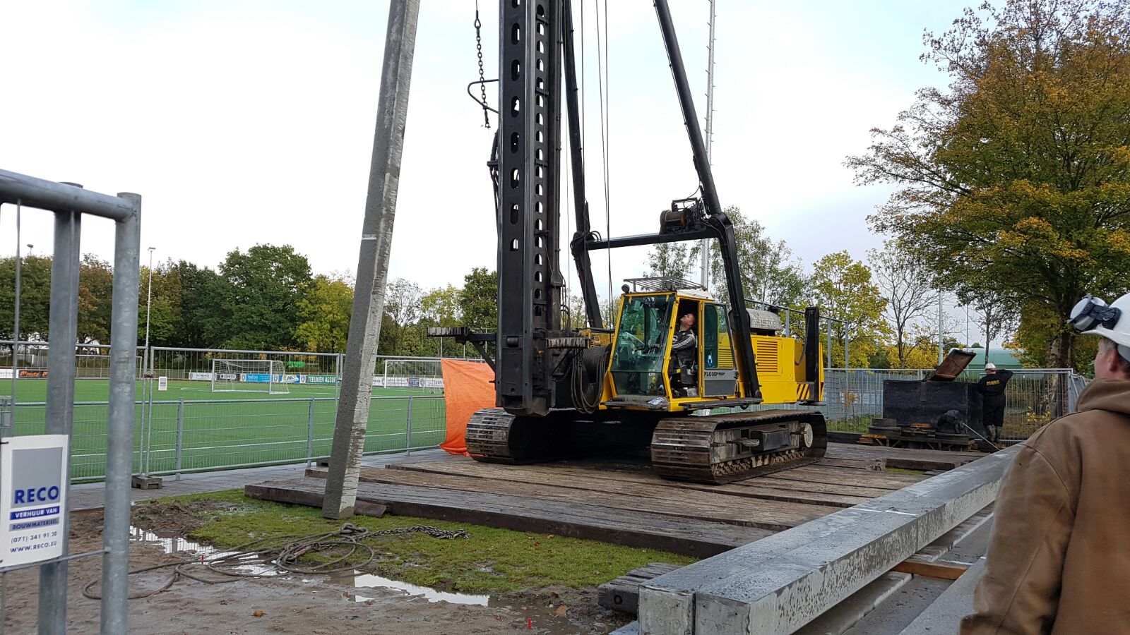 De eerste paal van de nieuwe tribune van voetbalvereniging UVS is dinsdagmiddag de grond in gegaan. In december is de tribune gereed en in januari staat een spectaculaire opening gepland. Met de tribune is de opknapbeurt van het complex zo goed als voltooid. Alleen het kantinegebouw wordt nog van binnen en van buiten aangepakt. De nieuwe tribune gaat 322 zitplaatsen tellen.