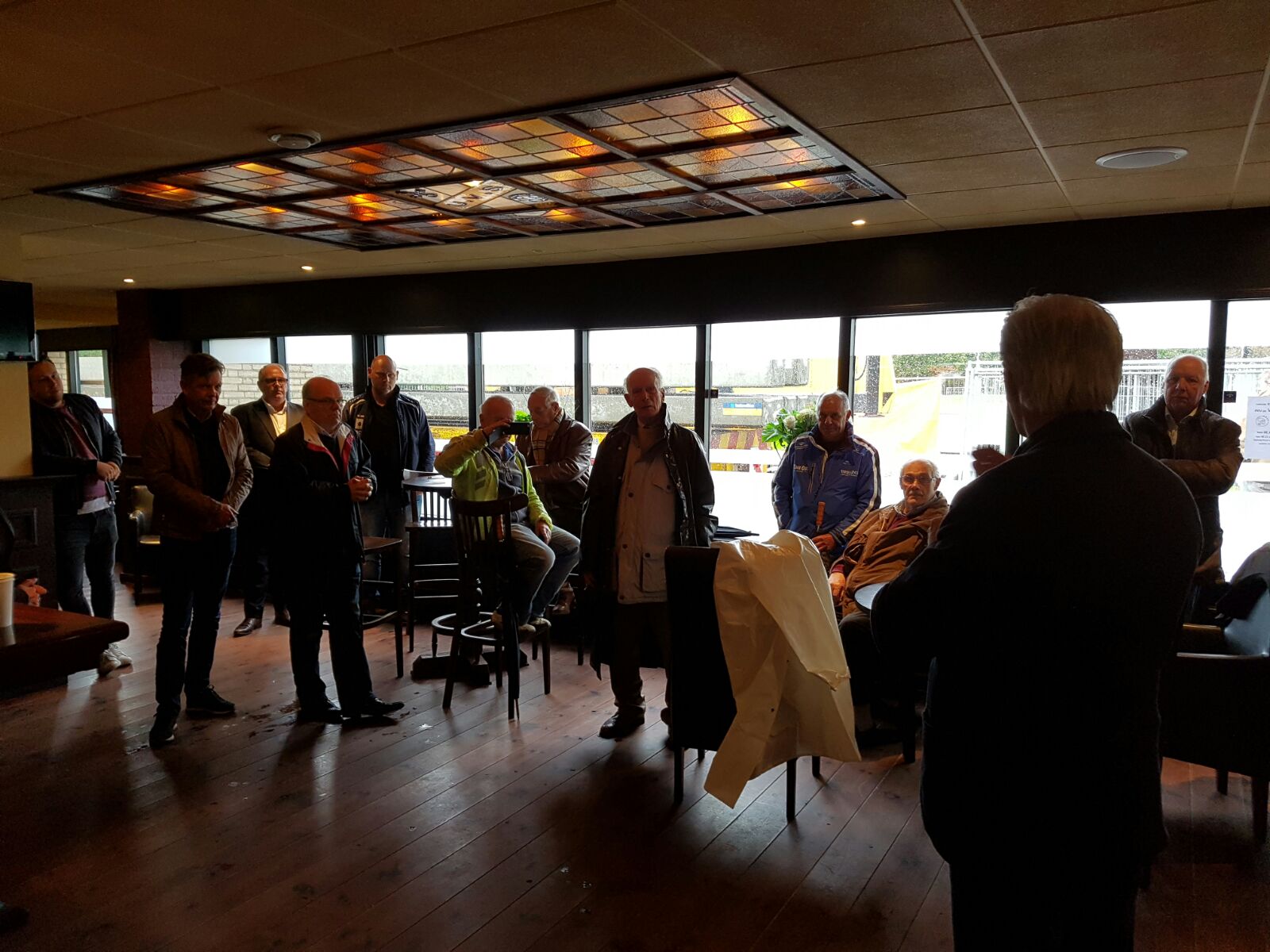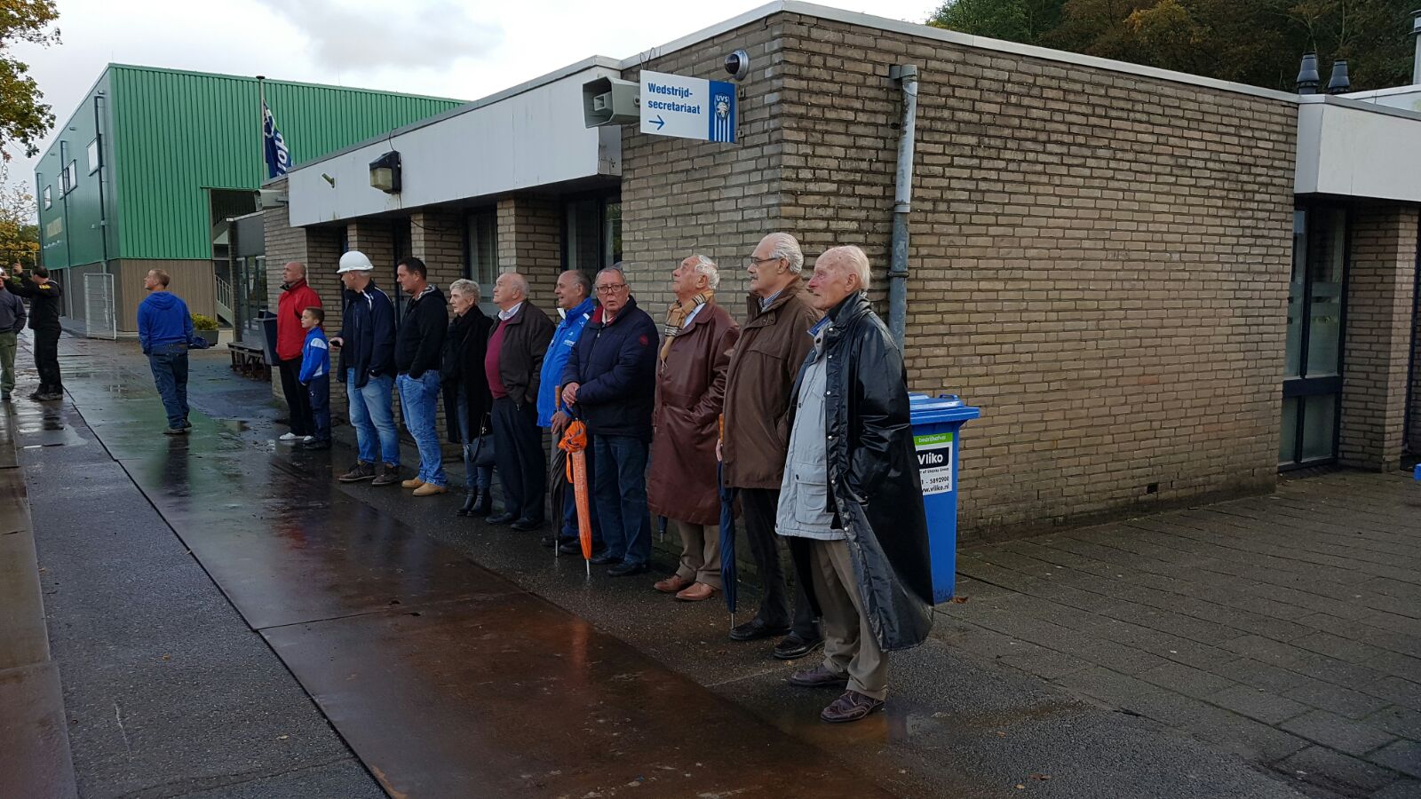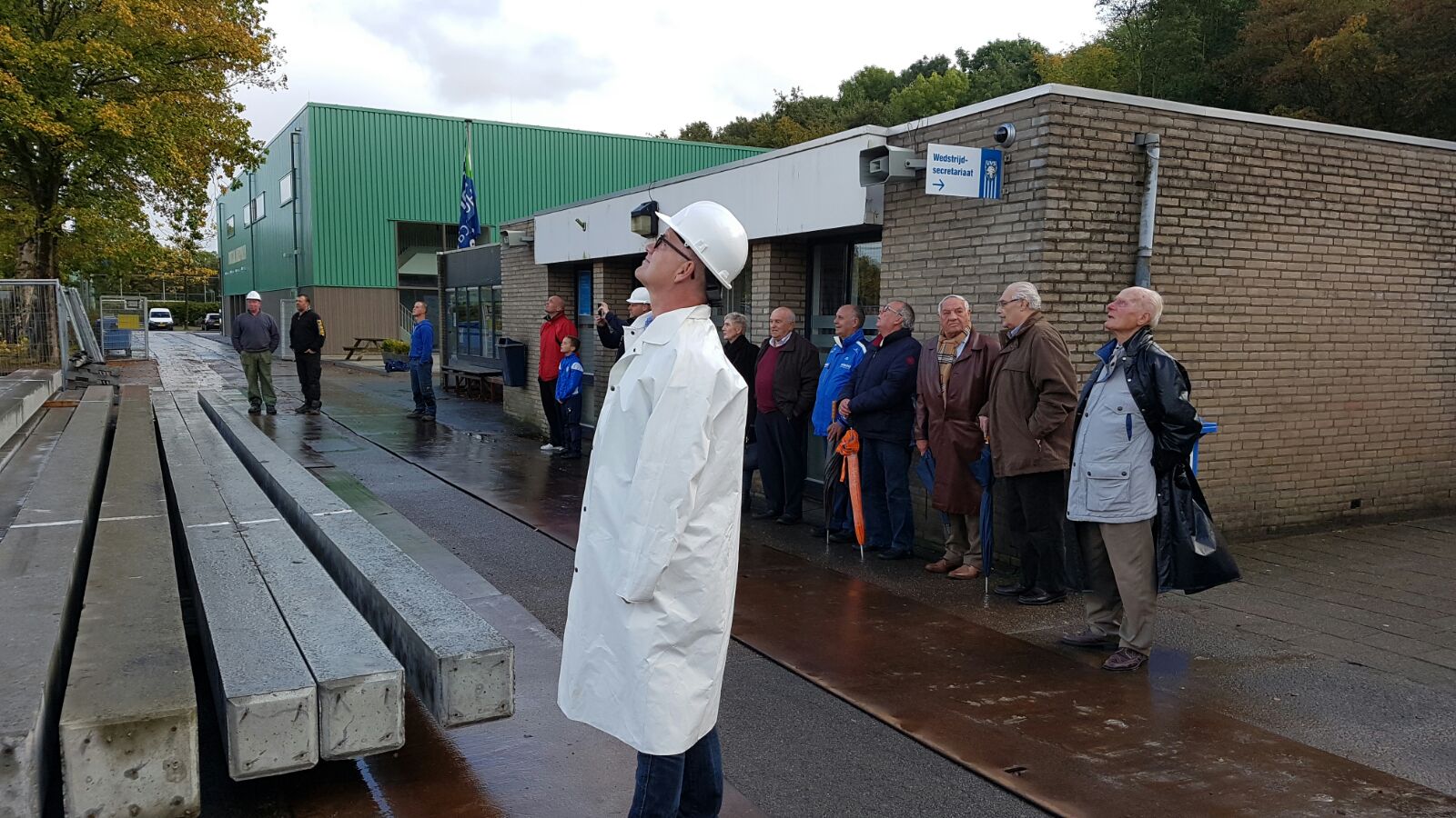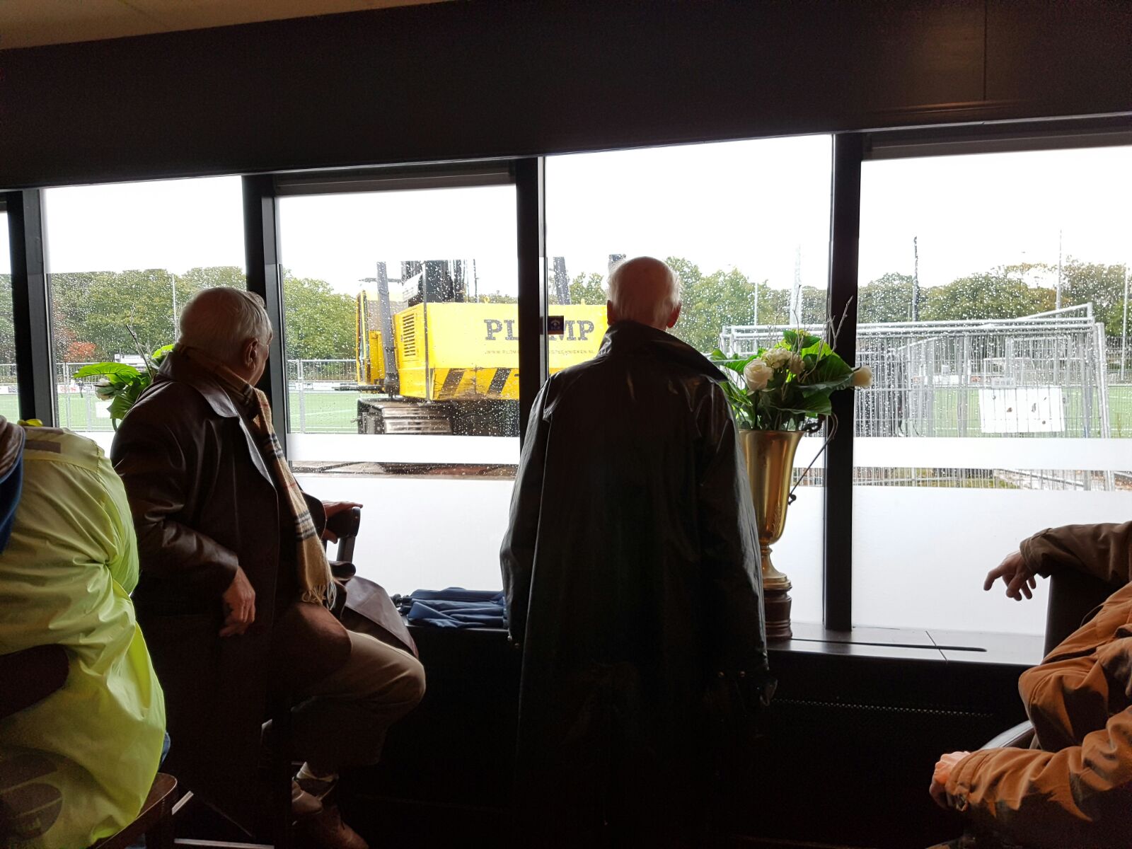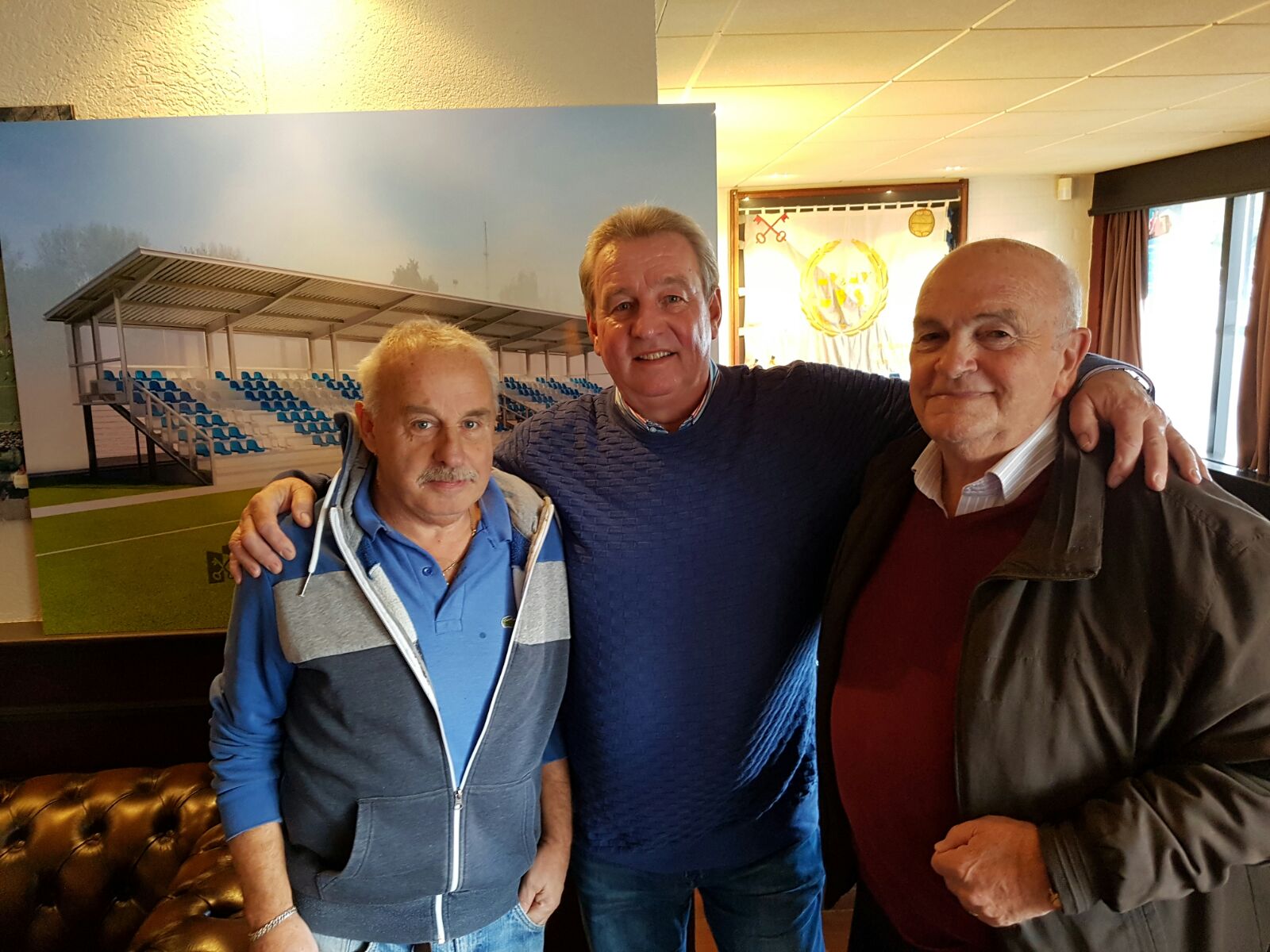 Supporters van het eerste uur kwamen kijken naar de start van de bouw van de nieuwe tribune. V.l.n.r.: Han van Kempen (ruim vijftig jaar lid), Frans Malachowski (47 jaar lid), Leen Neuteboom (67 jaar lid).