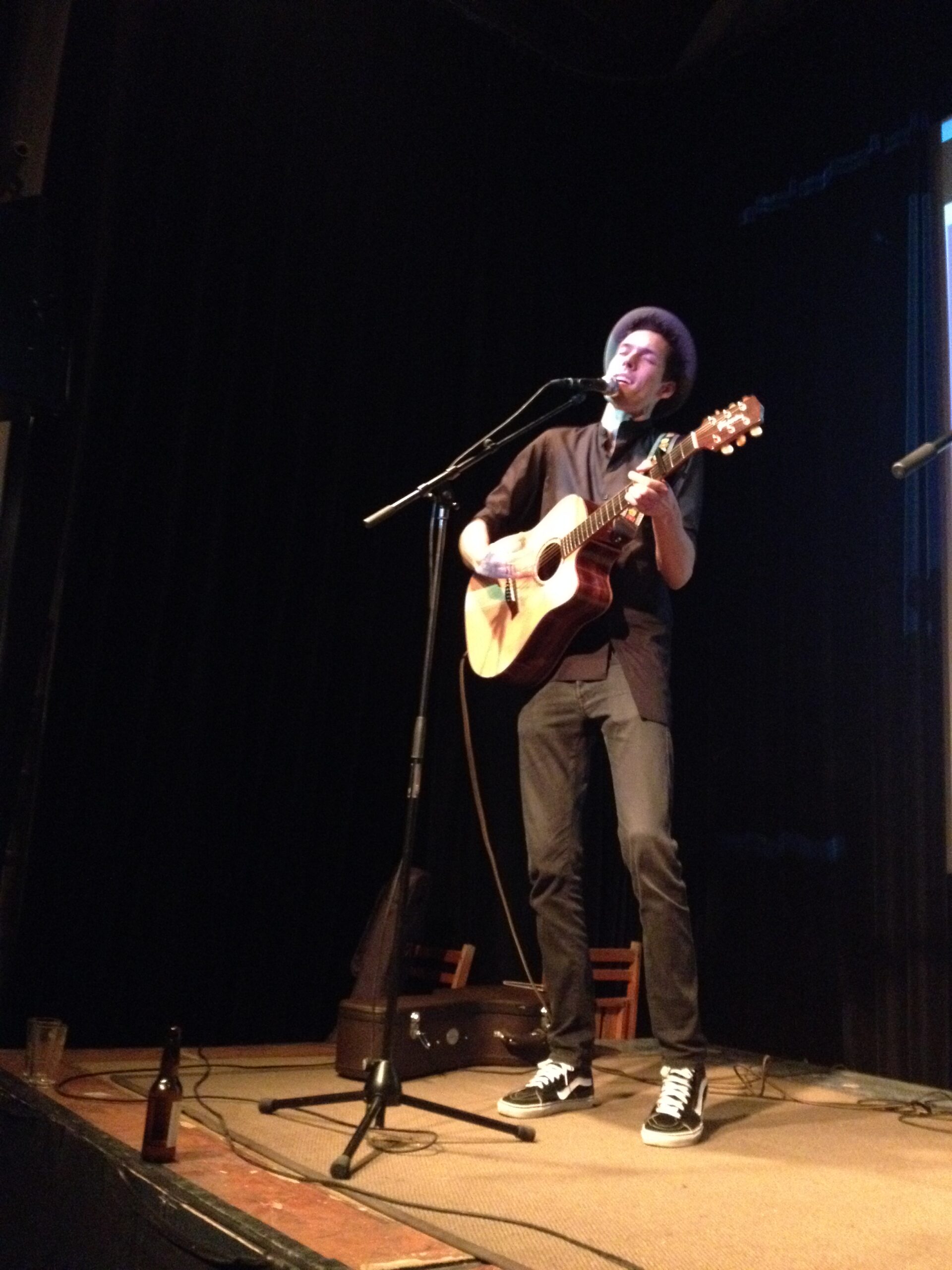 Singer/songwriters die solo op een podium staan, staan daar min of meer naakt. Niets verhult fouten, maar ook niets vult aan en juist dat maakt het die solist zo moeilijk. De drie solisten deden niet echt opveren. Van hen was Narda nog de kansrijkste. Een wat dunne stem in vergelijking tot de stemming van haar gitaar, waardoor een vlakker dan nodig geluid tevoorschijn kwam. Haar derde liedje was hoger gestemd en stukken boeiender. Daardoor? Marjolein (Amsterdam) had “al podiumervaring” en kwam duidelijk úit Amsterdam náár Leiden, maar straalde niet veel uit. En ondanks de hoed schoot ook Richard (Utrecht) op dat punt tekort. Alsof er net iets teveel aandacht aan het imago was besteed.