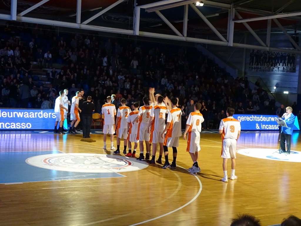 Opvallend was dat de publieke belangstelling voor het duel tegen viel. De tribunes waren matig bezet. Eén van de vier tribunes achter de baskets was zelfs niet opgesteld. Dat is in andere jaren wel anders geweest. Voor aanvang van de wedstrijd wordt nog afscheid genomen van Jeroen van der List, die twee seizoenen bij Zorg en Zekerheid Leiden speelde en zijn carrière in Frankrijk heeft voortgezet.