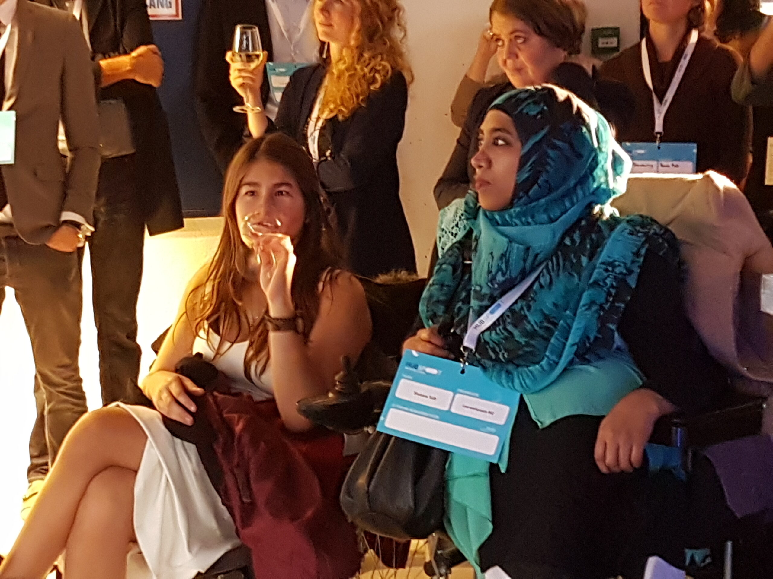 Wat serieuzer is de boodschap van IN2. Dit initiatief van de Hogeschool Leiden is gevestigd in HUBspot en zet zich in voor de vergroting van arbeidsinclusiviteit in Leiden en omgeving. Shabana Talib is één van de studenten die bij IN2 werkt. Ze is rolstoelgebonden en liet voor de gelegenheid een flink aantal bezoekers ook in een rolstoel plaatsnemen om ze zo te laten ervaren welke problemen je dan ervaart. Het vinden van de lift bij HUBspot bijvoorbeeld. die is eer wel, maar niet direct in het zicht als je binnenkomt.