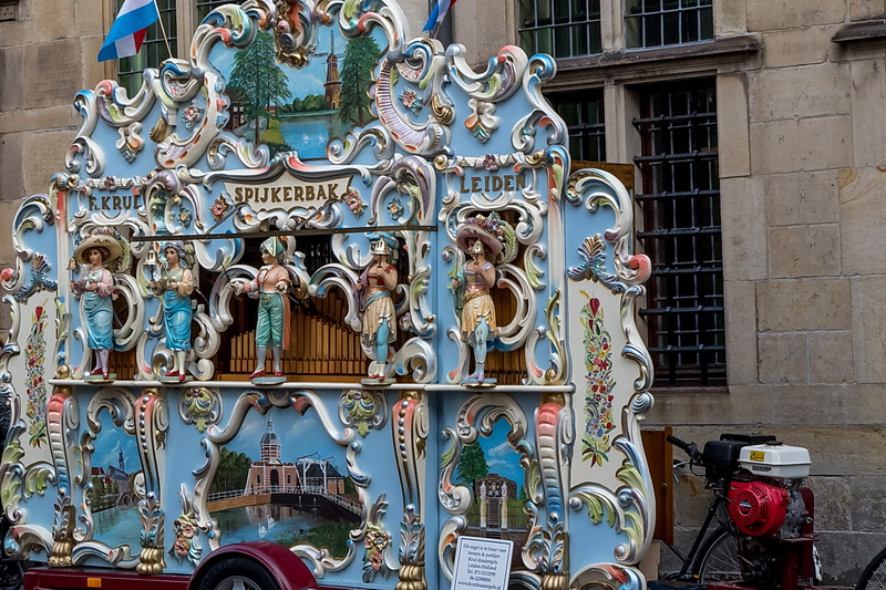 Ook waren de draaiorgels massaal terug op straat. Bijna 20 stuks, allemaal uit Leiden. Het was de terugkeer van de Leidse draaiorgeldag, zoals ie tot twee jaar geleden werd gehouden in de Hooglandse Kerk. Toen op een zaterdag, want op zondag is de kerk niet beschikbaar voor vertier.