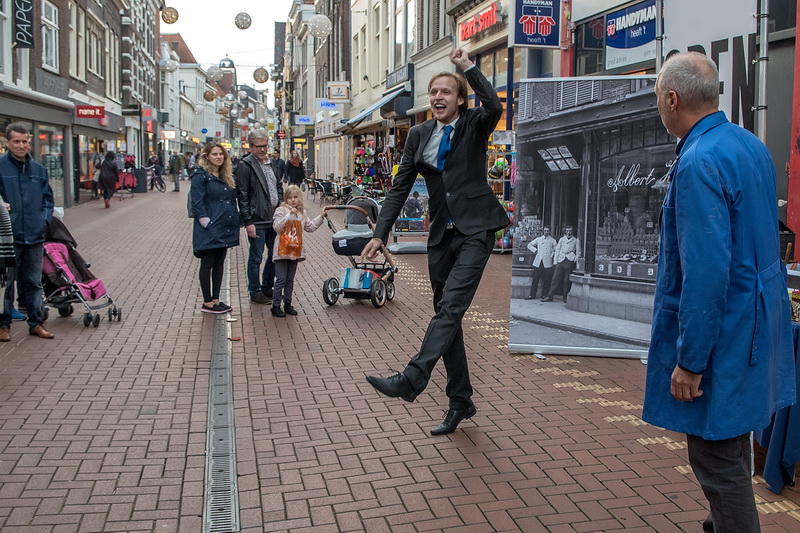 Het was zondag flink druk in het centrum van de stad en dat is ook precies de bedoeling van het maandelijkse cultuurfestival Leiden is OPEN. Open voor vroeger dit keer, met verhalen van de stad. Dat leidde tot een gevarieerd programma met straattheater, uitverkochte stadswandelingen en een middag met Leidse dichters.