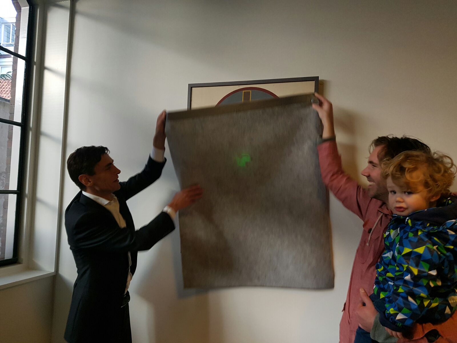 Bouwwethouder Paul Laudy had bij de officiële oplevering een speciaal cadeau voor de bewoners. Samen met een van de nieuwe bewoners onthulde hij een niet eerder vertoond reclamelogo van de voormalige Tieleman & Dros fabriek aan de bouwgroep. Het logo is gevonden in de collectie van museum Sikkens.