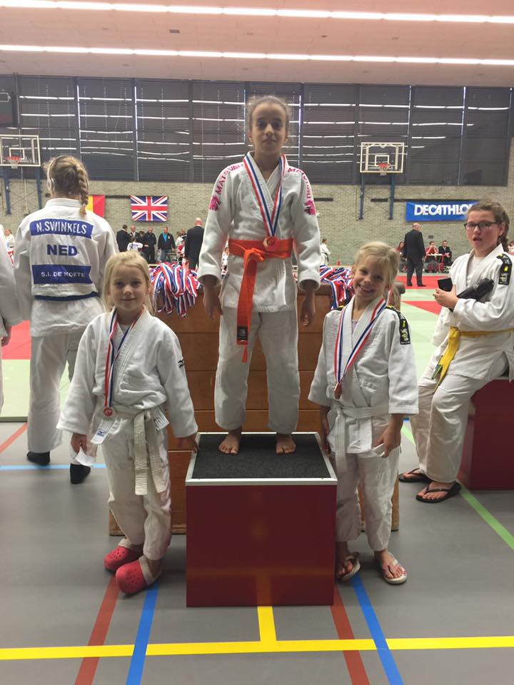 Asma Fahchouch wist ook al haar partijen winnend af te sluiten in de categorie onder 12 jaar tot 25 kilogram en keerde ook terug naar Leiden met een gouden medaille. In de categorie onder 8 jaar tot 25 kilogram won Amber Burgwal het zilver en Elin Niks het brons.