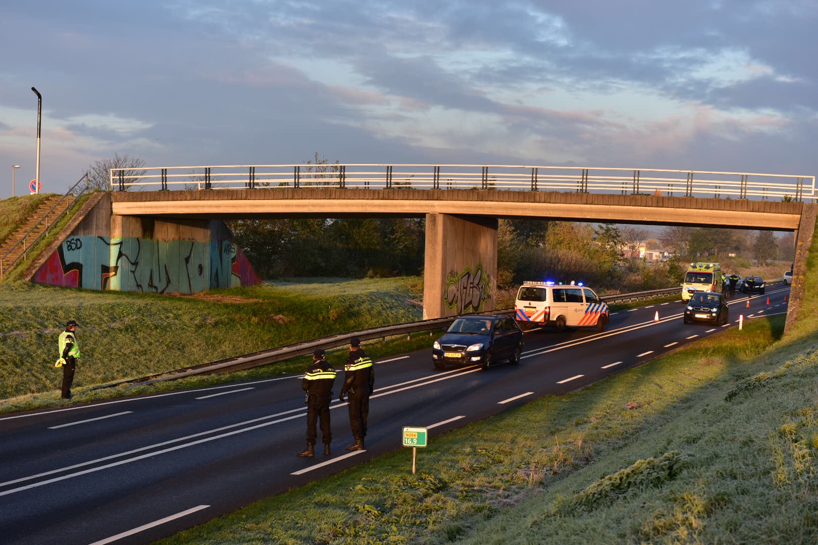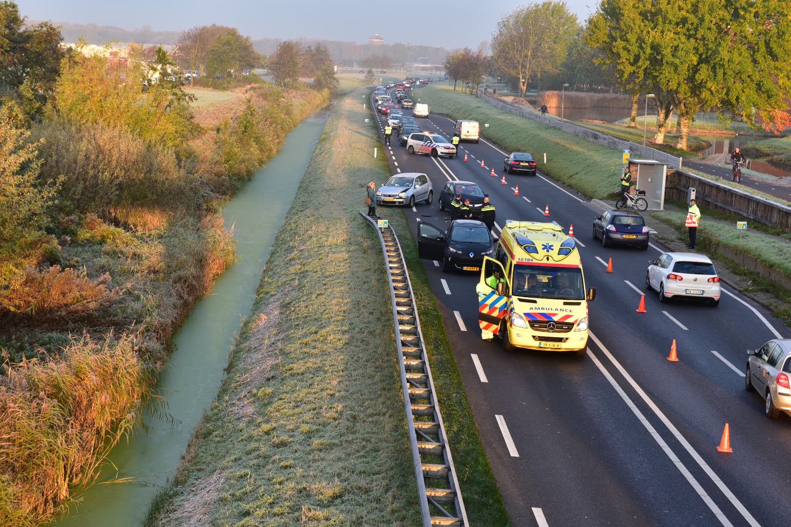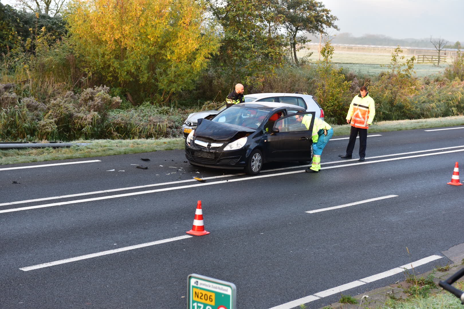 Een flinke ravage vanmiddag op de Ing. Tjalmaweg bij Valkenburg. Daar klapten drie auto’s op elkaar, waarna de politie een deel van de weg afsloot om het personeel van twee toegesnelde ambulances veilig hun werk te kunnen laten doen. Het is nog niet bekend of er bij de botsing ook gewonden vielen.