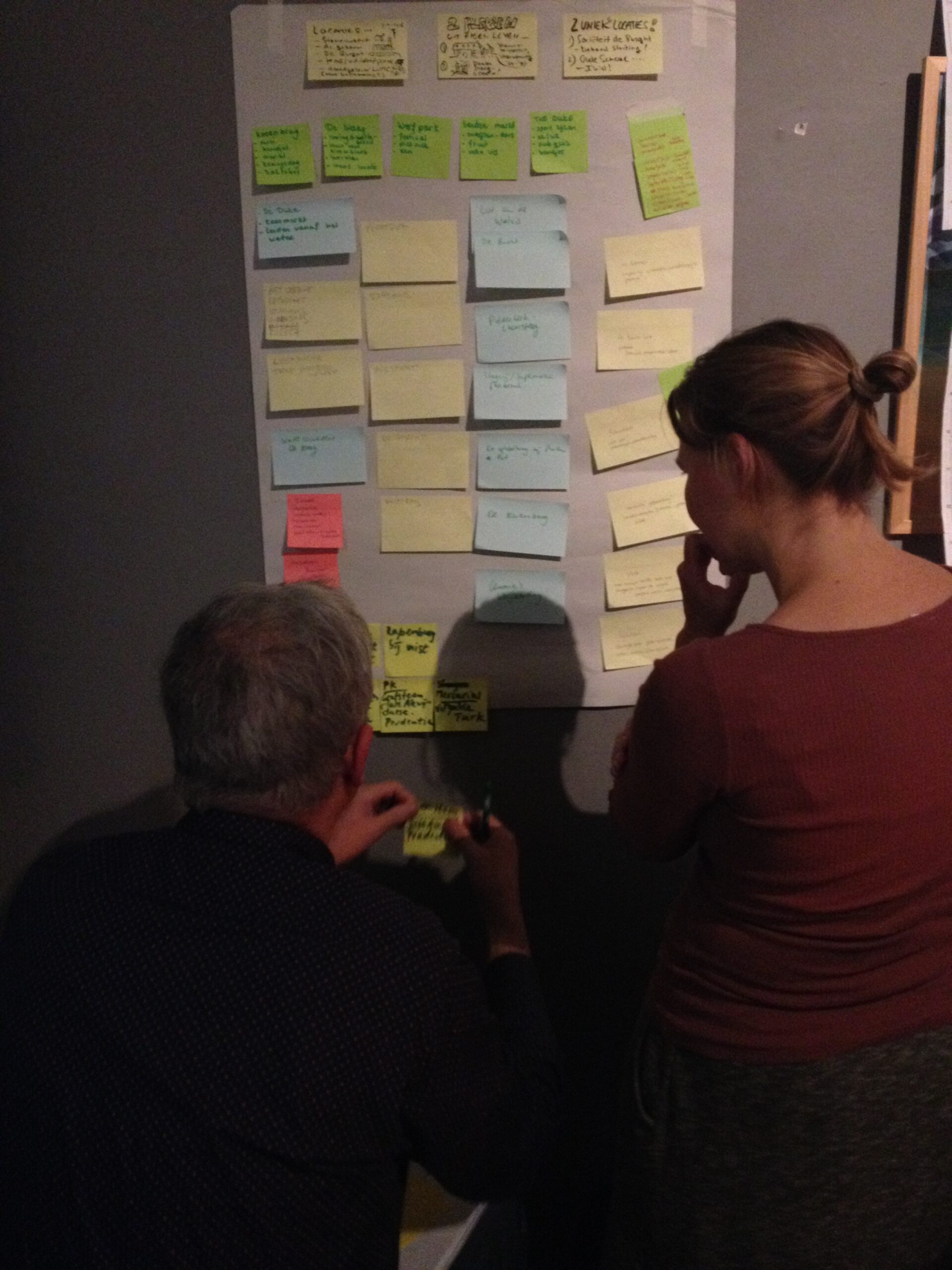 De gedachte is mooi. Maar hoe bepaal je wat the places to be, de hotspots, zijn voor jongeren? Een aanpak is het aan Leiden vragen. Woensdagavond 9 november bleken zo’n vijfentwintig mensen naar de Old School in Leiden te zijn gekomen om te brainstormen over die vraag. In een tweeëneenhalf uur durende bijeenkomst kwamen vragen voorbij als: wat zijn jouw favoriete plekken, wat zou jij een jonge toerist absoluut aanraden, welke herinneringen heb je aan bepaalde plekken, welke verhalen ken je, wat zijn uniek Leidse plekken? Lastige vragen, zo bleek. Niet eens omdat het nogal wat moeite kost in je geheugen te graven, maar ook om los te komen van al die bekende toeristische attracties. Procesbegeleiders/gespreksleiders Carla van der Poel en Timo Gubbens gebruikten brainstormtechnieken om die stap te zetten. Of dat de doelmatigste aanpak was, valt te bezien.