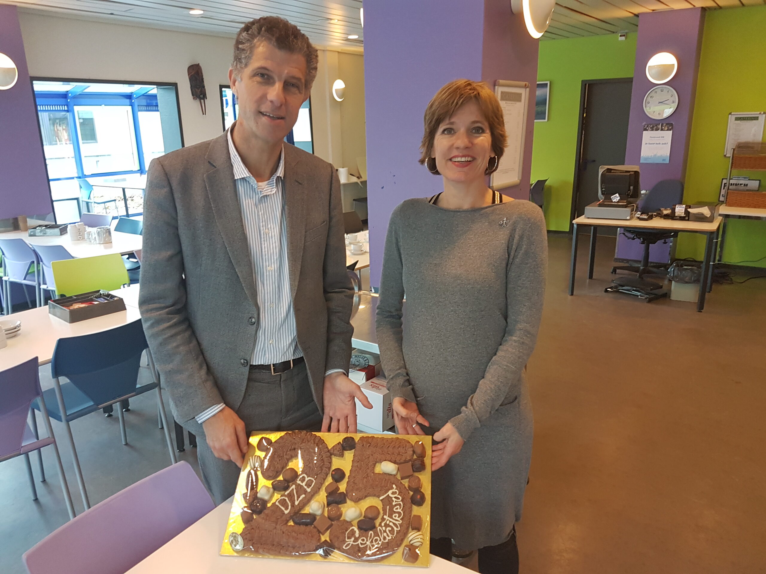 Groot feest gisteren bij de chocolade-afdeling van de DZB. De sociale werkvoorziening vierde dat het productiegebouw waar chocolade wordt geproduceerd en verpakt 25 jaar geleden werd neergezet. Een feest dat gevierd werd met de 150 werknemers van de chocoladefabriek van DZB, de klanten, wethouder Marleen Damen en burgemeester Lenferink.