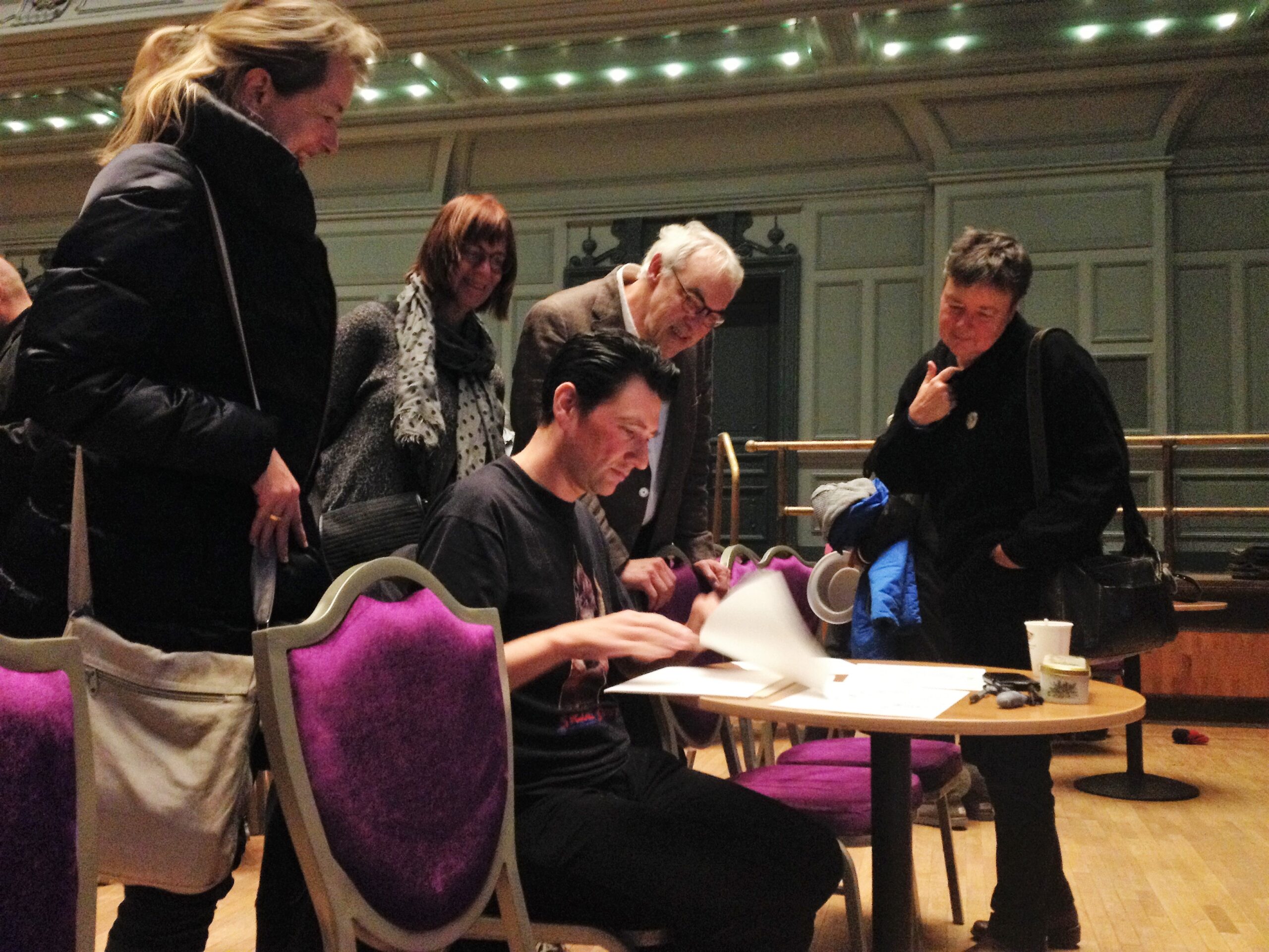 Eind december vindt de officiële presentatie van Koopmans boek plaats in de Leidse Lente (tijdens deze Podium Pitch was het al beschikbaar!) met onder meer elektronische muziek die Koopmans tijdens zijn werk gebruikt “als katalysator”. Dat wordt vast anders dan de manier waarop, zo ontdekte Van Veen, mensen thuis naar muziek luisterden. “Naar muziek luisteren blijken mensen liggend te doen. Dat hebben we dus in onze concerten geïntroduceerd. Dat kostte wel tijd, want programmeurs dachten dat hun bezoekers niet liggend wilden luisteren”. Mooi wel. En dus sloot Podium Pitch af met een pracht pianocompositie van Philip Glass, die je inderdaad liggend moet horen om niet door van alles en nog wat te worden afgeleid. Het is jammer dat er te weinig ligmatjes waren, anders had iederéén gelegen. Want het wérkt… En dan hebben we het nog niet eens gehad over de vleugel van LEGOsteentjes “30.000 steentjes en tweeëneenhalf jaar werk, samen met m’n zoons” die hij maakte en waarop hij ook spéélt. En, voor puristen, mogelijk ook over het in één adem noemen van Glass en Einaudi.