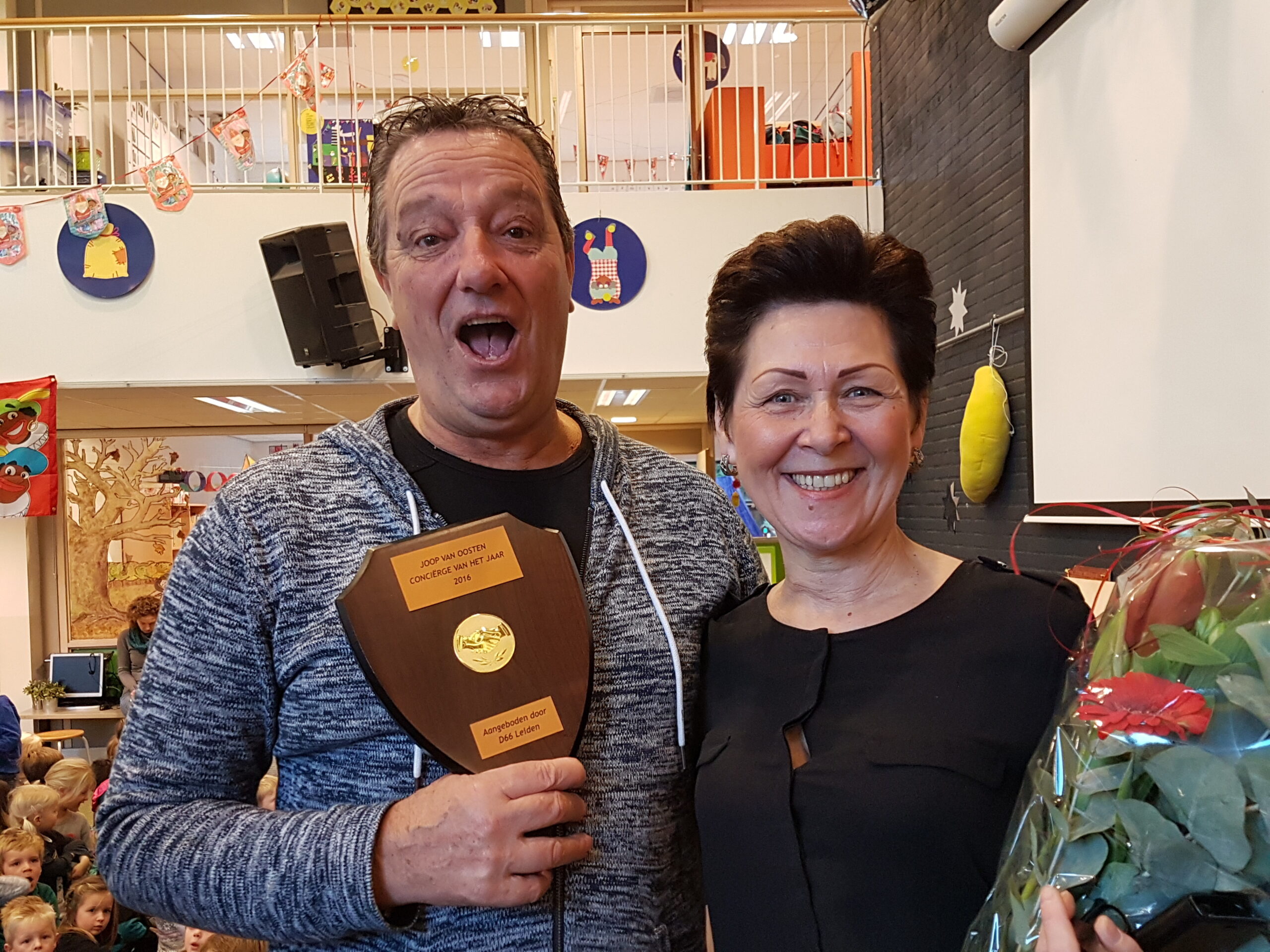 Joop van Oosten is vanmorgen verkozen tot Conciërge van het Jaar. In een overvolle hal van de St. Josephschool aan de Oppenheimerstraat werd ‘Meester Joop’ toegezongen door honderden kinderen die een speciale tekst hadden geleerd op het sinterklaasliedje ‘Zie ginds komt de stoomboot’. De verkiezing is een initiatief van D66. De partij zet in veel gemeenten waaronder dus Leiden sinds enkele jaren steeds een conciërge in het zonnetje.