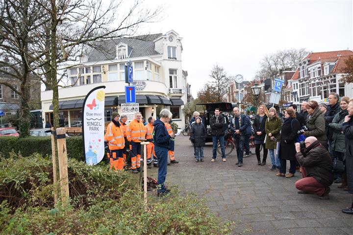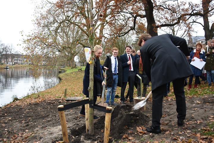 Woensdag werden twee wierrookceders en een krentenboompje ‘Ballerina’ al aangeplant in het Rembrandpark. Vandaag werd een Amur Kurkboom in het plantsoen geplant, met studentenvereniging Minerva als sponsor. Ook werden er twee kliteiken bij de brug van de Doezastraat onthuld.