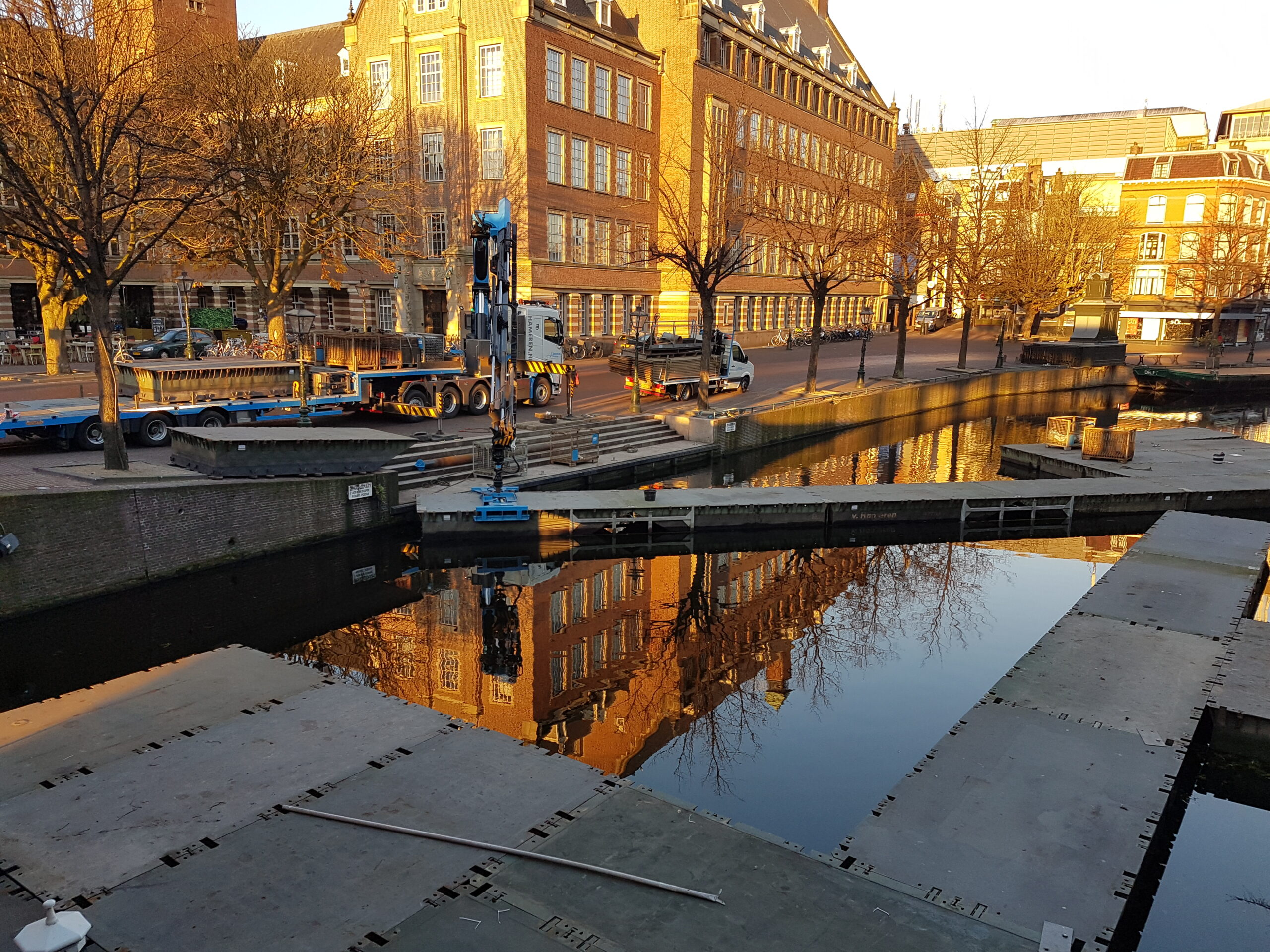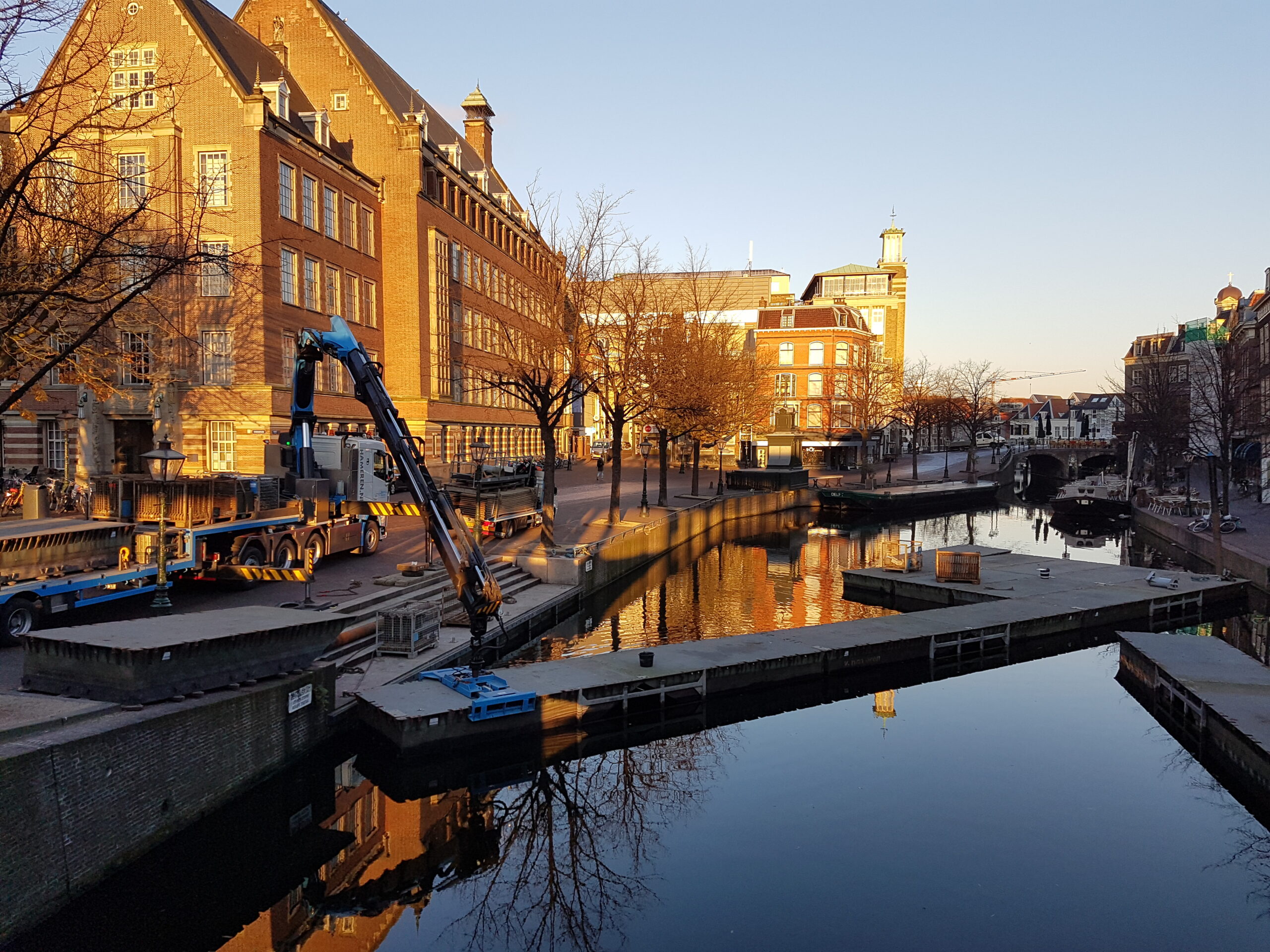 Vanaf aanstaande vrijdag kan er weer geschaatst worden op de Nieuwe Rijn. Vanmorgen is begonnen met de opbouw van de drijvende ijsbaan die ook deze keer weer een maand blijft liggen. Schaatsen kan voor zes euro per dag. wie zelf geen schaatsen heeft, betaalt een euro meer voor huurschaatsen. Studenten krijgen korting en betalen vijf euro inclusief schaatsen.