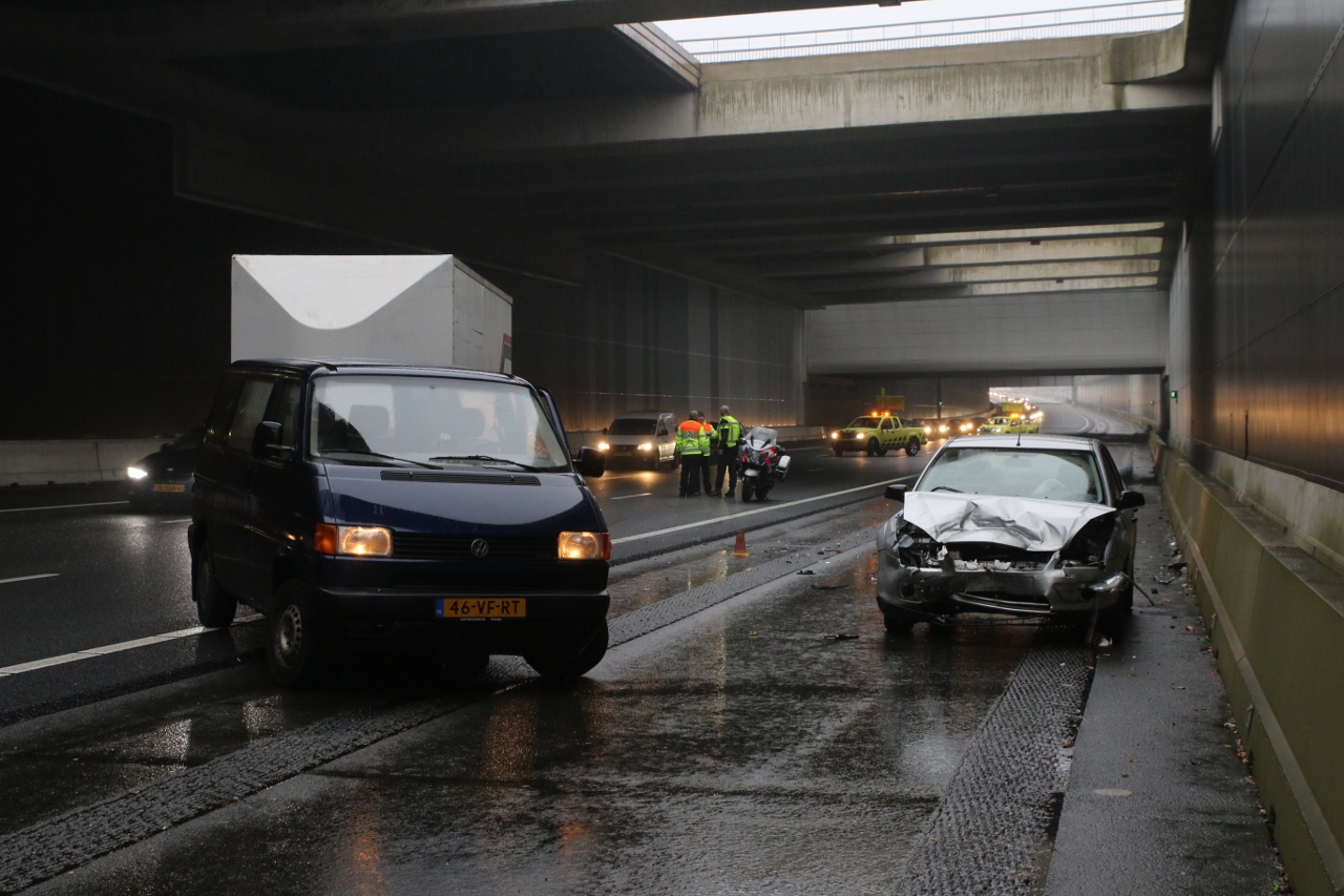 Zaterdagmiddag was het even na 15.00 uur weer eens raak in de tunnel in de A4 bij Leiden. Daar raakten een bestelbus met aanhanger in botsing met een personenauto. Daarbij raakte verschillende betrokkenen gewond.