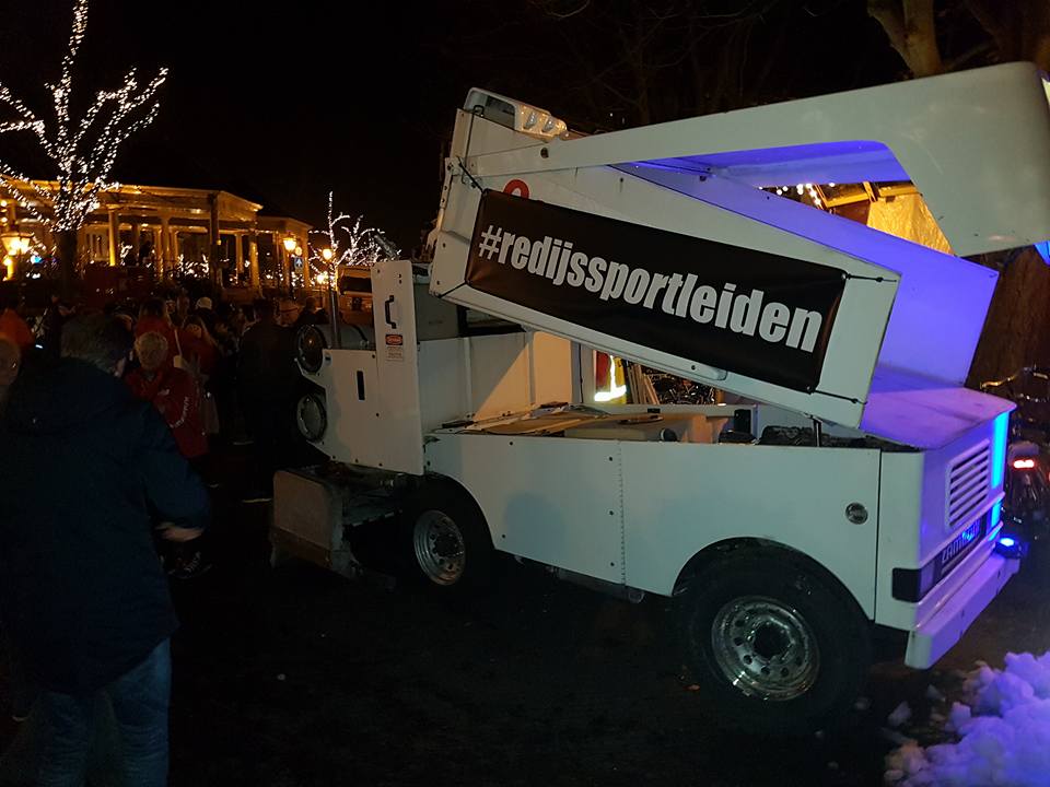 Daar laat de raadscommissie zich door sportwethouder Dirkse informeren over de laatste stand van zaken rond een nieuwe schaatshal, een nieuwe sporthal en een nieuw zwembad. Enkele honderden schaatsers meldden zich rond 19.30 uur op het Stadhuisplein. Compleet met ijsdweilmachine en dweilorkest.