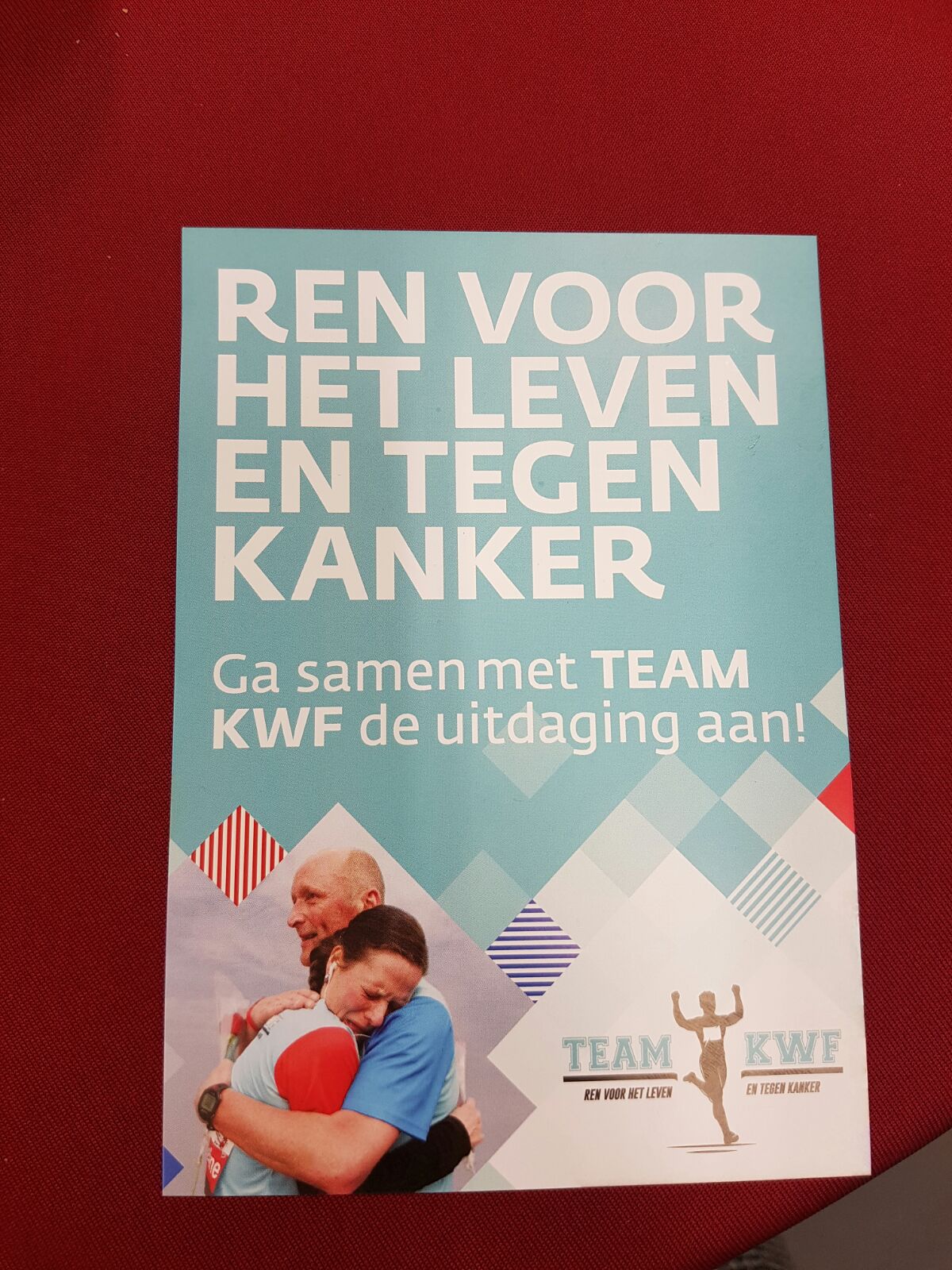 Team KWF is een nieuw concept van KWF Kankerbestrijding dat vorig jaar is gestart bij de Utrecht Science Park Marathon. In 2017 wordt dit uitgebreid met onder meer de Leiden Marathon. “Team KWF is een unieke hardloopervaring” legt fondsenwerver Jeroen Mouw van KWF Kankerbestrijding uit. “Aan de ene kant committeren mensen zich om een streefbedrag op te halen voor het kankeronderzoek dat we willen financieren. Aan de andere kant bieden wij ze trainingsschema’s en tips van expert en bekende sporters. Zo helpen wij de deelnemers letterlijk en figuurlijk over de finish.”