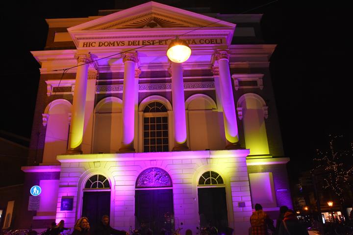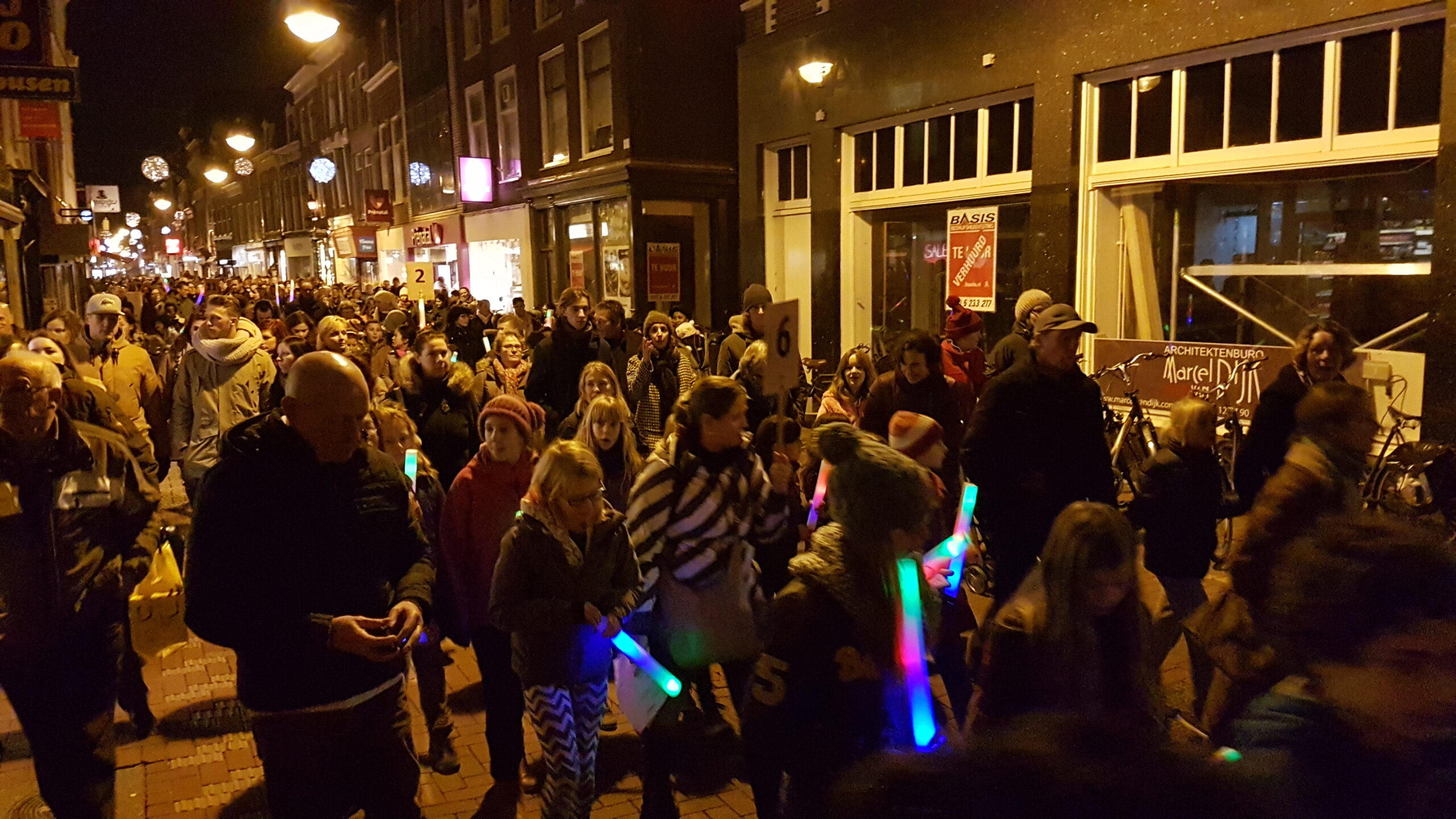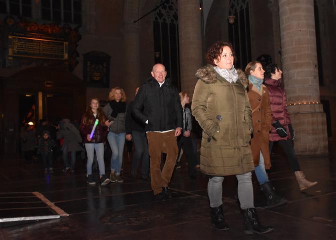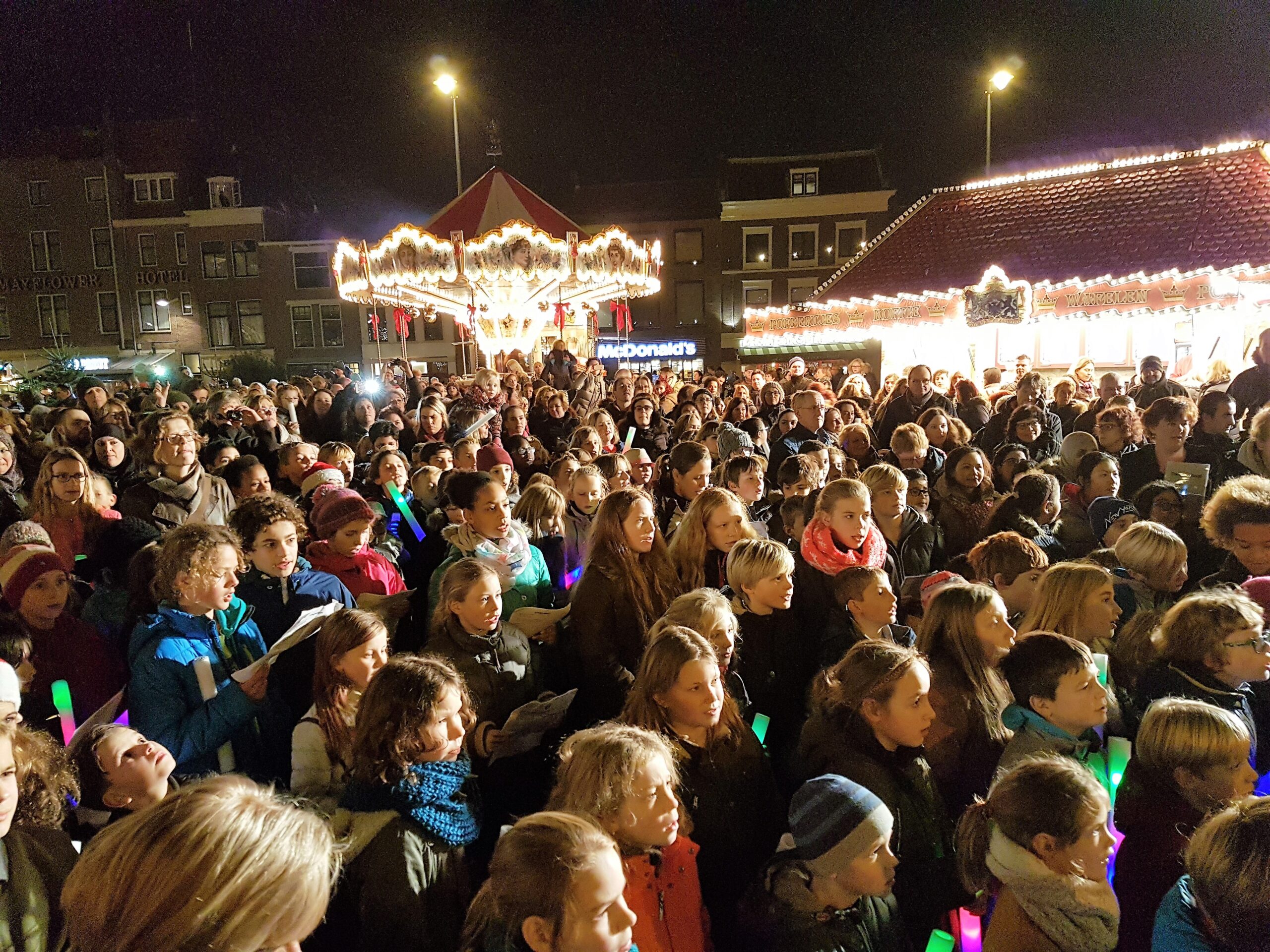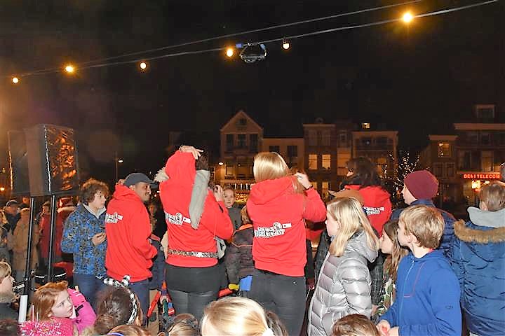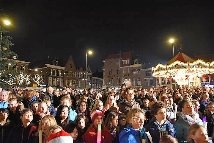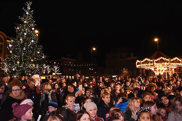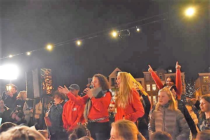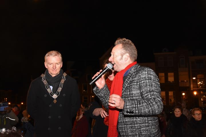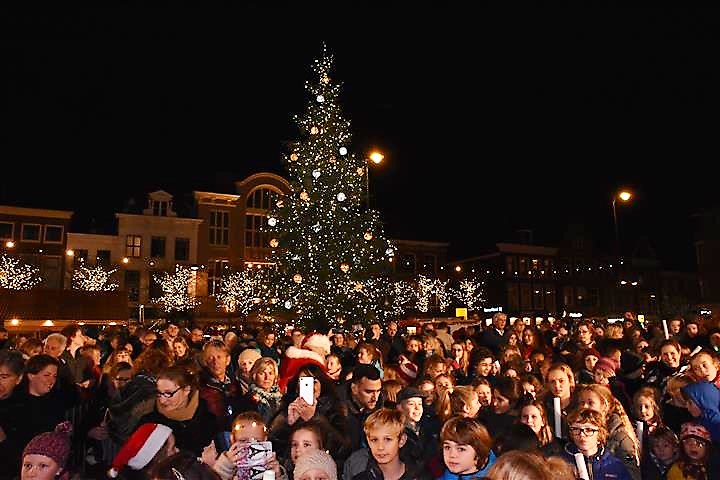 Joris Linssen is helemaal in zijn element als hij samen met 700 Leidse basisscholieren, loco-burgemeester Strijk en vicevoorzitter Margreet van Wijk van de Leidse gemeenteraad op de Beestenmarkt aftelt naar het moment dat de lichtjes worden ontstoken in de Joris’ Kerstboom. Het is de afsluiting van de lichtjesparade waarbij sinds enkele jaren honderden kinderen vanaf de Doezastraat in optocht door het centrum gaan.
