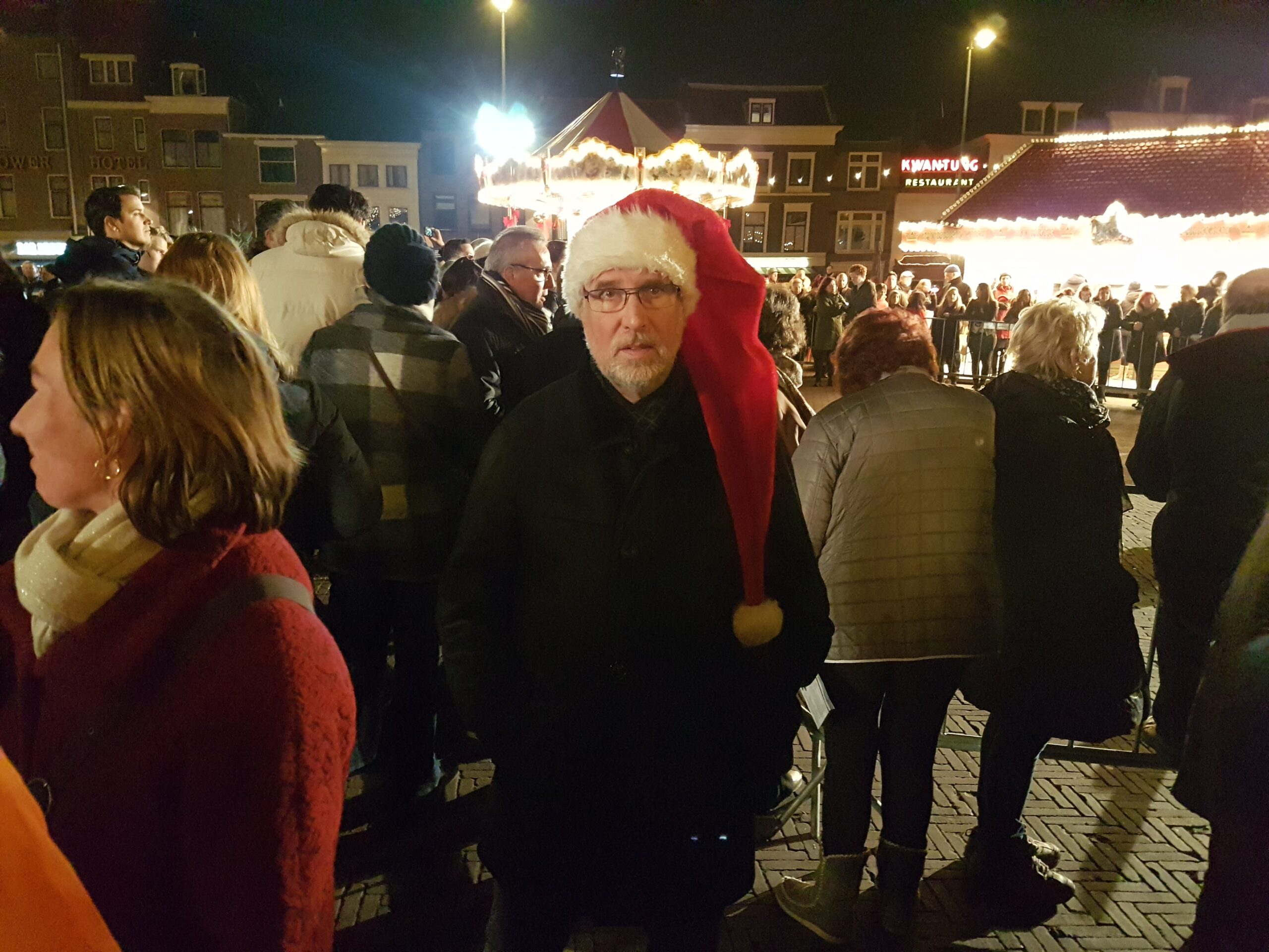 “Als je wilt weten hoe haringen in een ton zich voelen, hoefde je vandaag alleen maar over de kerstmarkt te lopen,” lacht Mels Harman van het Centrummanagement Leiden terwijl hij vanaf de Koornbeursbrug over de tientallen chalets tellende kerstmarkt uitkijkt.