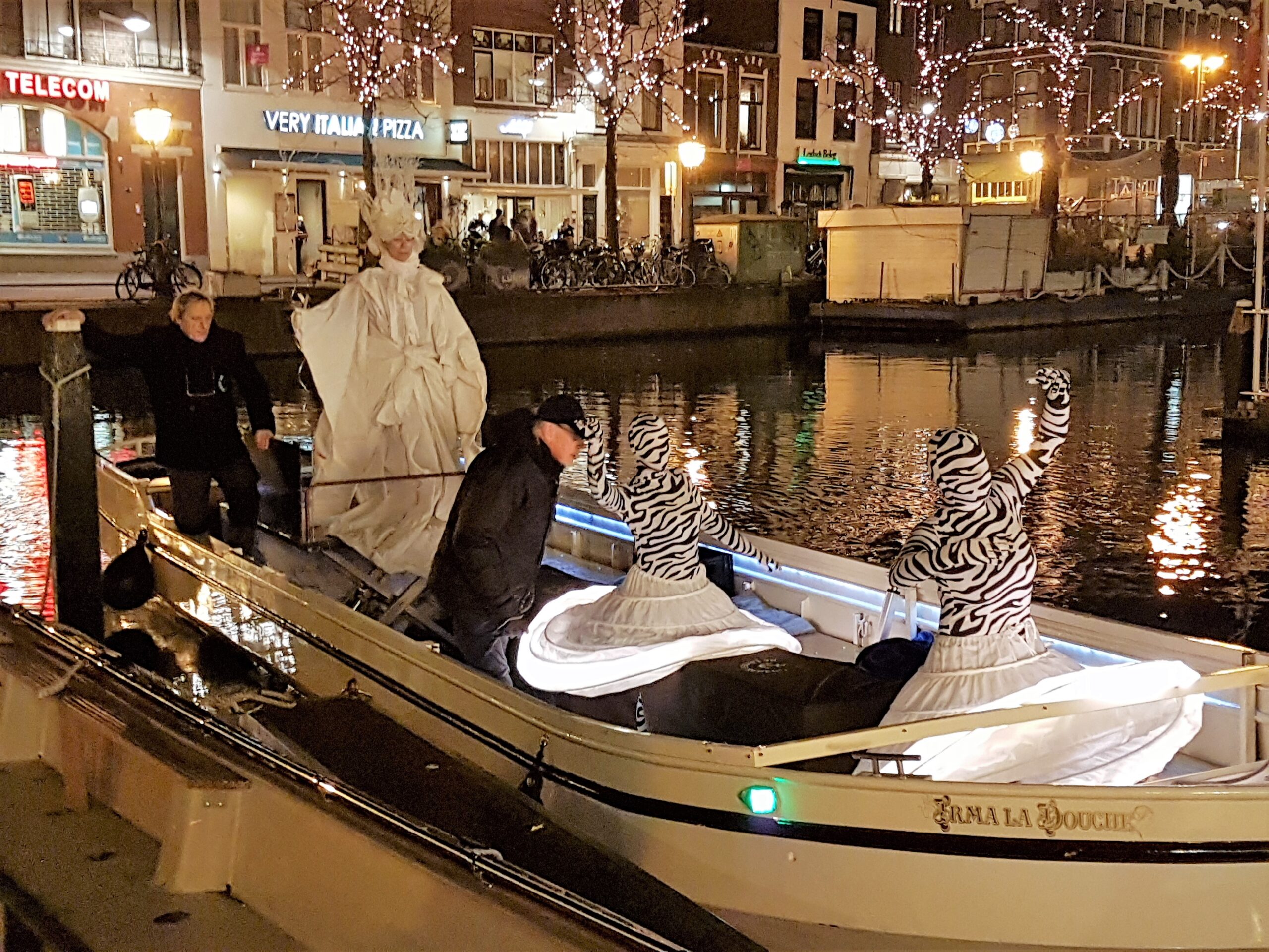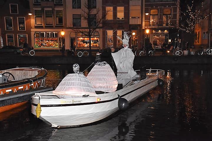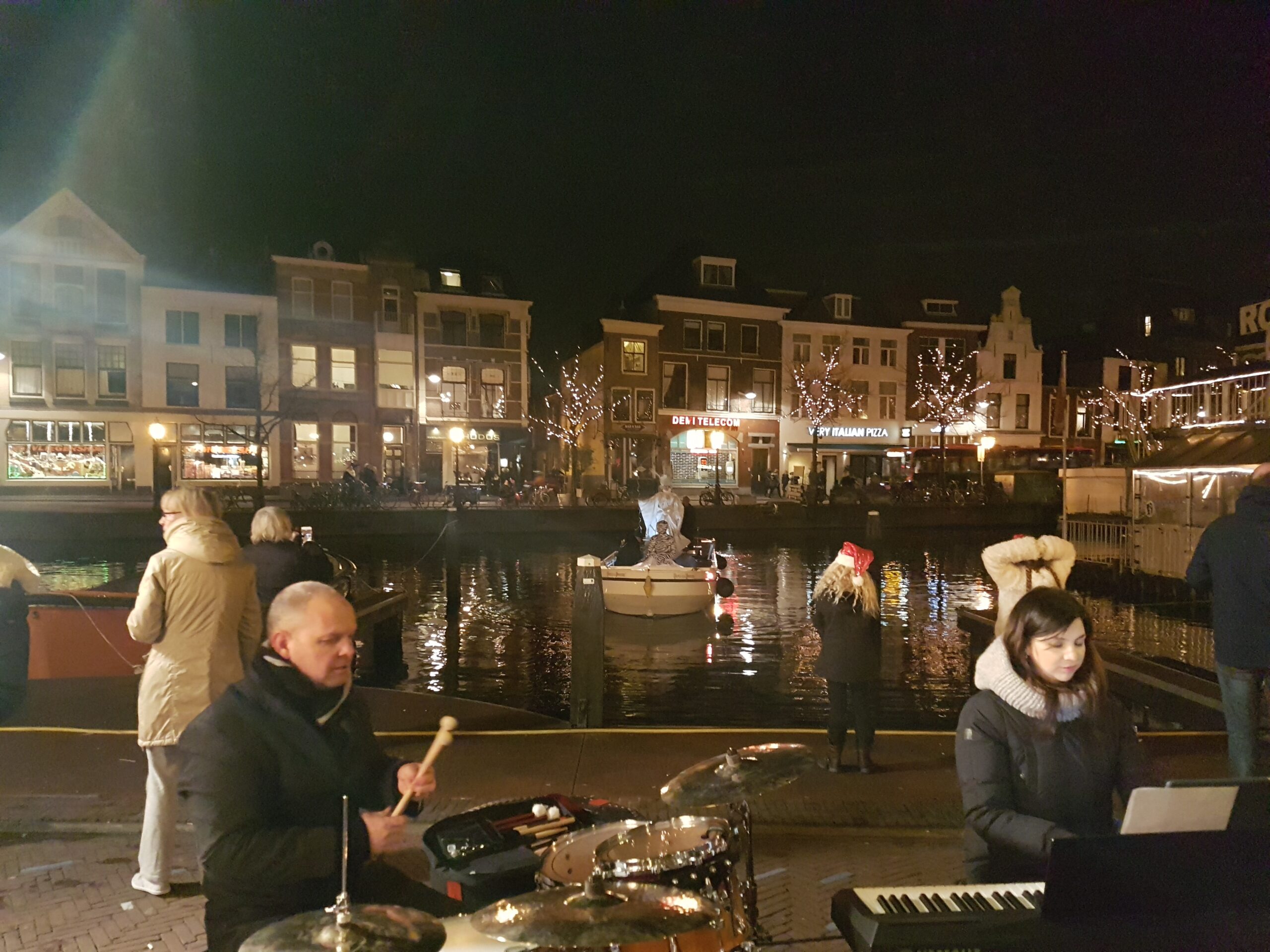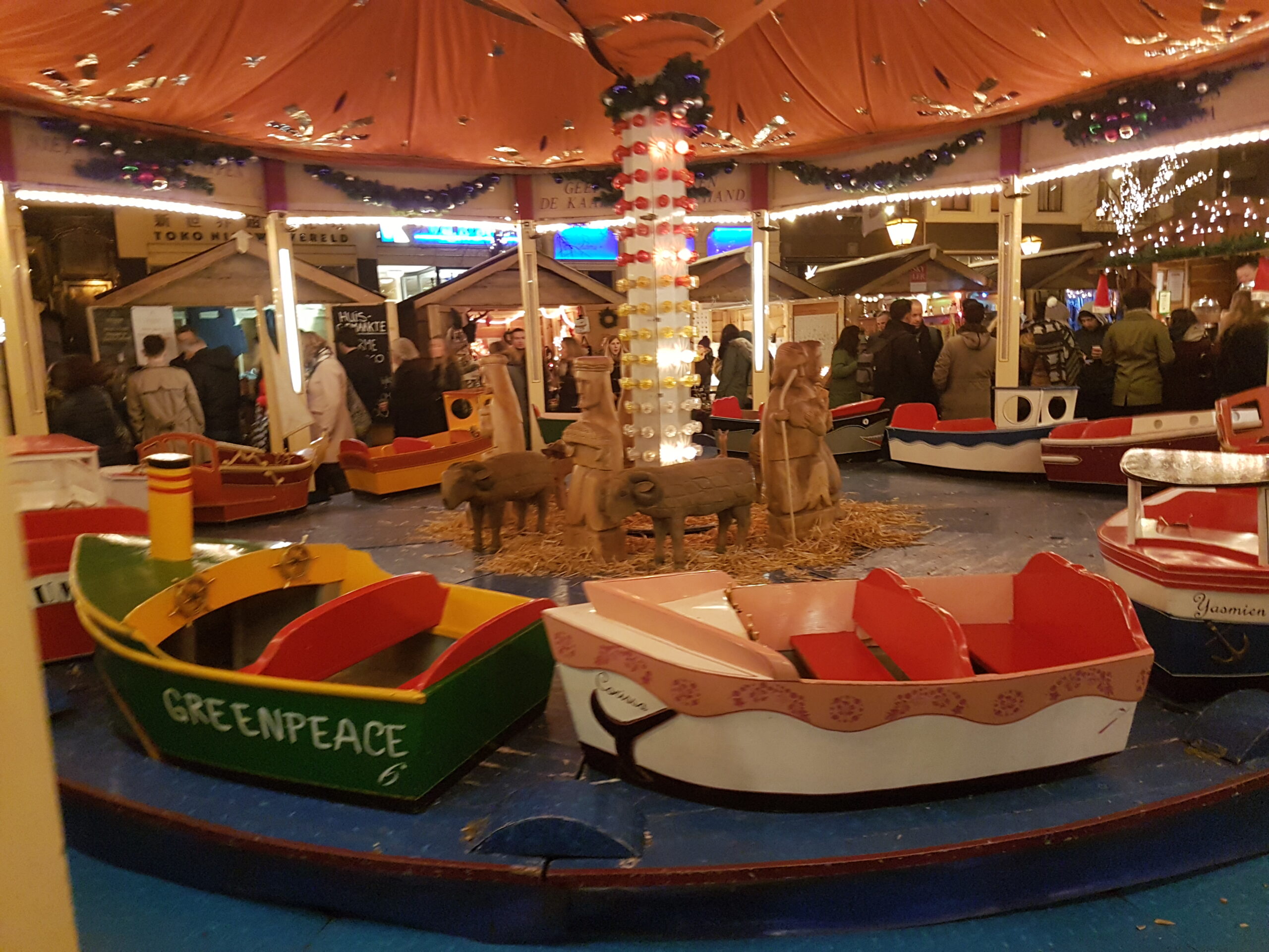 Ook het rondvaartbedrijf doet goede zaken. Om de haverklap vertrekt een volgeladen boot uit het speciale haventje dat in de kerstmarkt is gemaakt. “We liggen hier met twee schepen,” zegt Jack Geerlings van Rondvaart Leiden dat de 40 minuten durende tochtjes verzorgt. Overdag varen we met een open sloep, maar ’s avonds willen de meeste mensen toch liever in de overdekte boot.”