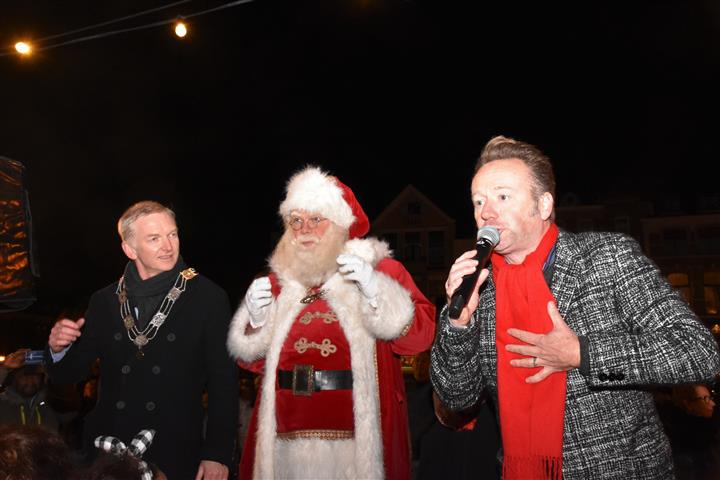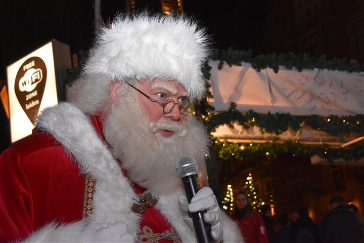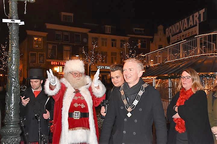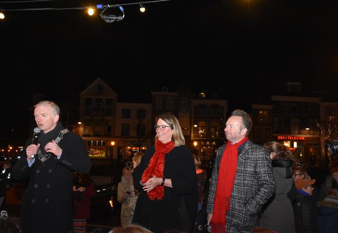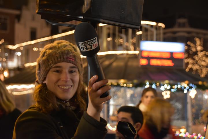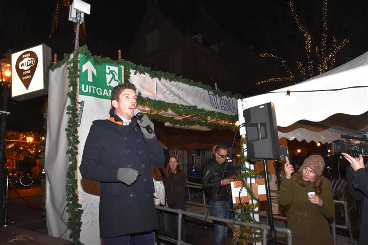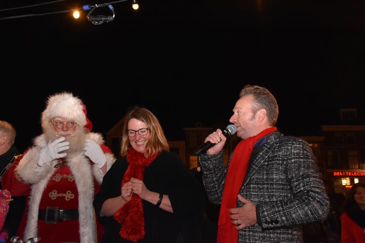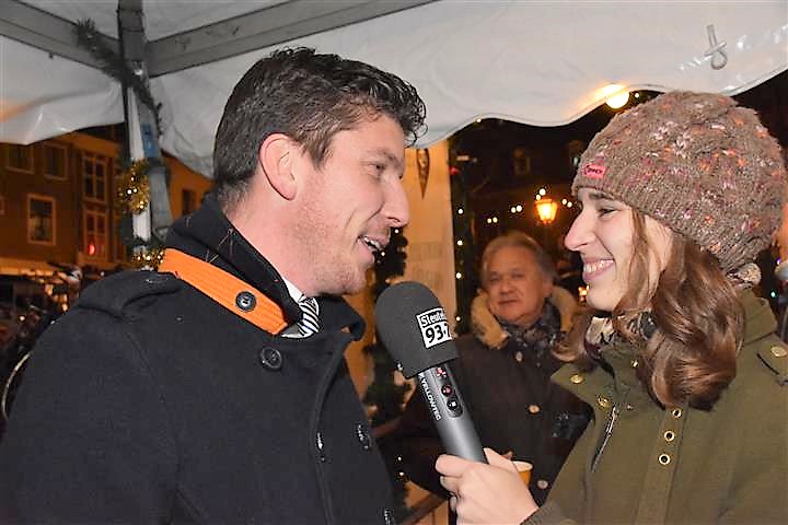 Reanne van Kleef sprak met Joris Linssen, de Kerstman, centrummanager Erwin Roodhart en locoburgemeester Robert Strijk over het ontsteken van de kerstboom en de officiële opening van de kerstmarkt en ijsbaan.
