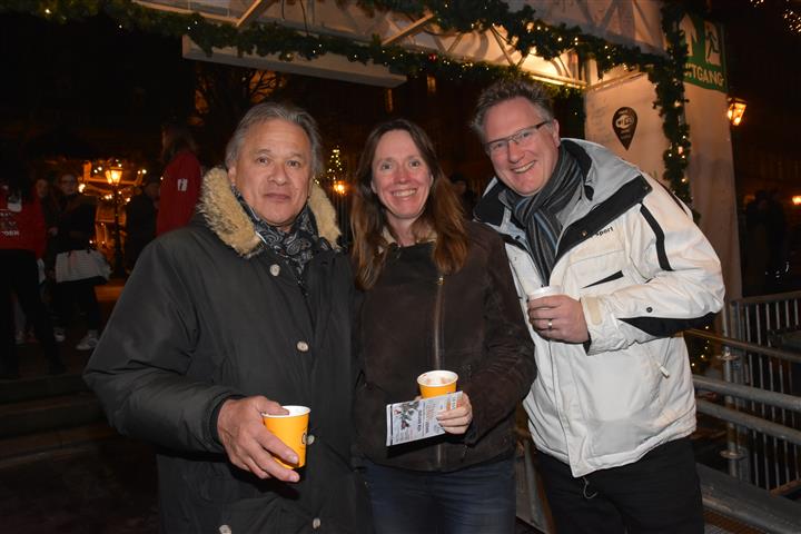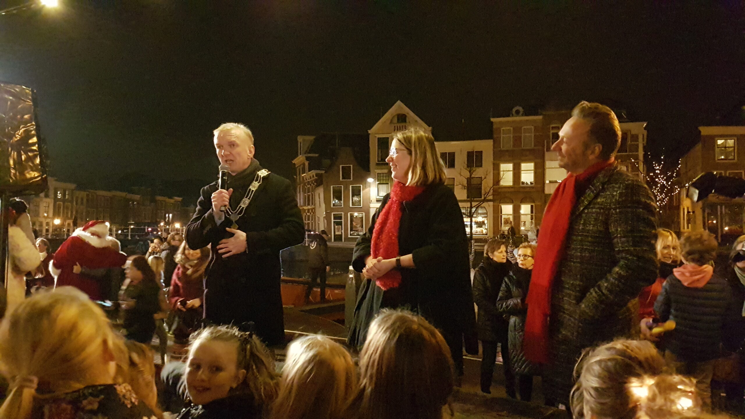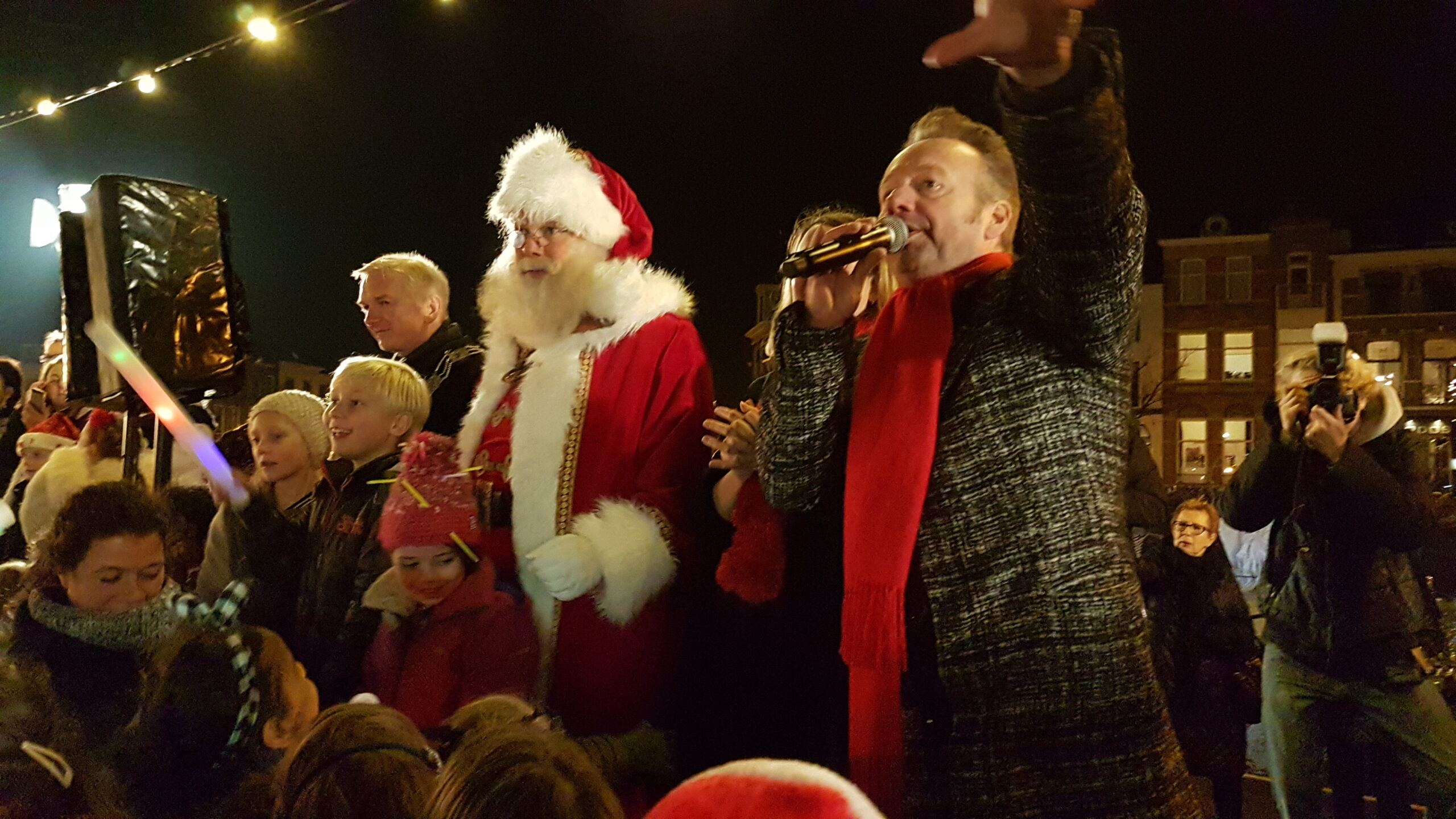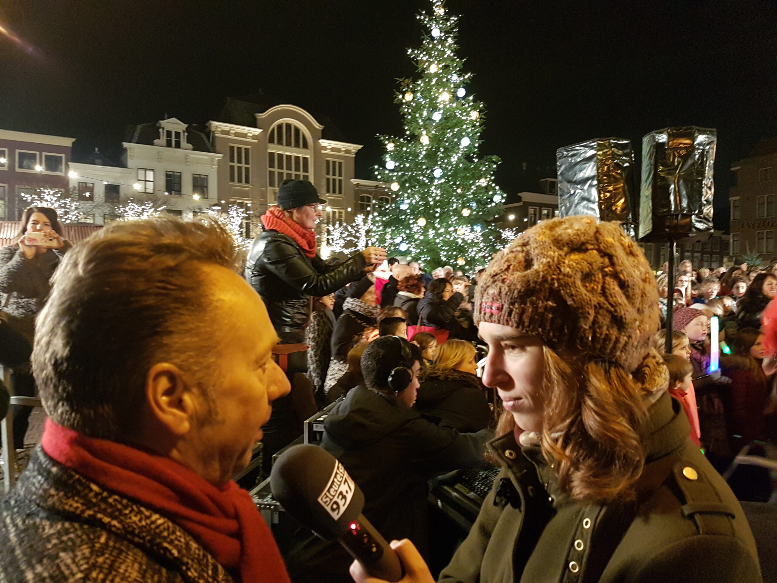 Reanne van Kleef sprak met Joris Linssen, de Kerstman, centrummanager Erwin Roodhart en locoburgemeester Robert Strijk over het ontsteken van de kerstboom en de officiële opening van de kerstmarkt en ijsbaan.