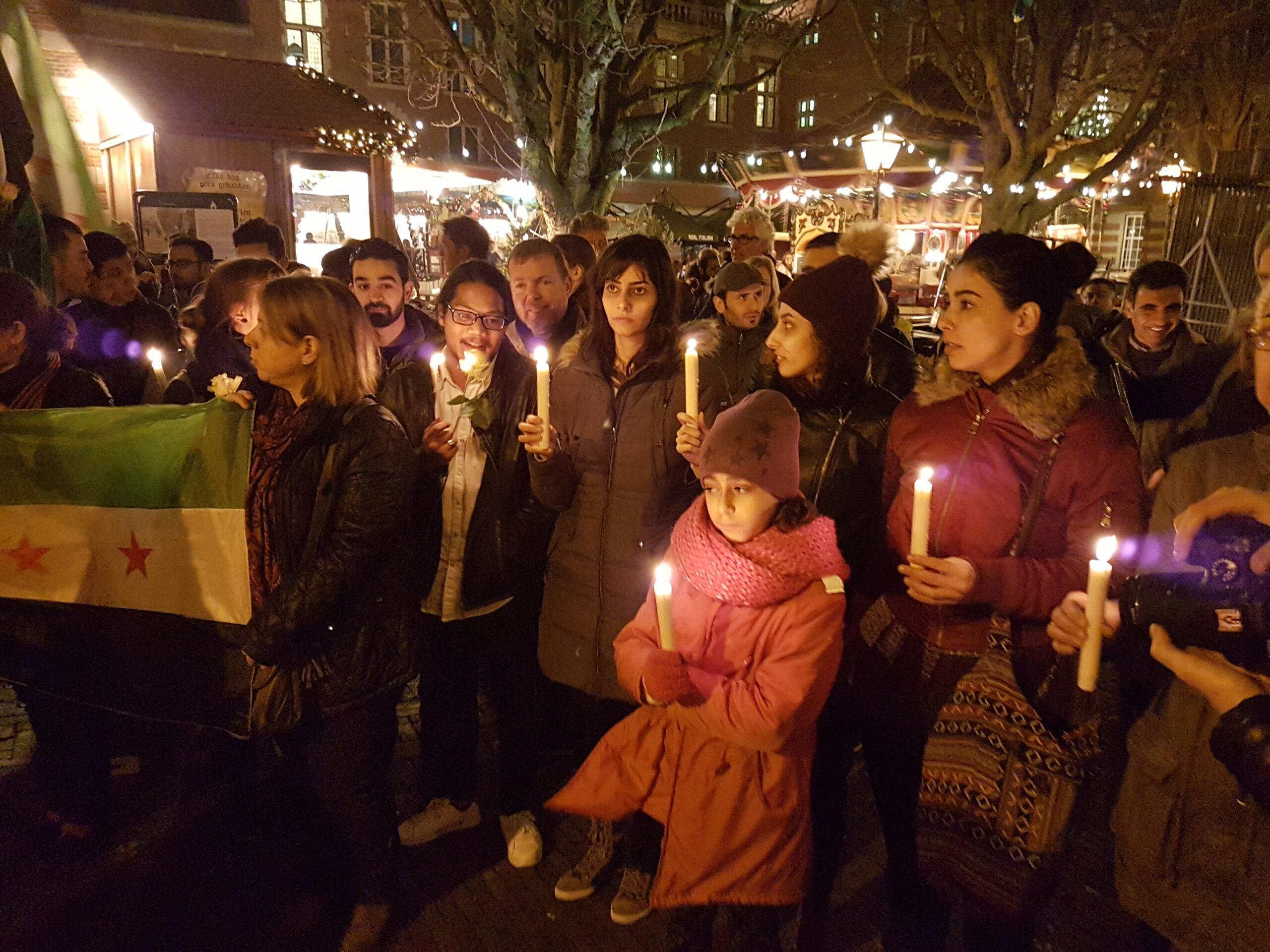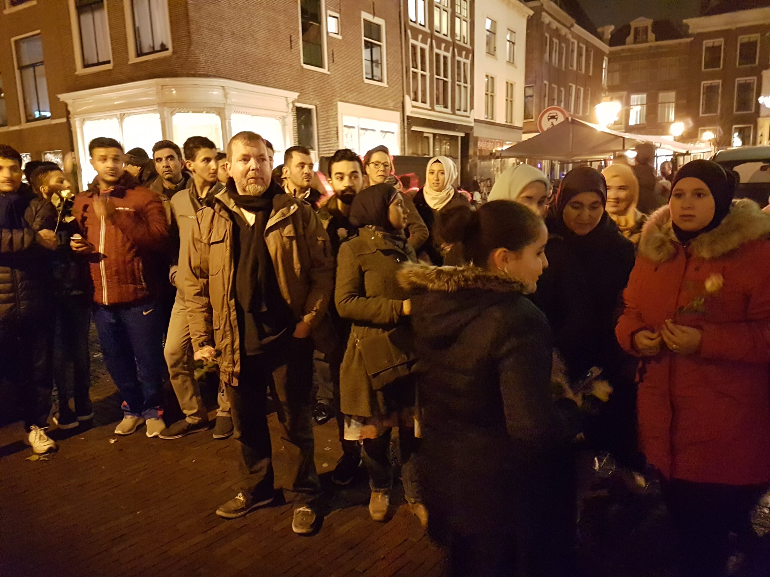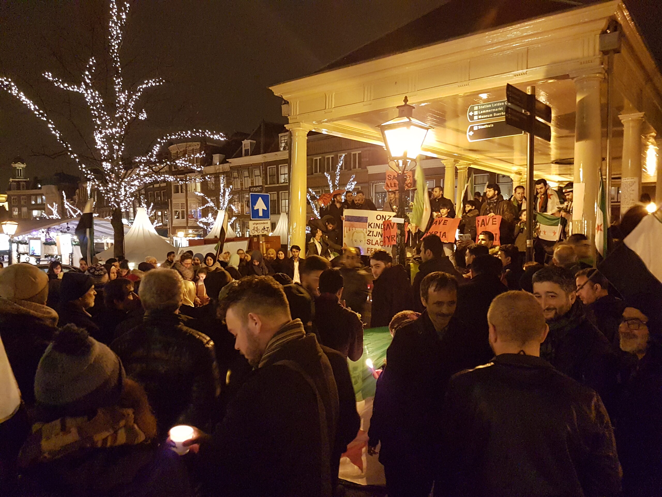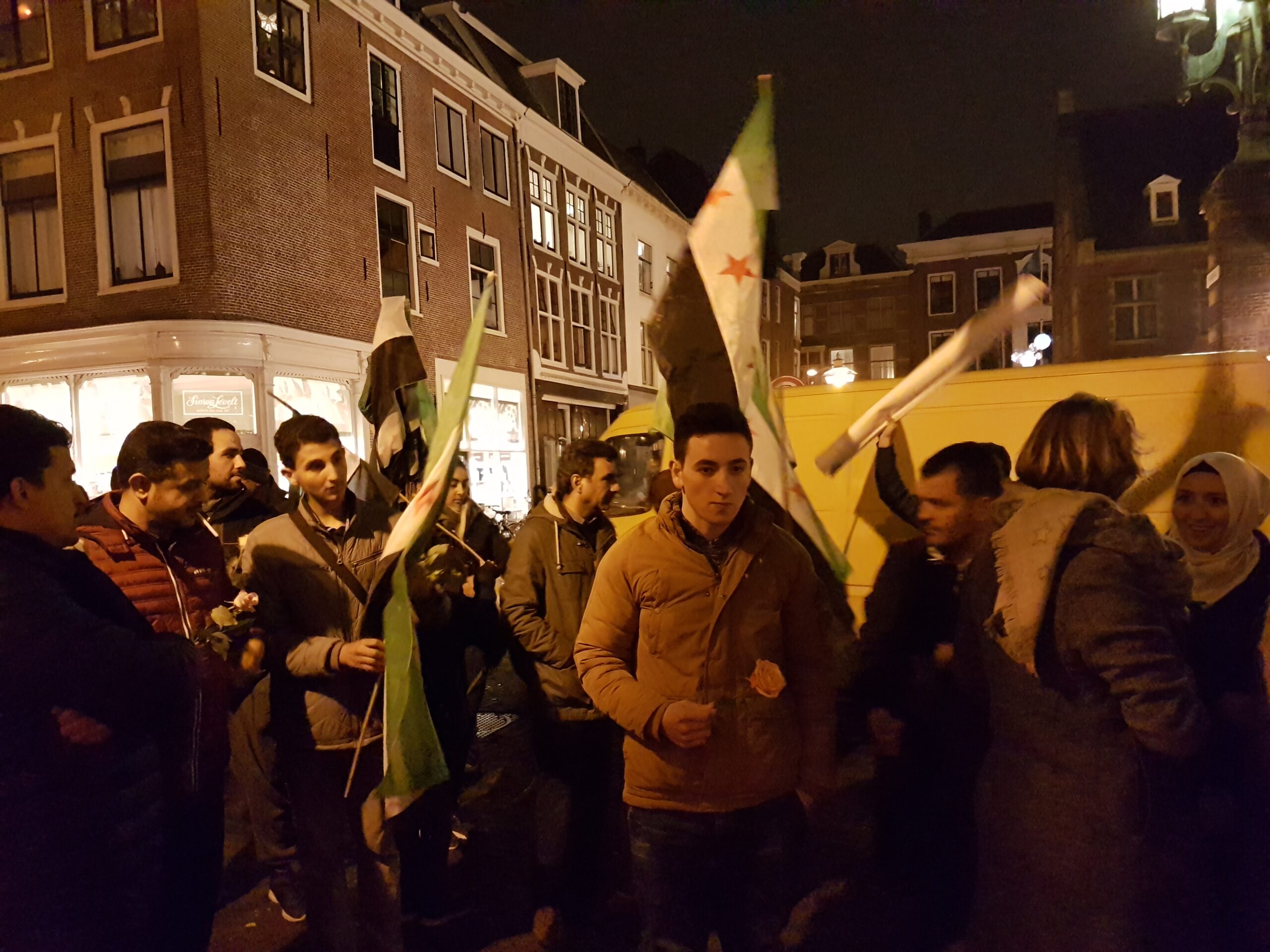 Afgelopen zaterdagavond kwamen meer dan honderd Syrische vluchtelingen uit Leiden en omgeving bij elkaar tijdens een ingetogen manifestatie rondom de Koornbeursbrug. De bijeenkomst had het karakter van een herdenking. Er werd een minuut stilte gehouden voor de slachtoffers in het door oorlog geteisterde land. Toespraken waren er niet. “Er wordt al zoveel gepraat, het helpt allemaal niets,” vertelt Amira. Ze is een van de initiatiefnemers.