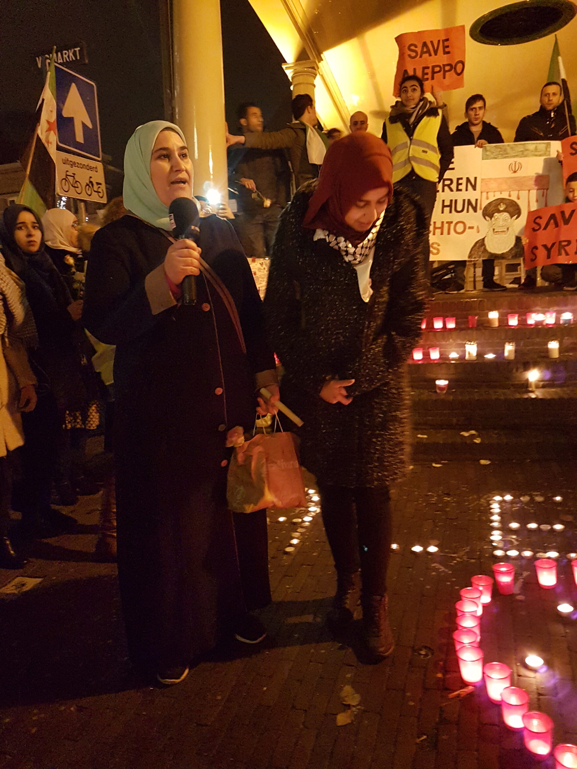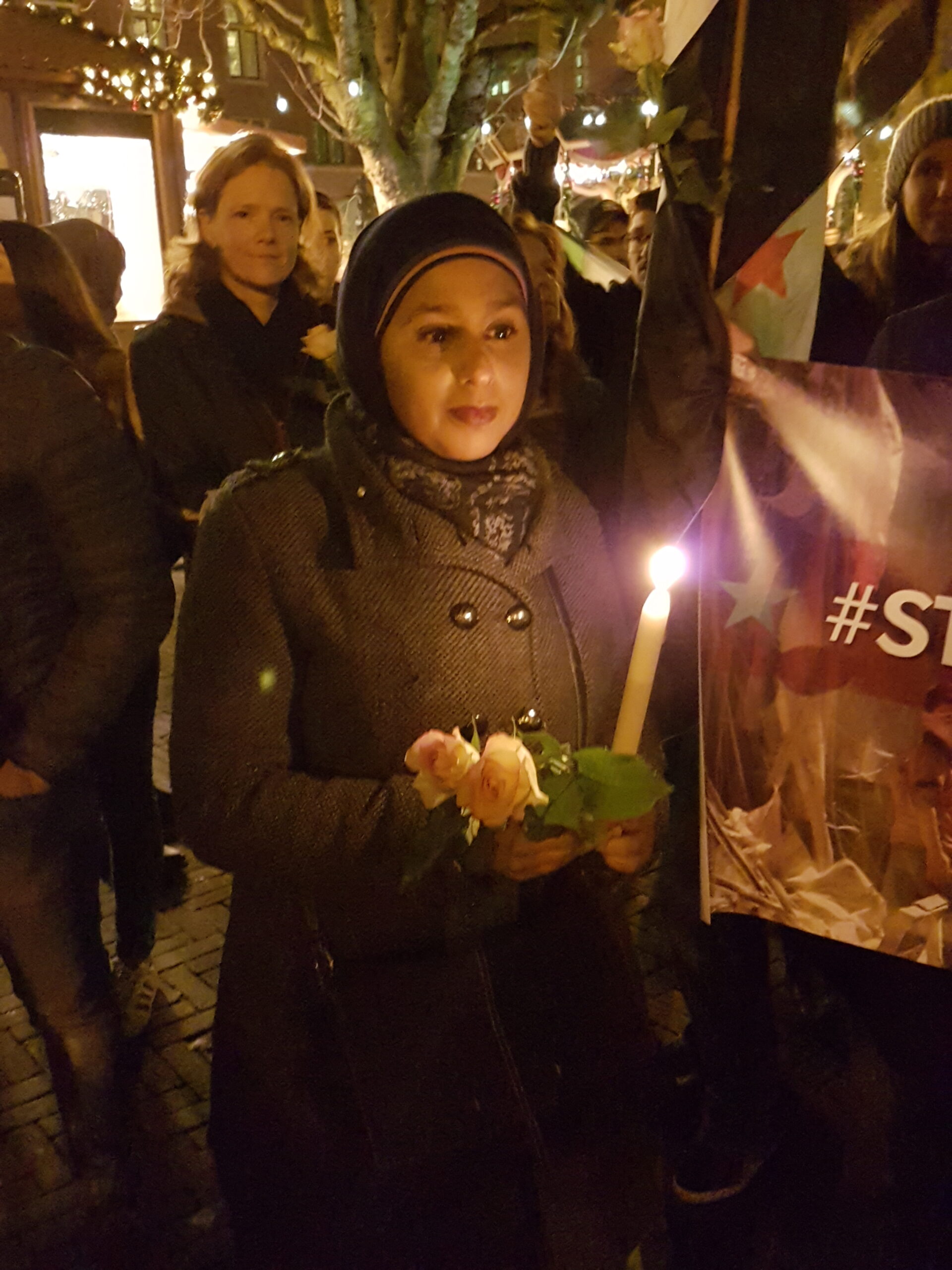 Amira vraagt de aanwezigen na de minuut stilte hoeveel slachtoffers er in die 60 seconden gevallen zouden zijn in Aleppo. Het antwoord doet er niet toe. “Daarom vroeg ik het niet. Ik wilde dat de mensen er nog eens extra bij stil stonden.” Na Aleppo is nu de stad Idlip aan de beurt zo vreest ze, “Ik denk dat er nog heel veel doden gaan vallen.”