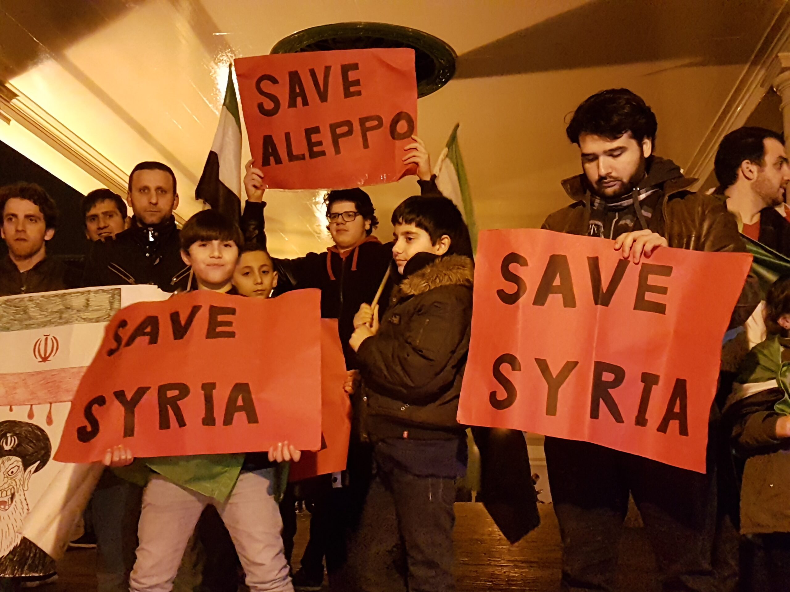 Syrische vluchtelingen staan stil bij de verschrikkingen in Aleppo. (Video: Chris de Waard)