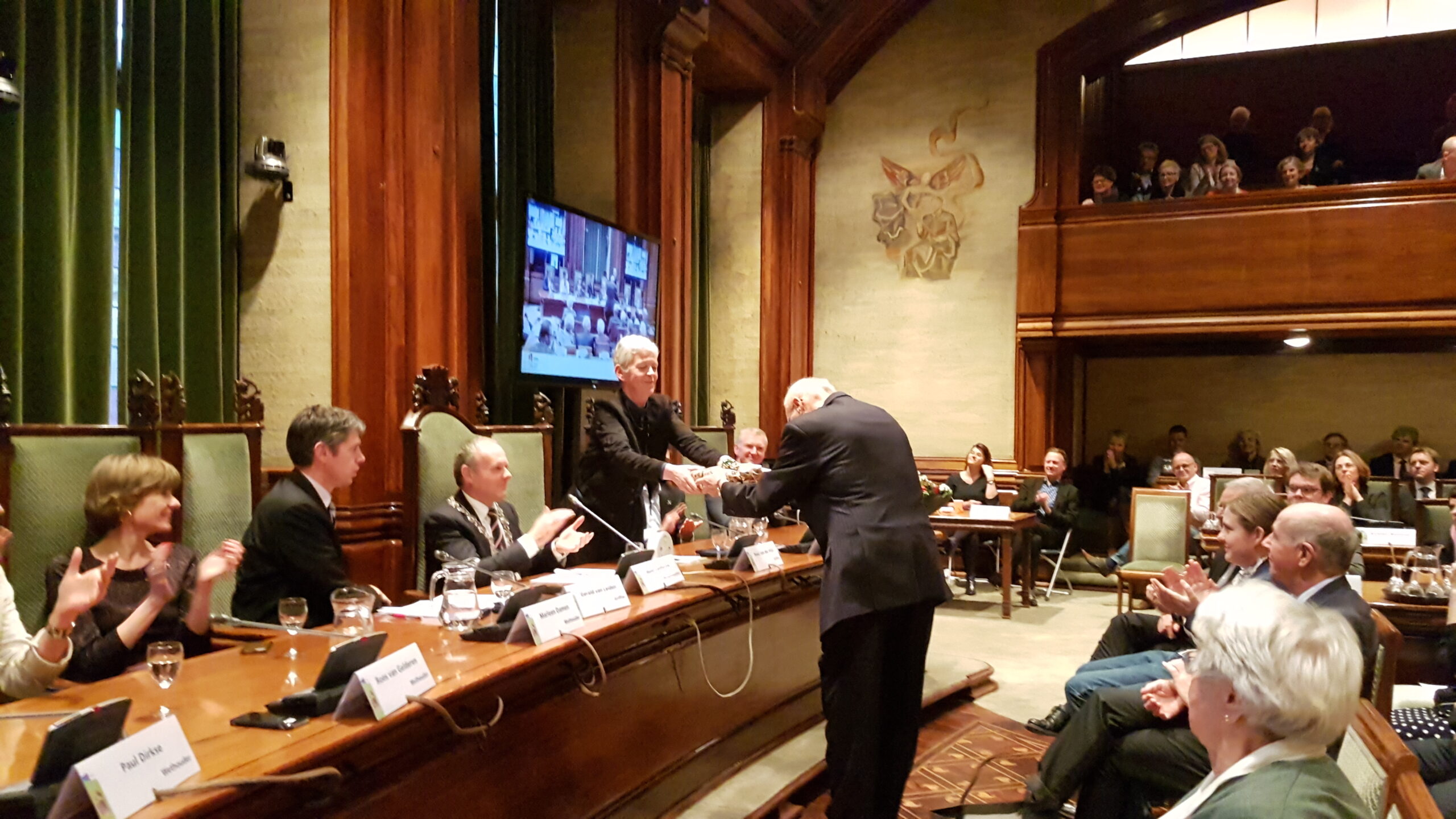 Na de afscheidstoespraak van burgemeester Lenferink kreeg Noor van der Vlist de Jan van Houtpenning uitgereikt. Burgemeester en wethouders van de gemeente Leiden en de Werkgeverscommissie van de Leidse Gemeenteraad kenden de Jan van Houtpenning aan mevrouw Van der Vlist toe vanwege haar bijzondere toewijding aan haar taak, gedurende zeer veel jaren.