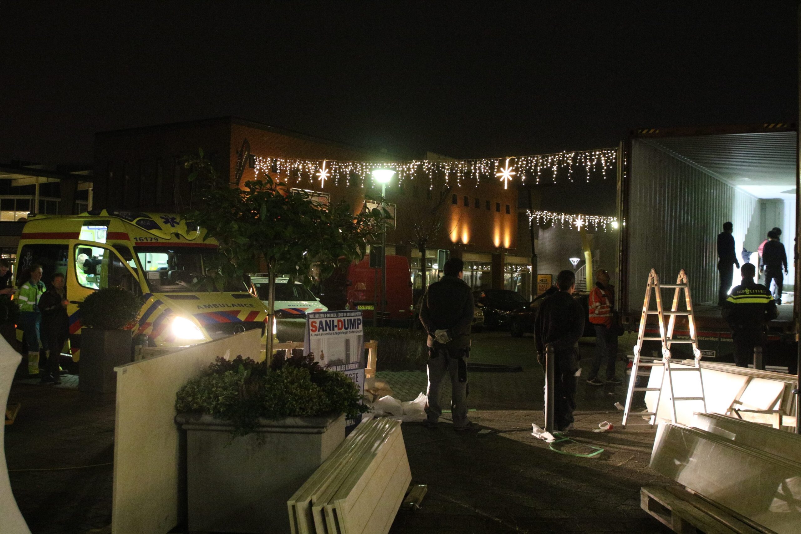 Op meubelplein Wooon is vanmiddag een man gewond geraakt toen hij bij het lossen van een zeecontainer een stapel marmeren platen op zijn been kreeg. Wat er precies fout ging is niet bekend. Collega’s van de man hebben de marmeren platen weggehaald, zodat het ambulancepersoneel zich over het slachtoffer kon ontfermen. Het slachtoffer is uiteindelijk met letsel aan zijn been vervoerd naar het ziekenhuis.