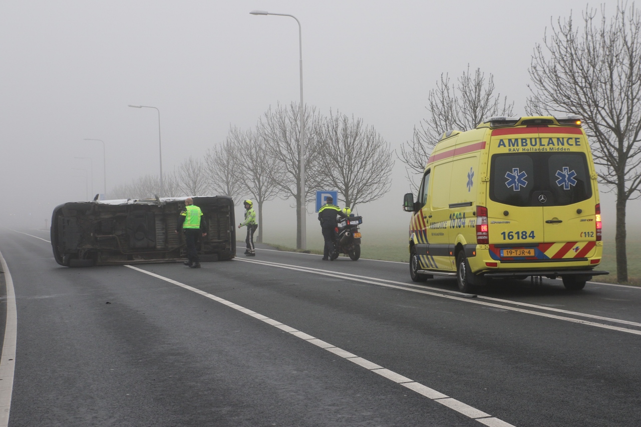 Woensdagmiddag zijn op de Europaweg een personenauto en een bestelbus op elkaar gebotst. Daarbij kwam het busje op zijn kant dwars over de weg te liggen. Volgens een ooggetuige is een van de inzittenden naar het ziekenhuis vervoerd.