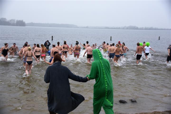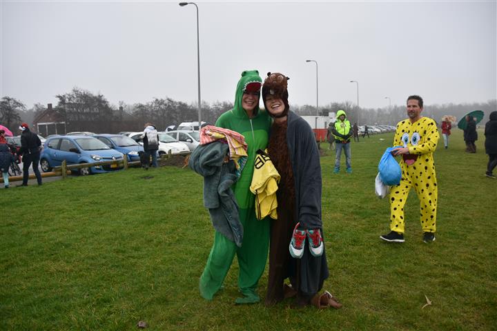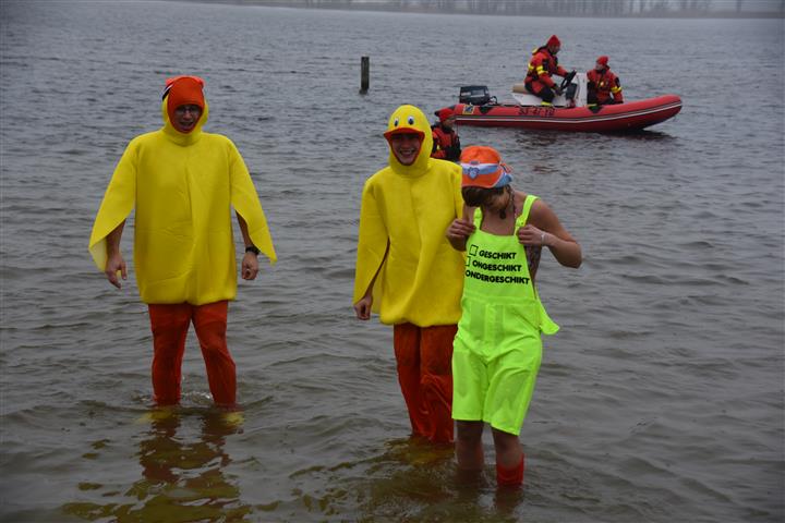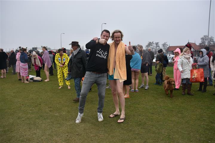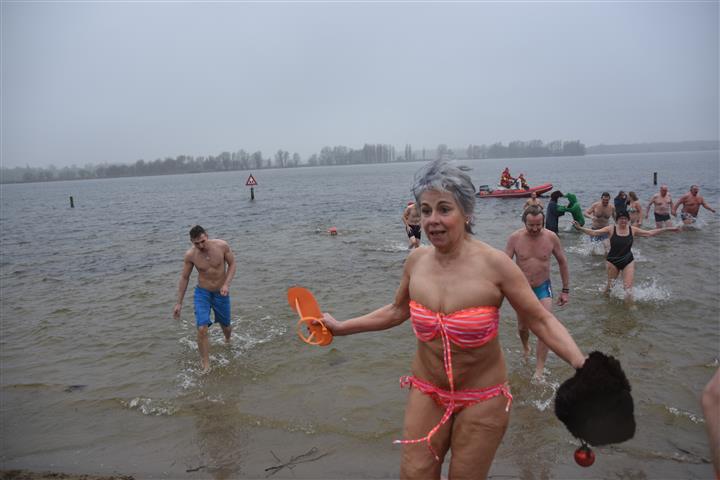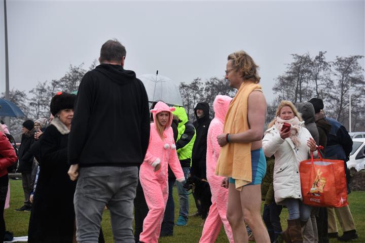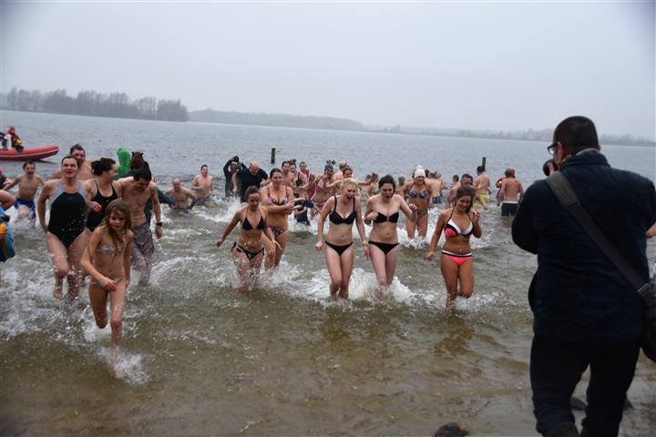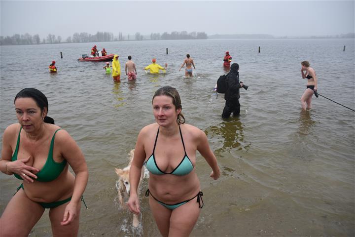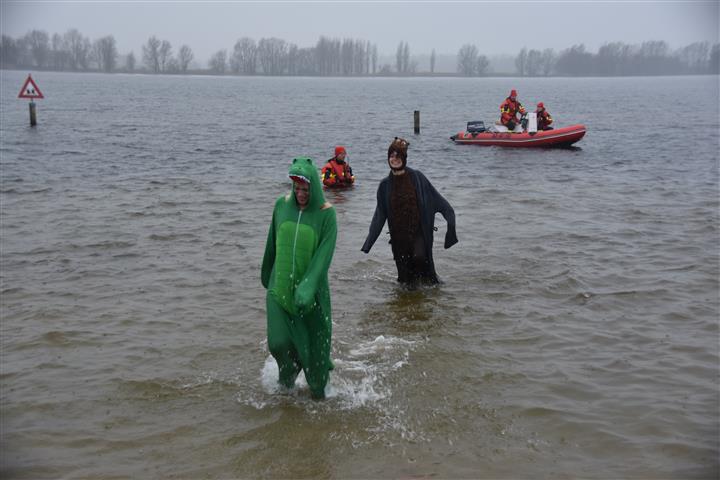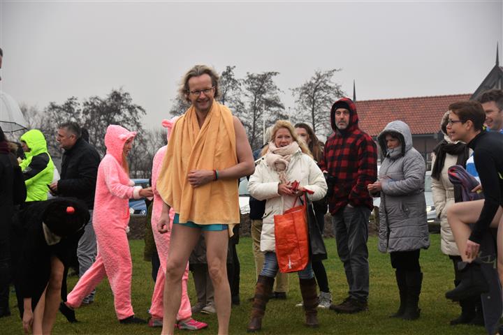 Ook in de sloot bij De tuin van de smid sprongen mensen dapper het nieuwe jaar in.