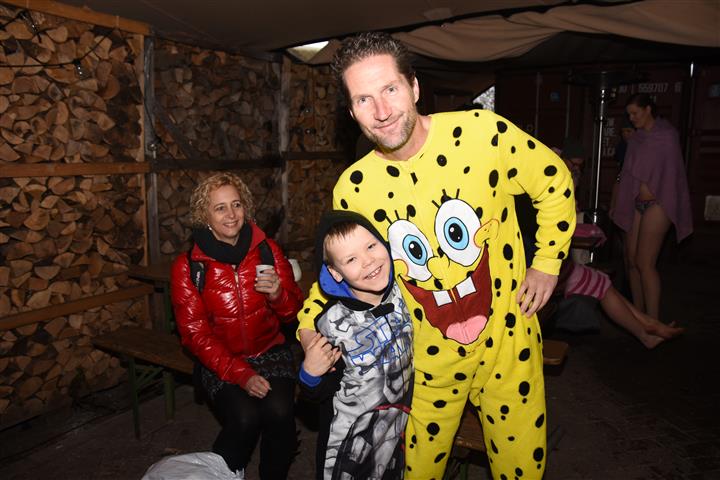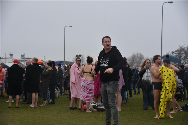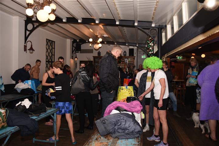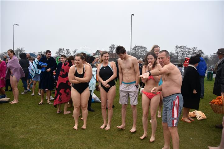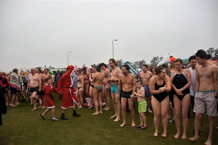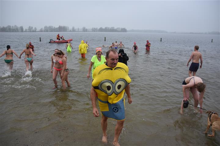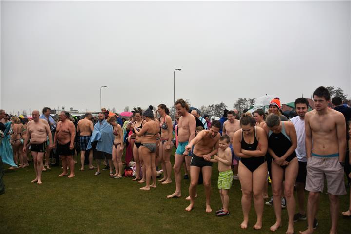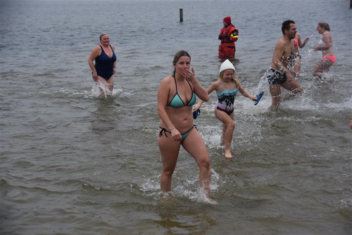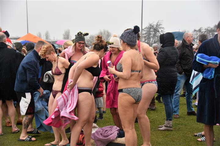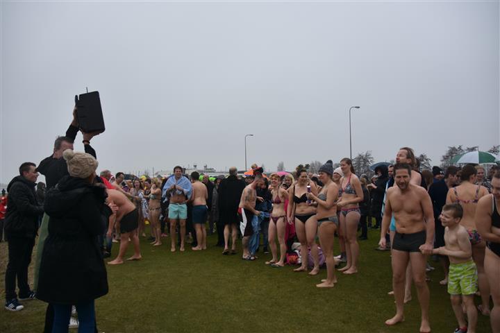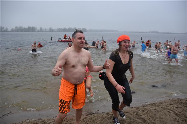 Ook in de sloot bij De tuin van de smid sprongen mensen dapper het nieuwe jaar in.