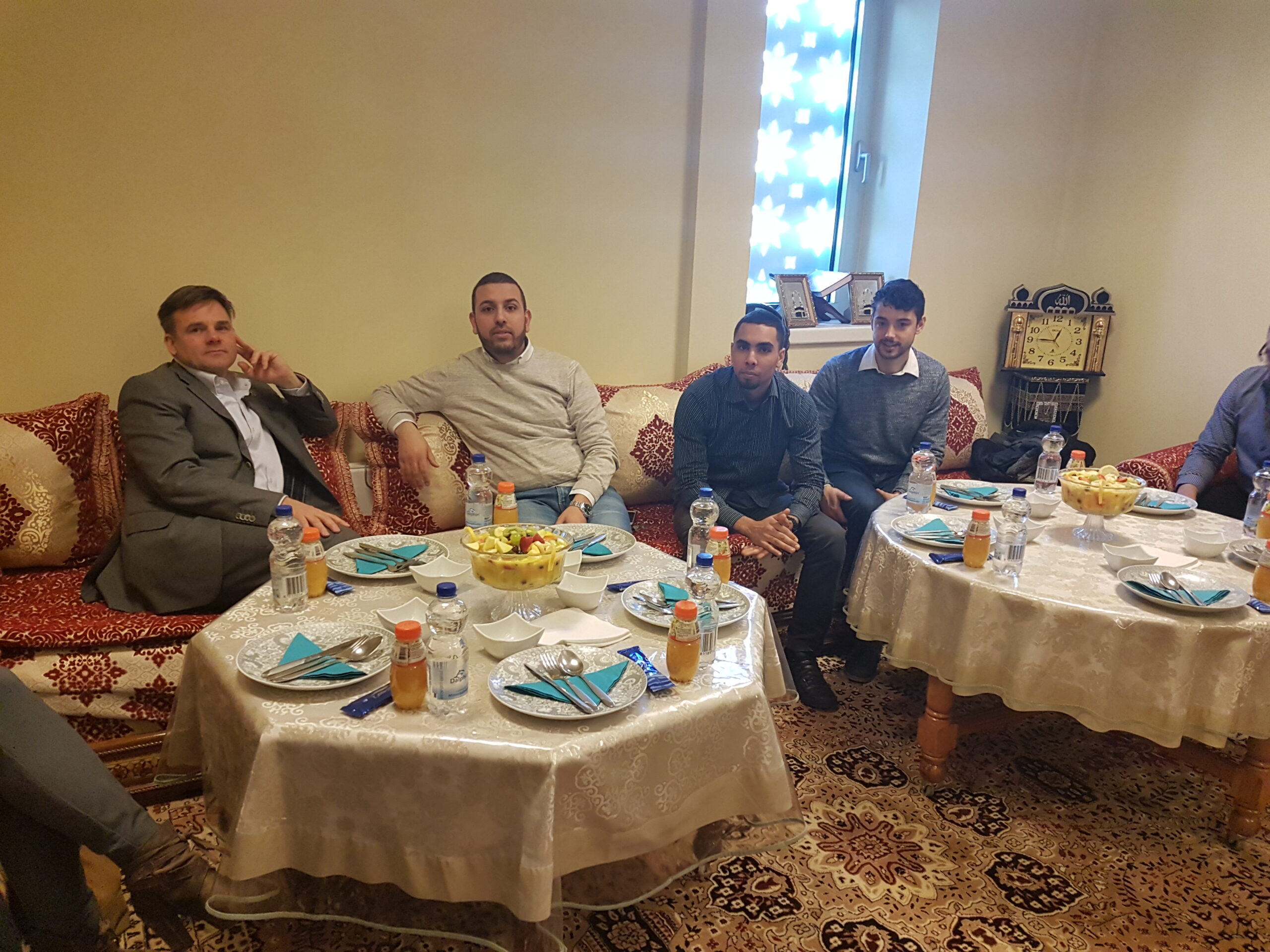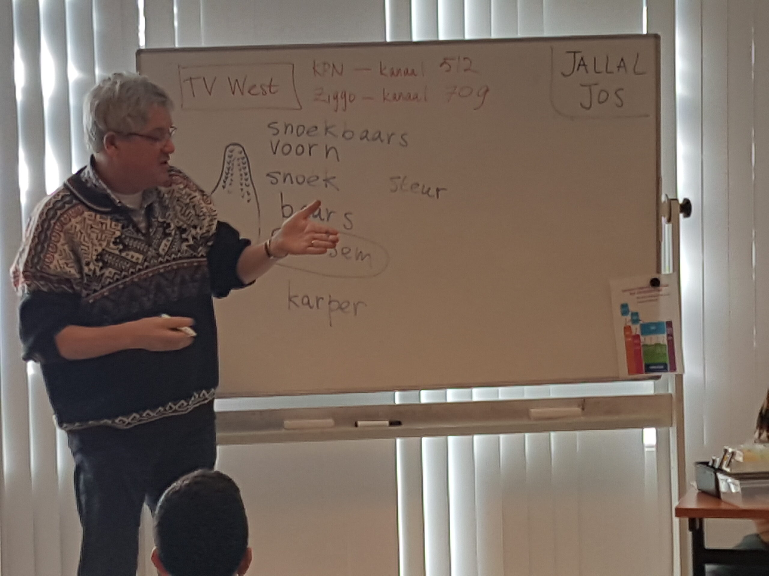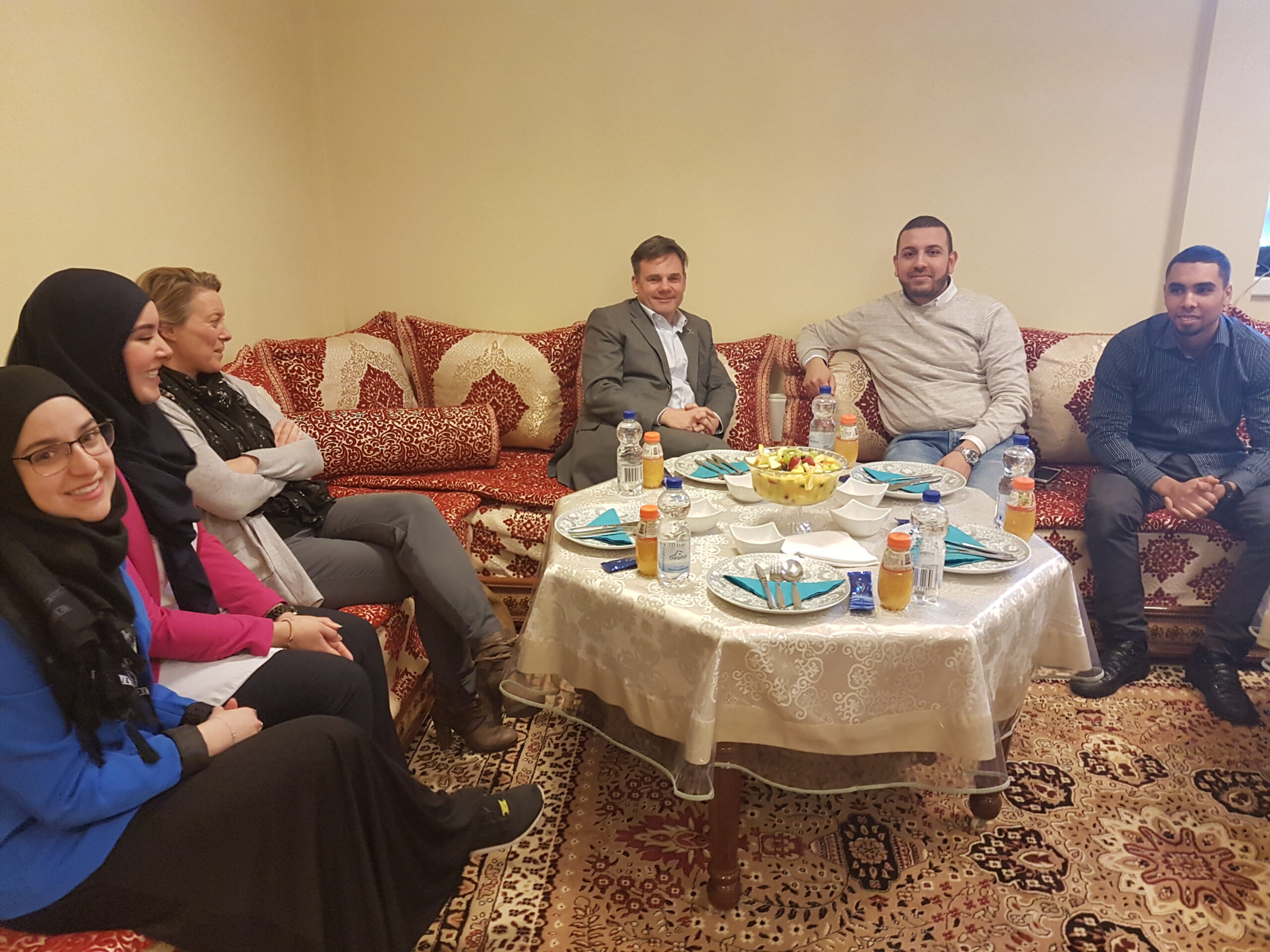 Chris de Waard ging in de pauze even langs en sprak met drie leerlingen, met trainer Jos van den Broek en met moskee-bestuurslid Abdelhamid Bouzzit.