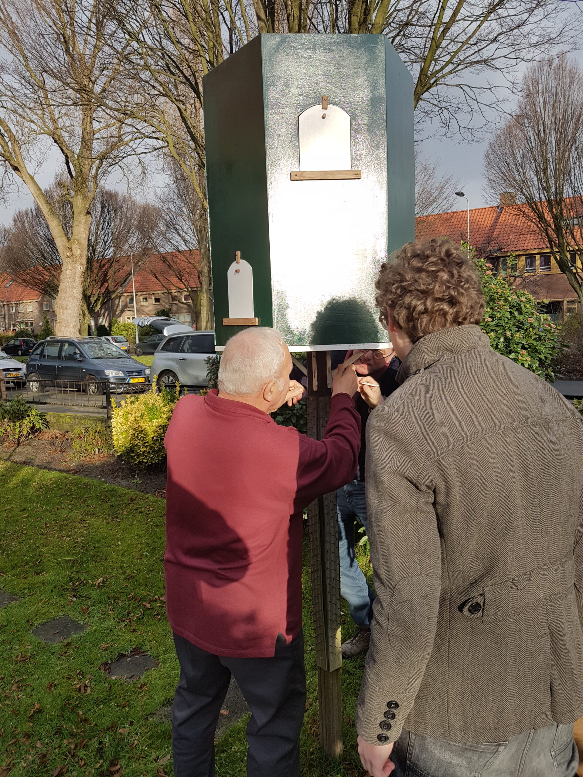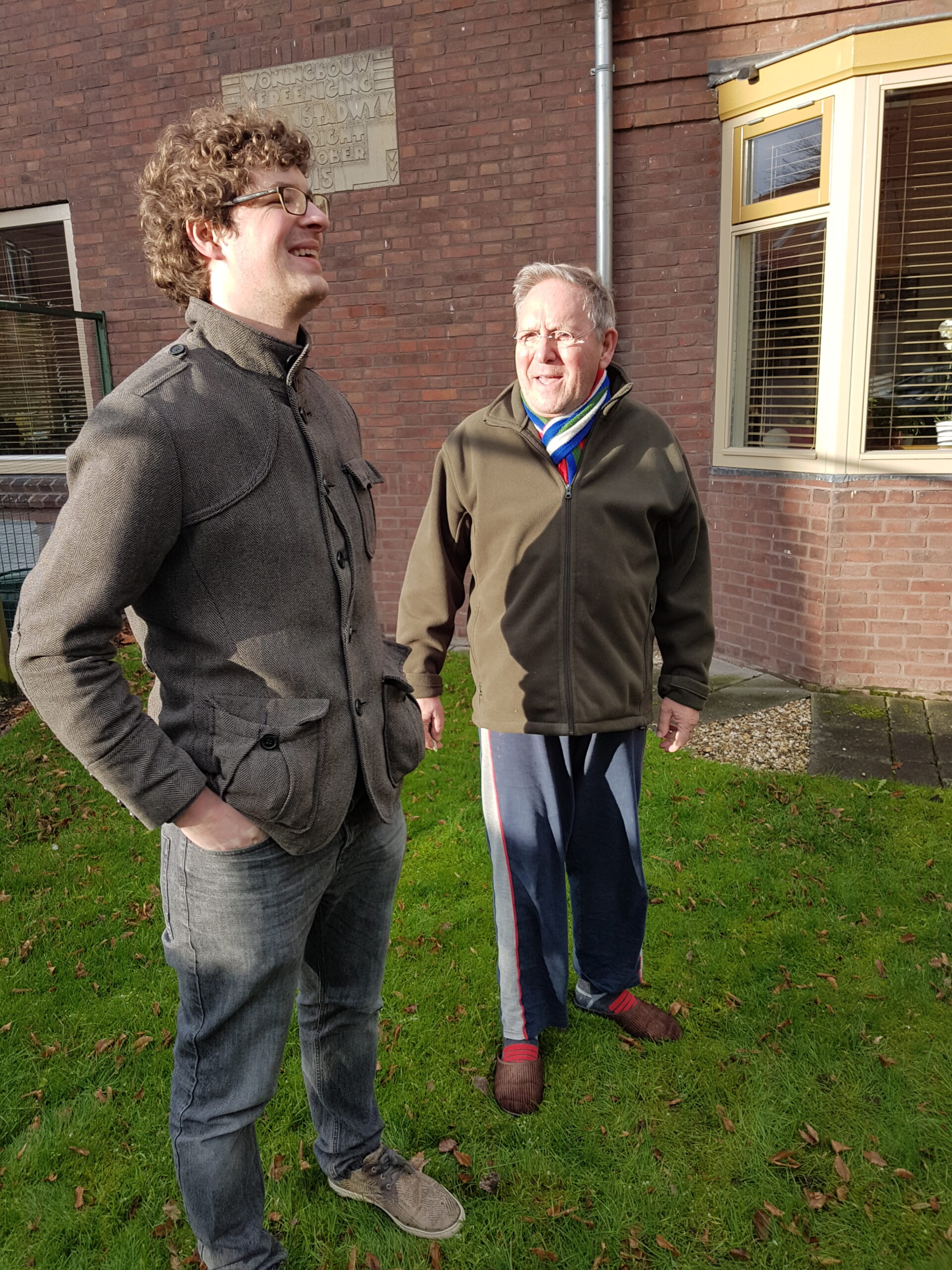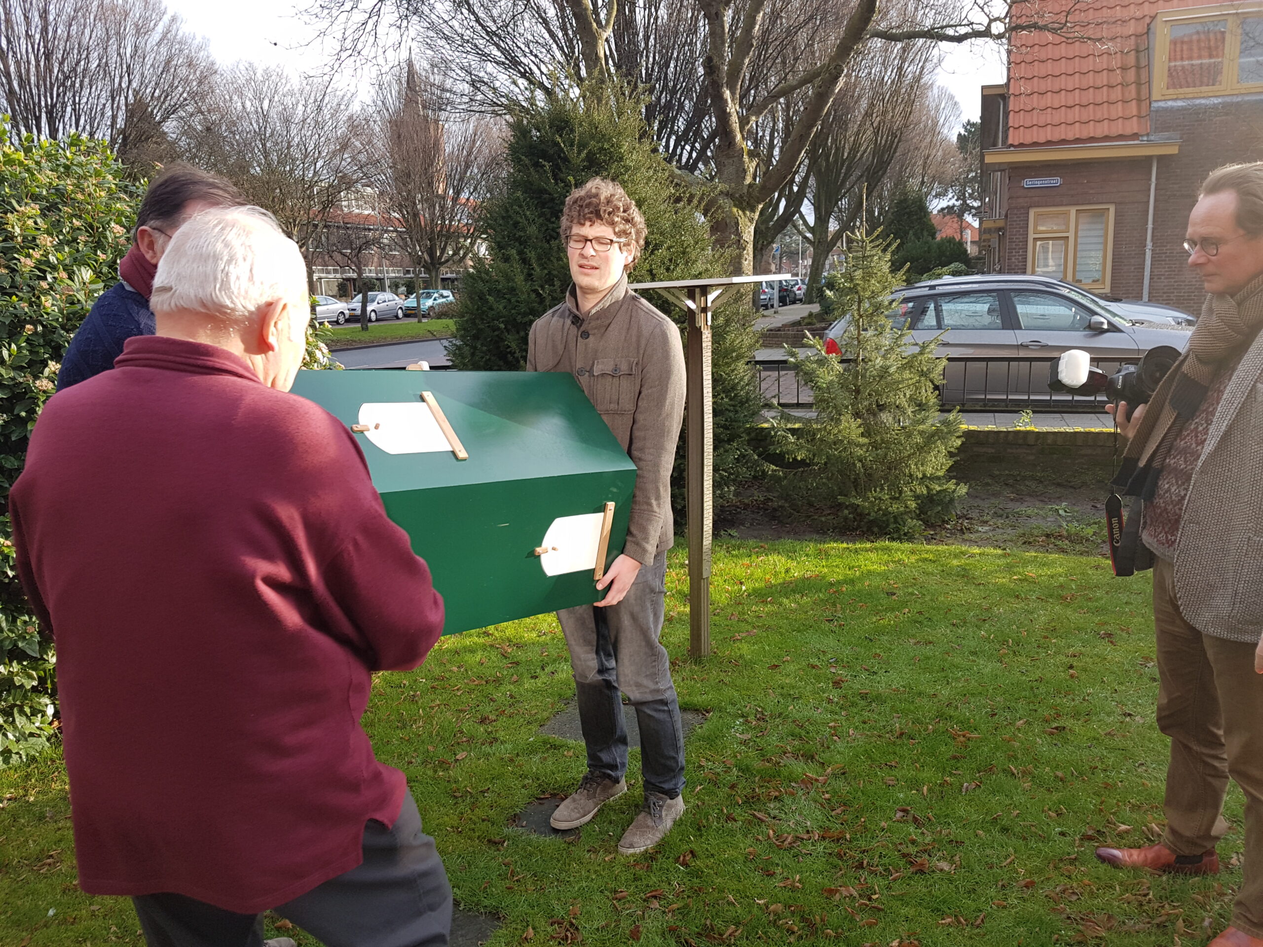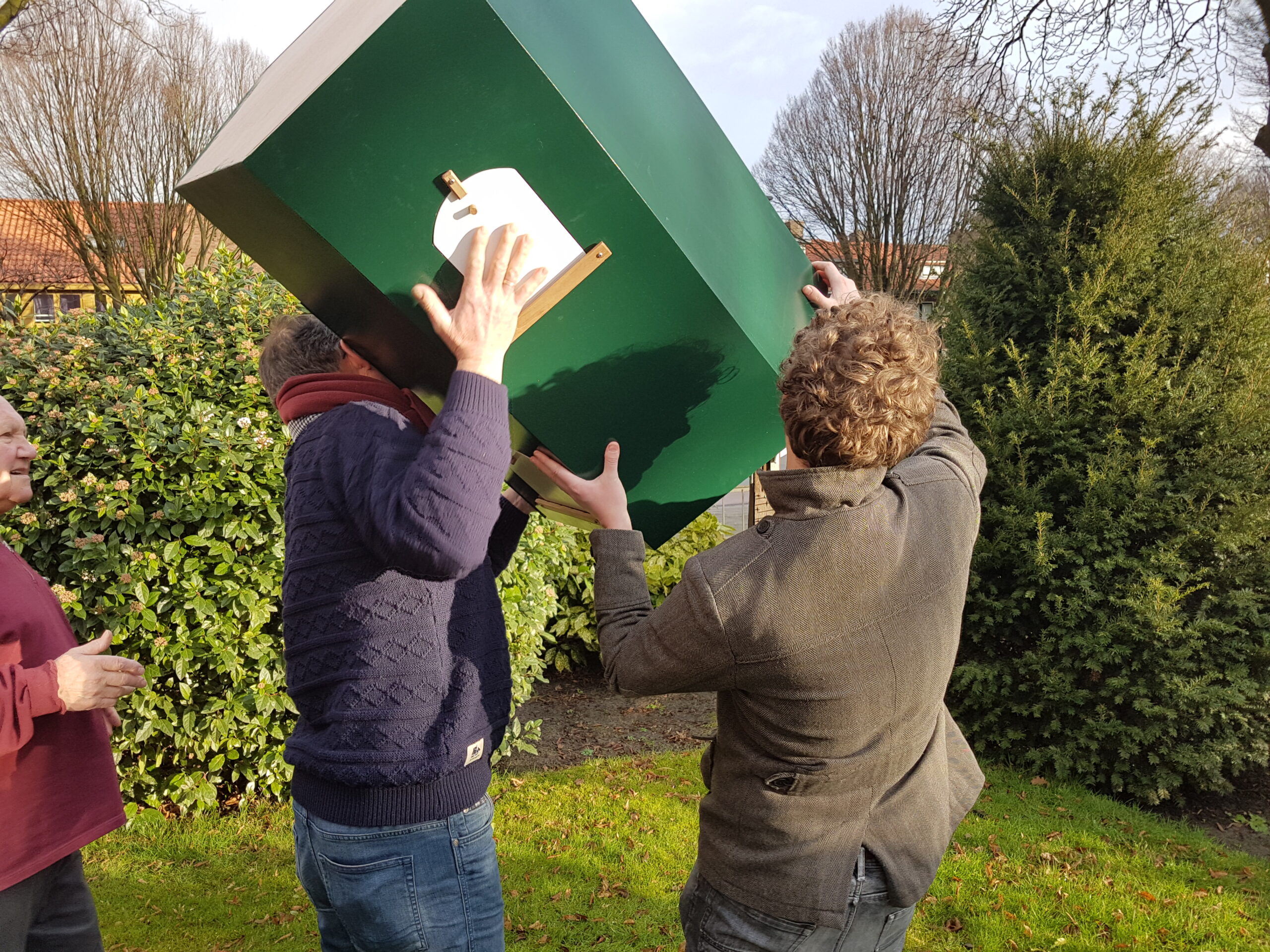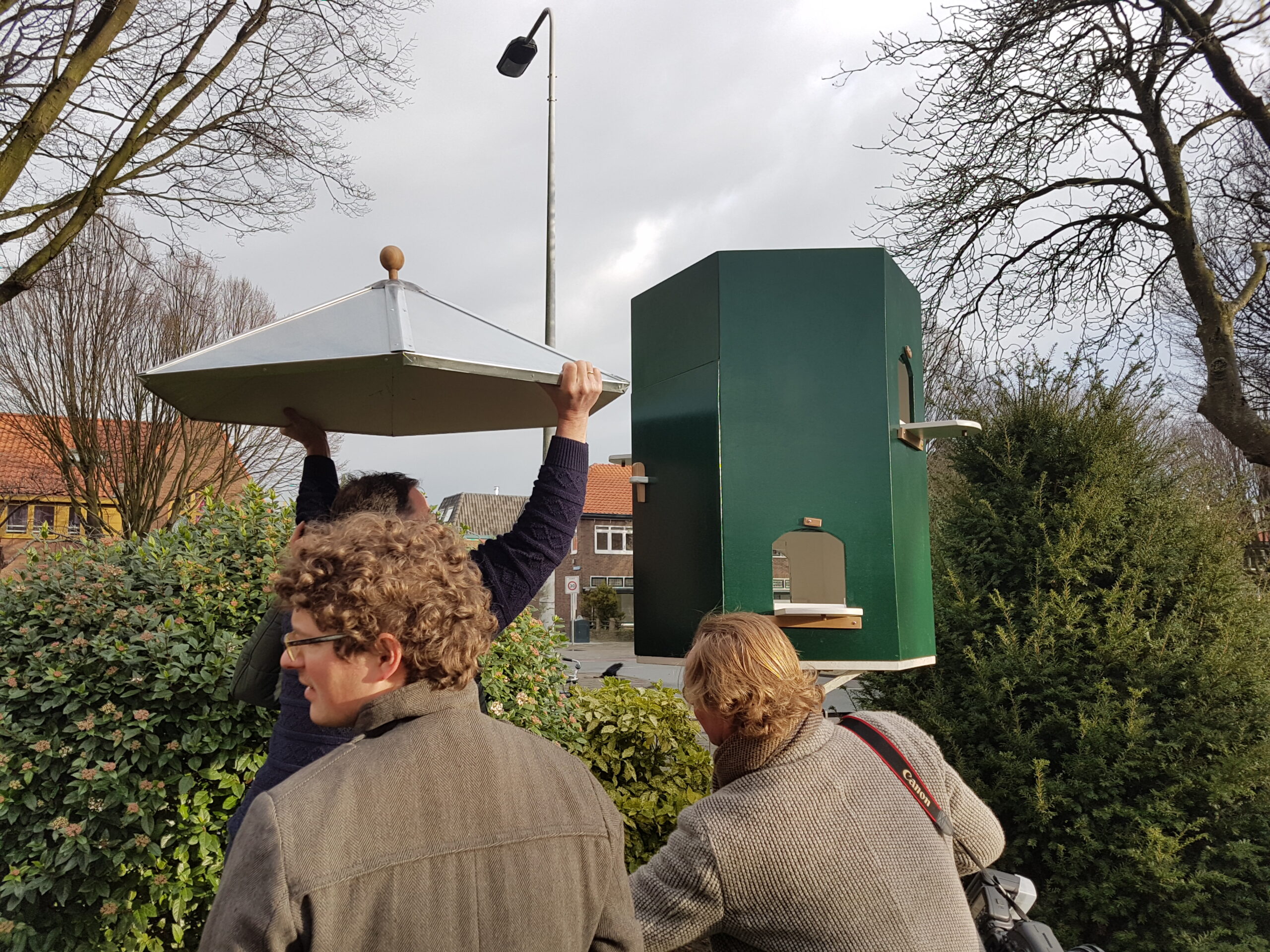 Chris de waard ging zaterdagmorgen langs bij het plaatsen van de nieuwe duiventil en sprak met alle betrokkenen.