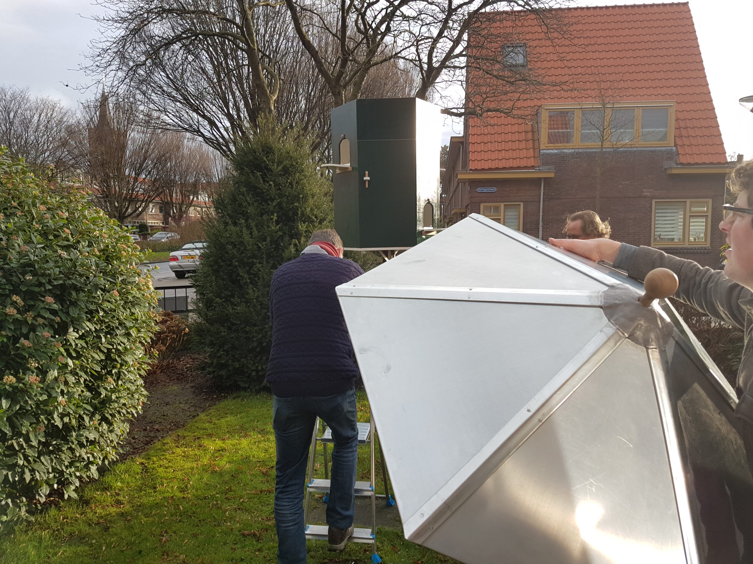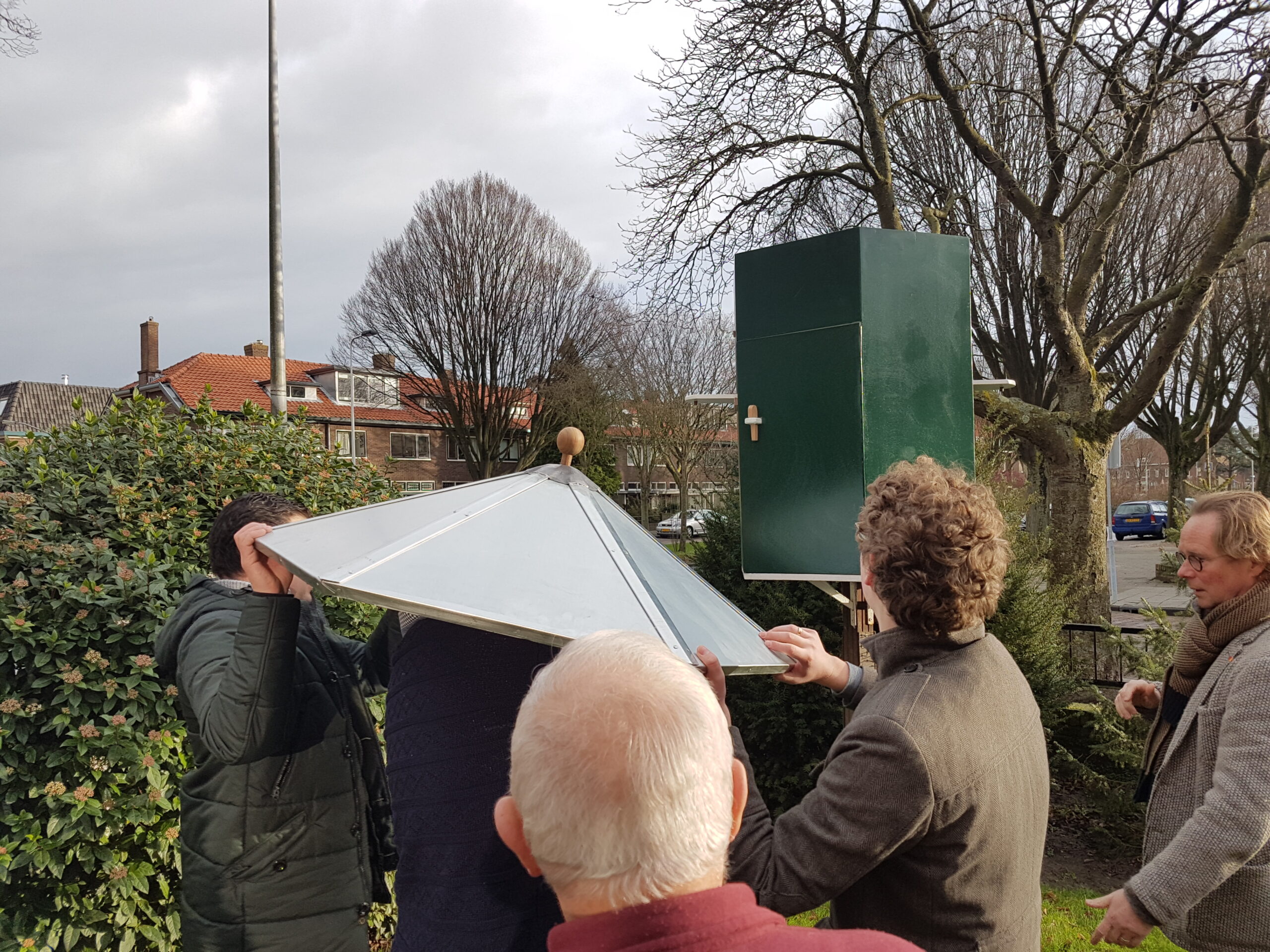 Er is uiteindelijk geen nieuwe duiventil voor Ouwersloot gekocht. Het nieuws haalde verschillende landelijke media en kwam zo ook in Wageningen terecht waar een handige hobbyist de telefoon pakte en aanbood om de oude til na te maken. Dat is in de afgelopen twee weken gebeurd en vanmorgen werd de nieuwe duiventil op de paal teruggezet. Dit keer zelfs met een zinken dak. “Dat komt omdat mijn buurman loodgieter is. Toen hebben we samen een zinken dak voor de duiventil gemaakt.”