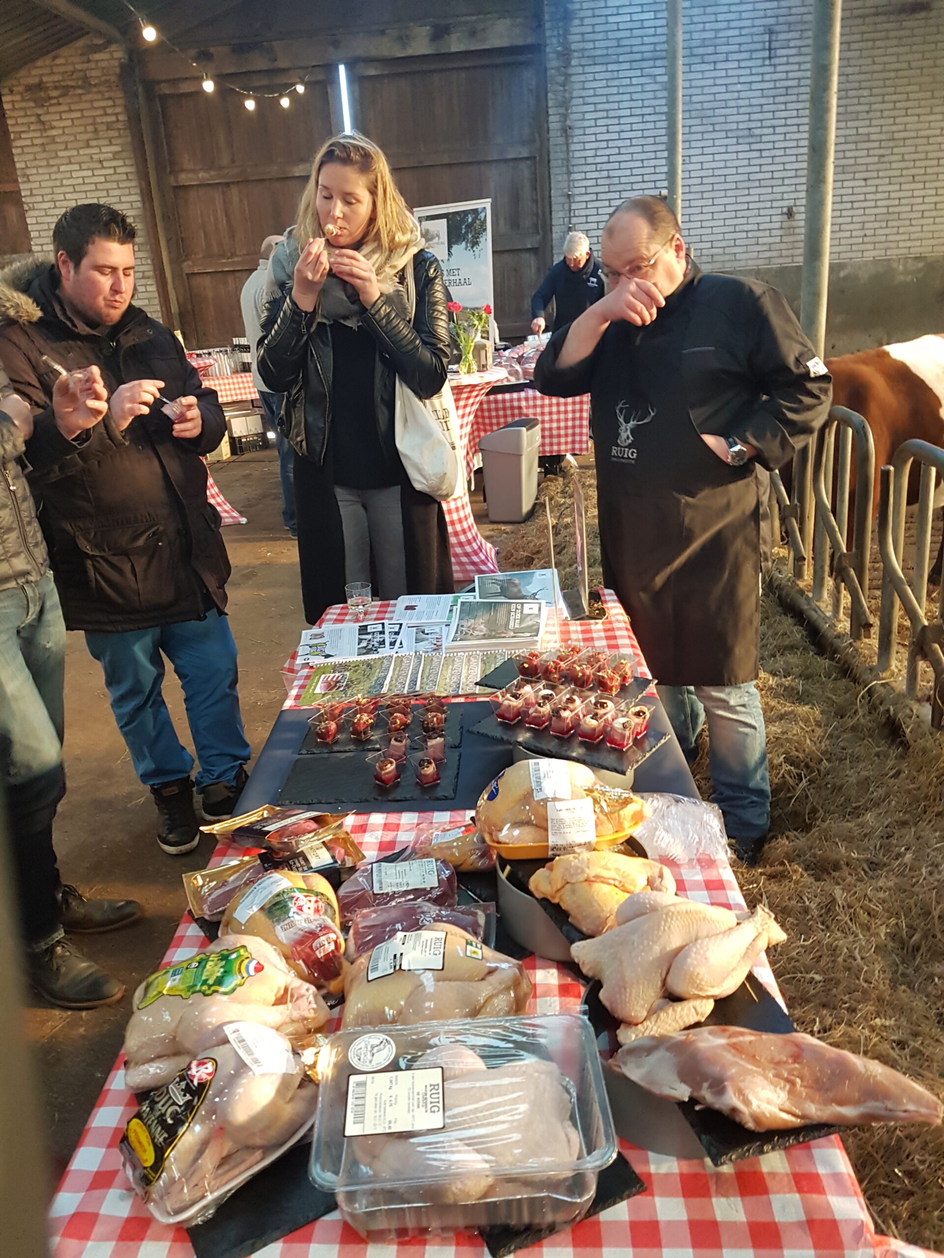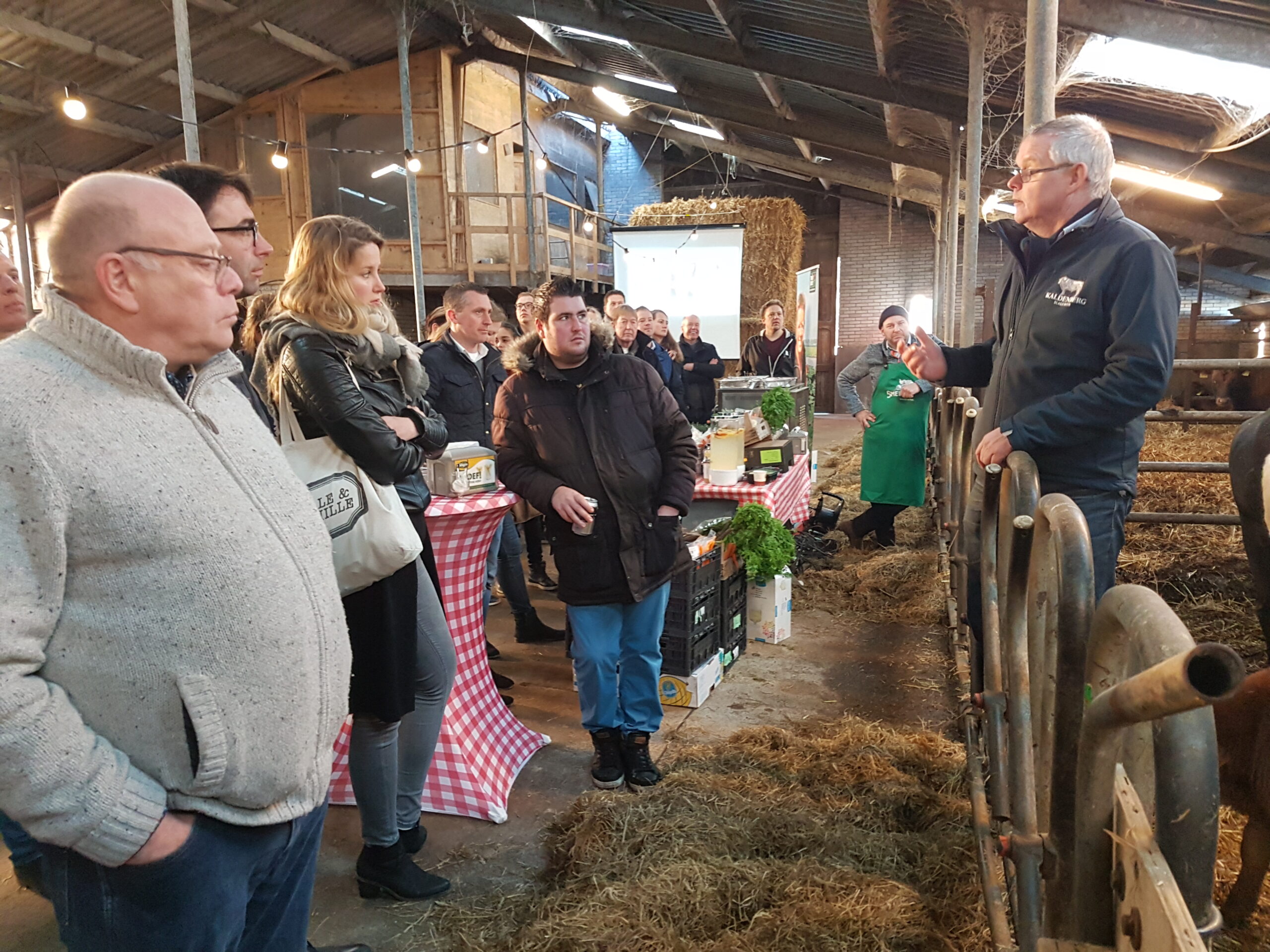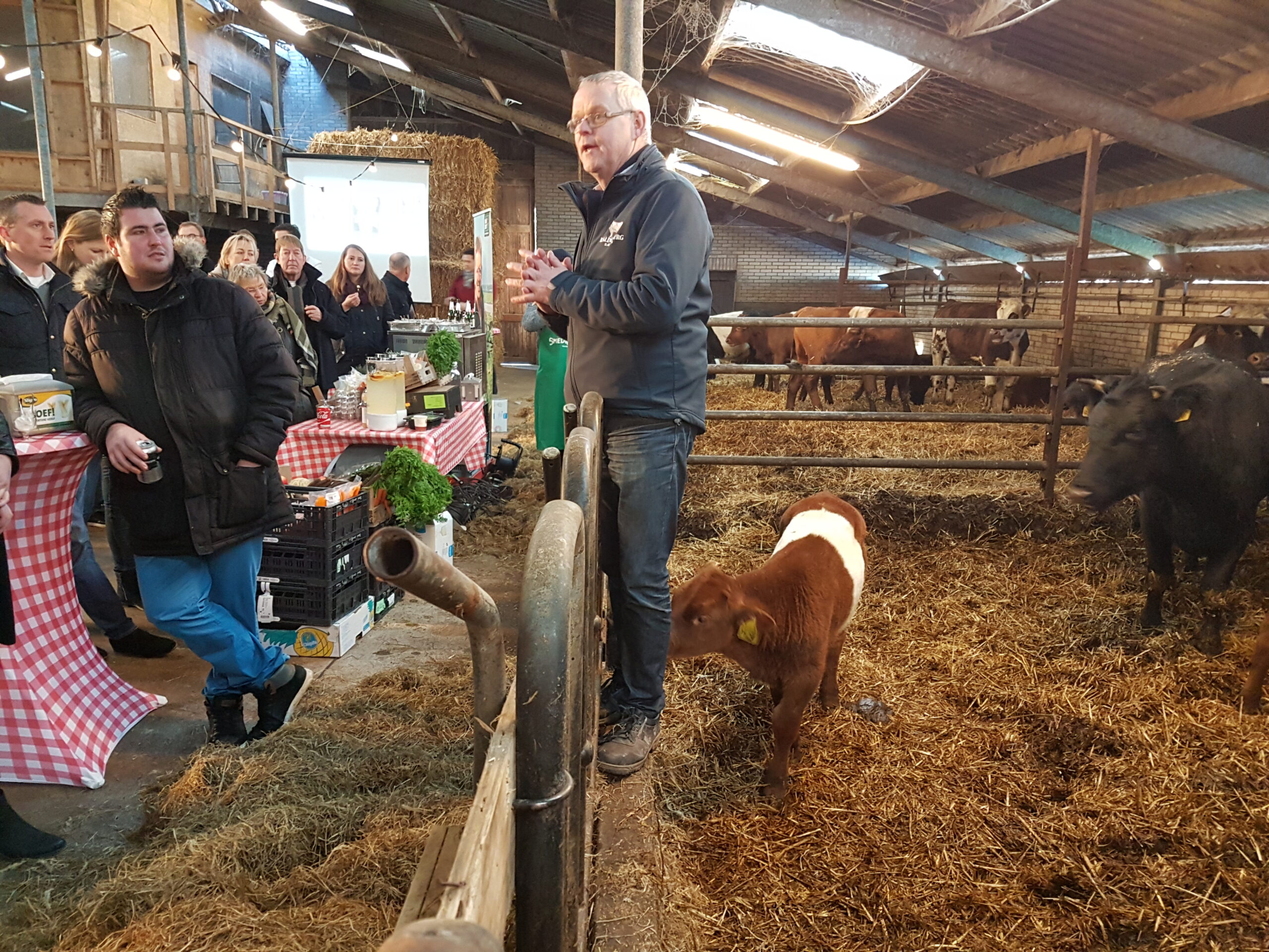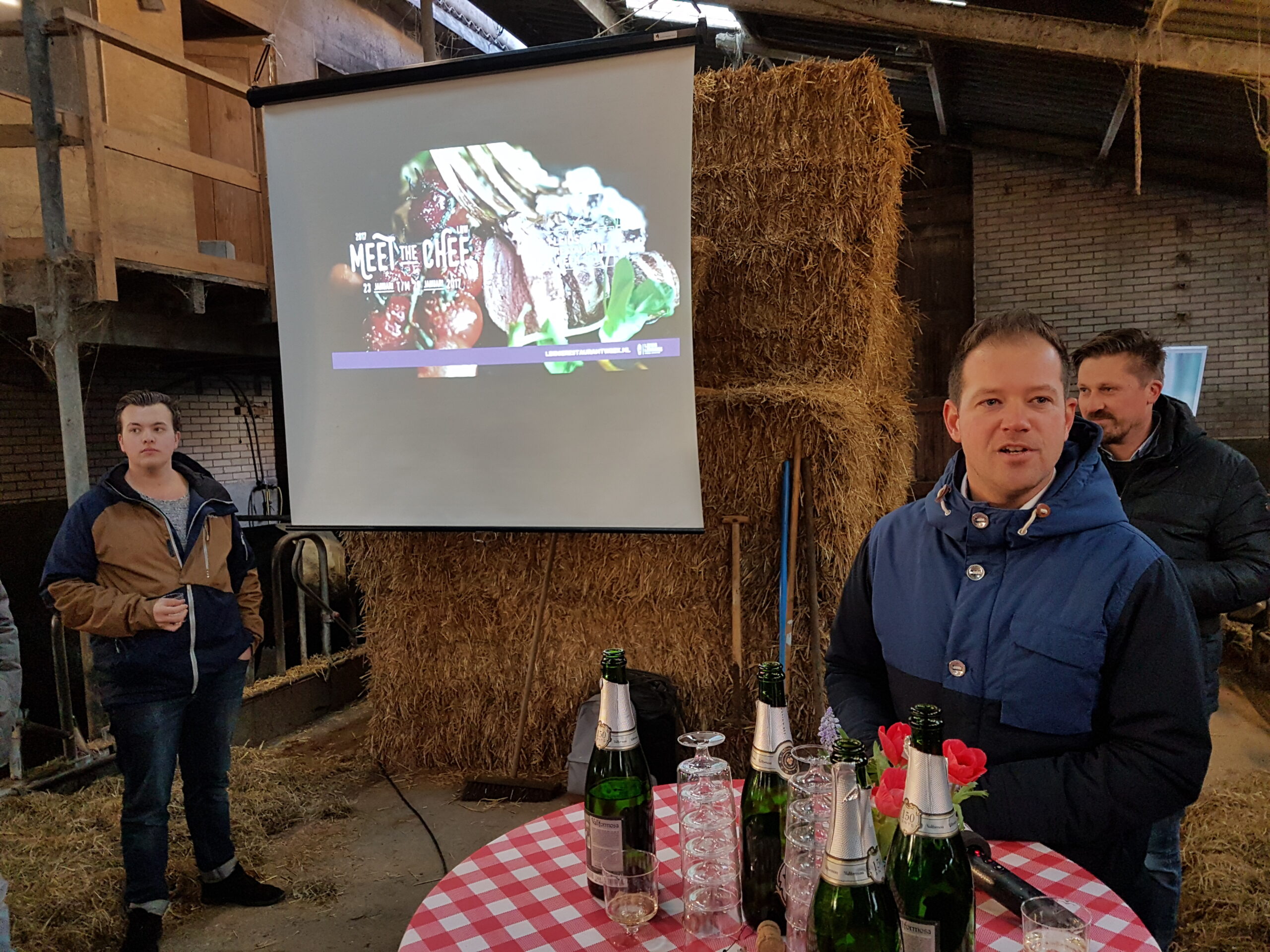 In de stal van de Lakenvelder Boerderij Boterhuispolder in Warmond werd gistermiddag de aftrap plaats voor de achtste editie van de Leidse Restaurantweek. De bekende chef-kok Michiel Deenik van The Roast Room uit Amsterdam hield een presentatie voor de verzamelden Leidse horeca-ondernemers, net als Gerrit Wafelaar van Slagerijen Kaldenberg die uitgebreid stilstond bij het Lakenvelder rund.