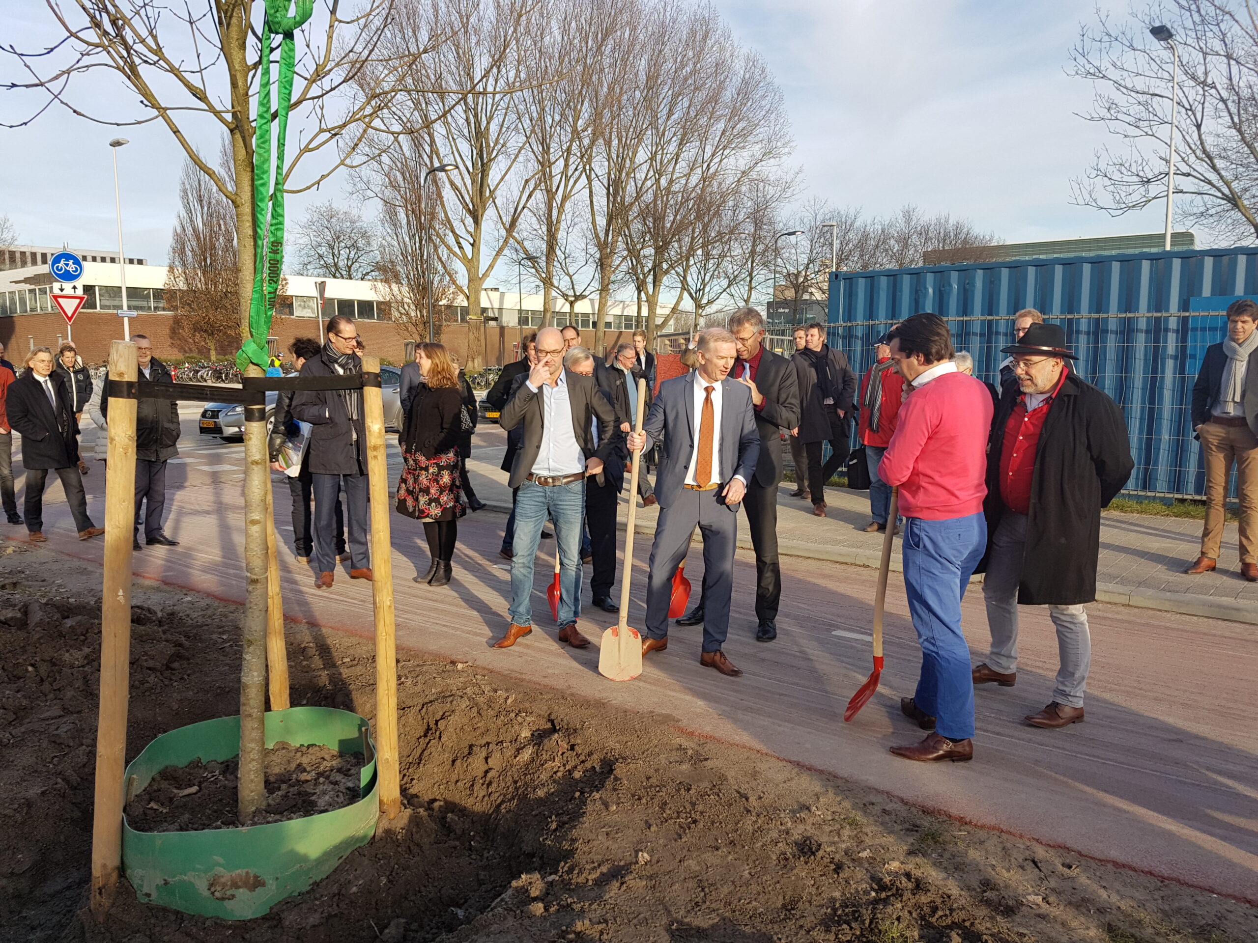 Met het planten van de laatste boom heeft wethouder Strijk (bereikbaarheid) vanmiddag de ontsluiting van het Leiden Bio Science Park (LBSP) officieel afgerond. Door de aanleg van de ongelijkvloerse kruising, de tunnels voor voetgangers en fietsers en een goede aansluiting op de nabijgelegen wegen, kan het verkeer op de Plesmanlaan sinds kort goed doorstromen en is het Bio Science Park beter bereikbaar gemaakt.