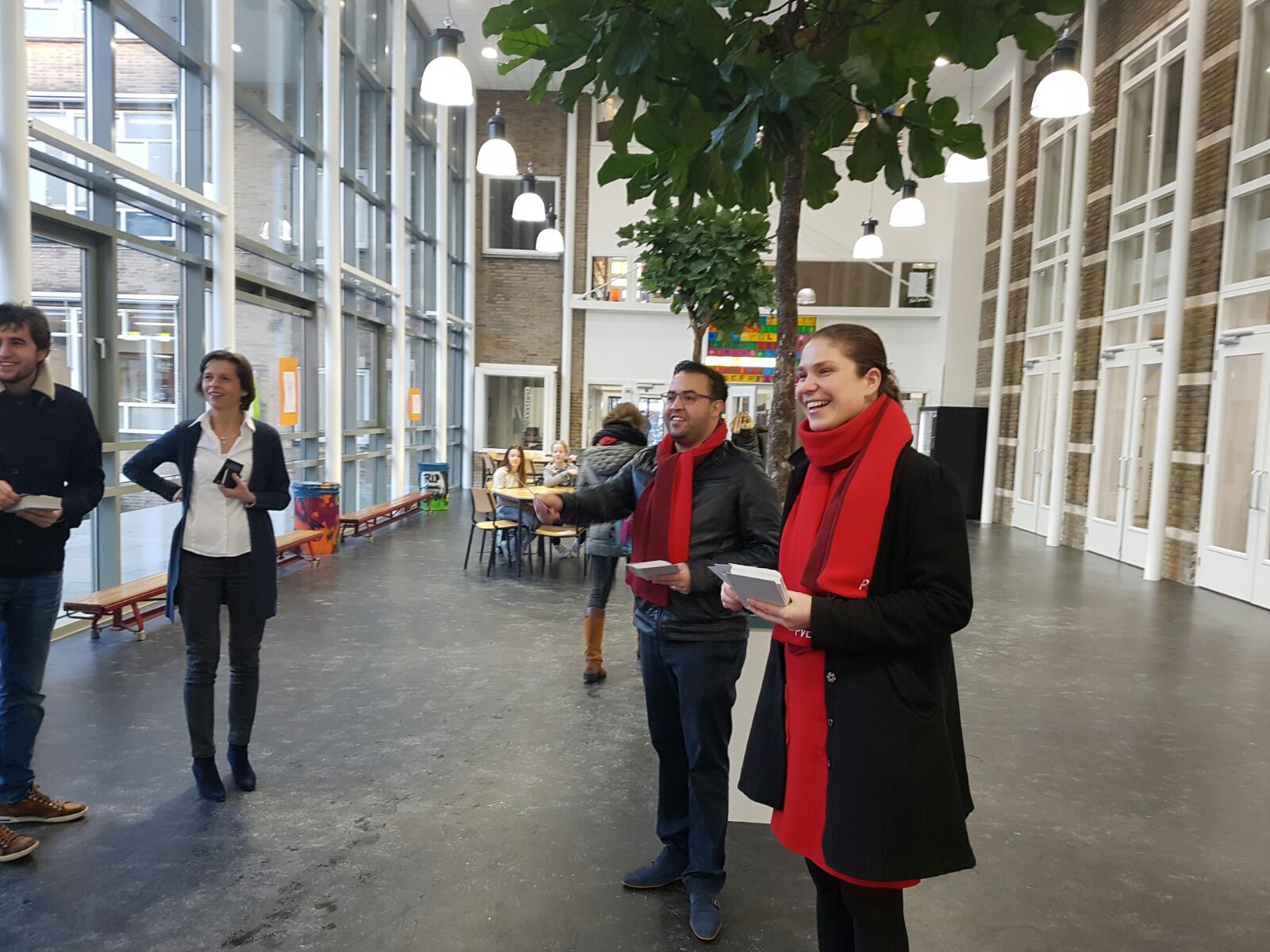 De docenten van het Leonardo Da Vinci College Kagerstraat zijn vanmorgen in het zonnetje gezet door de Partij van de Arbeid. Voordat het eerste lesuur begon, deelde de partij kaartjes uit die de leerlingen konden invullen en aan hun favoriete docent konden geven. Ook werd er een taart achtergelaten in de lerarenkamer en werd één van de docenten verrast met een bos bloemen.