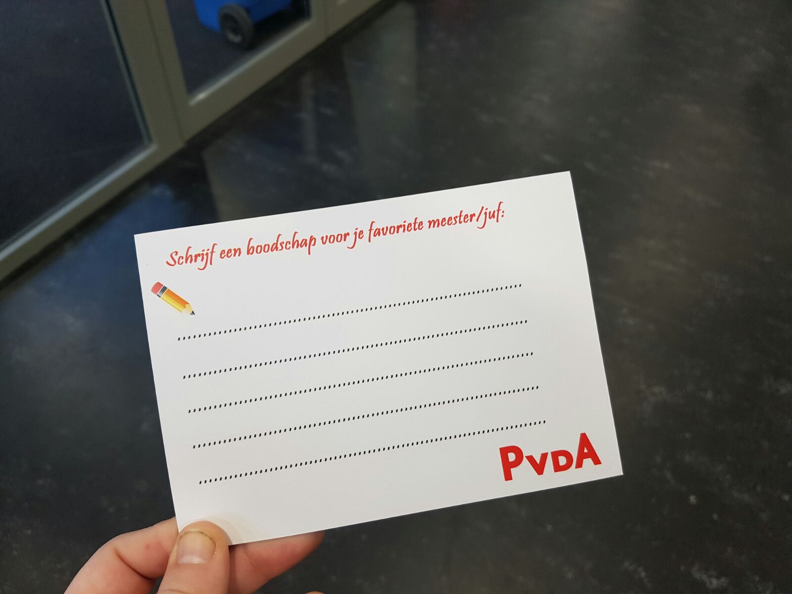 Naast duoraadslid Martijn Otten van PvdA Leiden, waren ook Tweede Kamerleden Loes Ypma en Mohammed Mohandis aanwezig. “We hopen op wat meer waardering voor de docenten vanuit de leerlingen”, zegt Ypsma. “En wat is er nou leuker dan een kaartje krijgen waar iets liefs op staat van je eigen leerlingen? Er wordt hard gewerkt in het onderwijs en eigenlijk is er te weinig waardering voor de docenten. De salarissen zouden wat omhoog moeten, maar we willen ze ook waardering geven met een bloemetje, een kaartje of op een andere manier.”