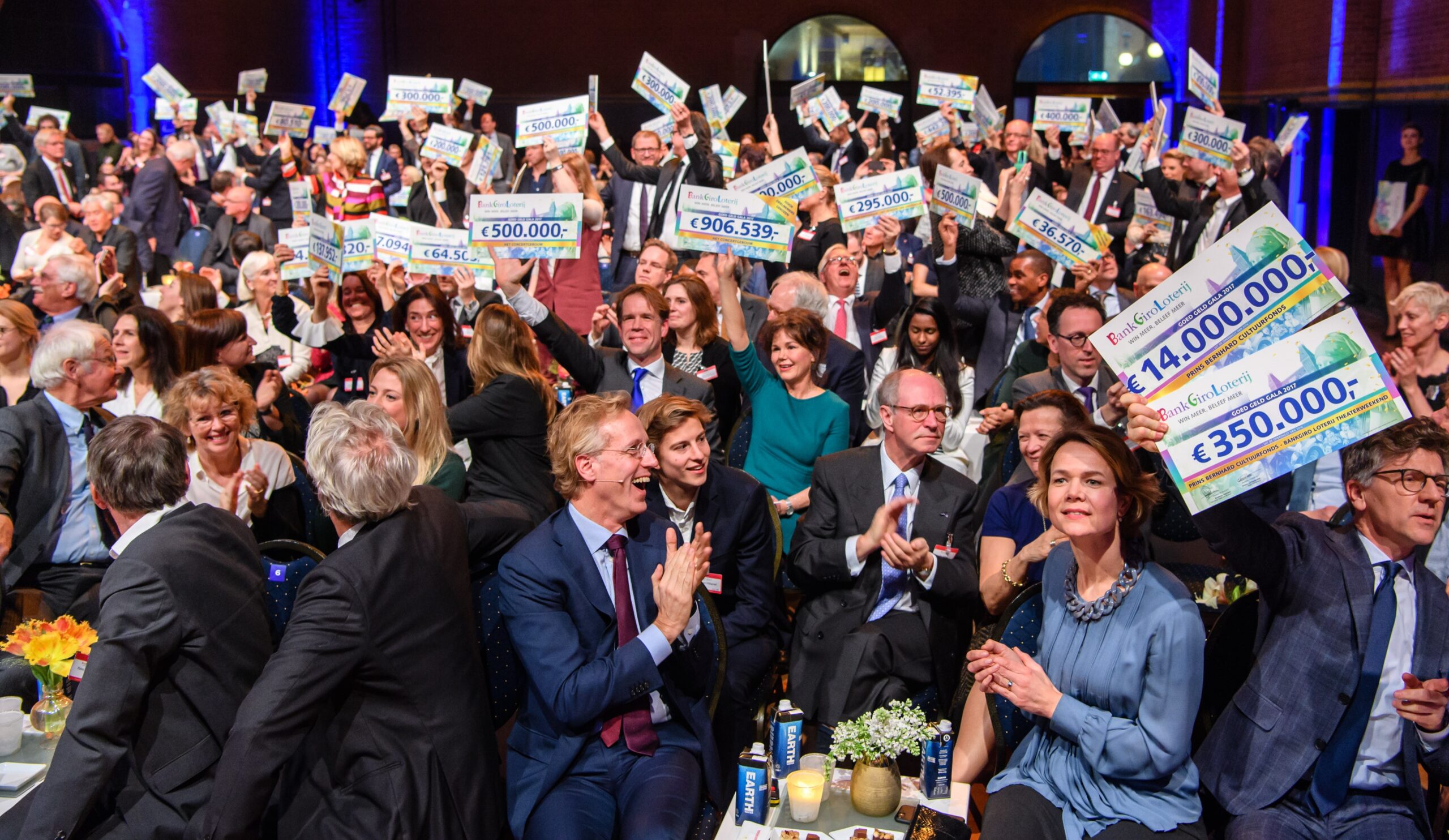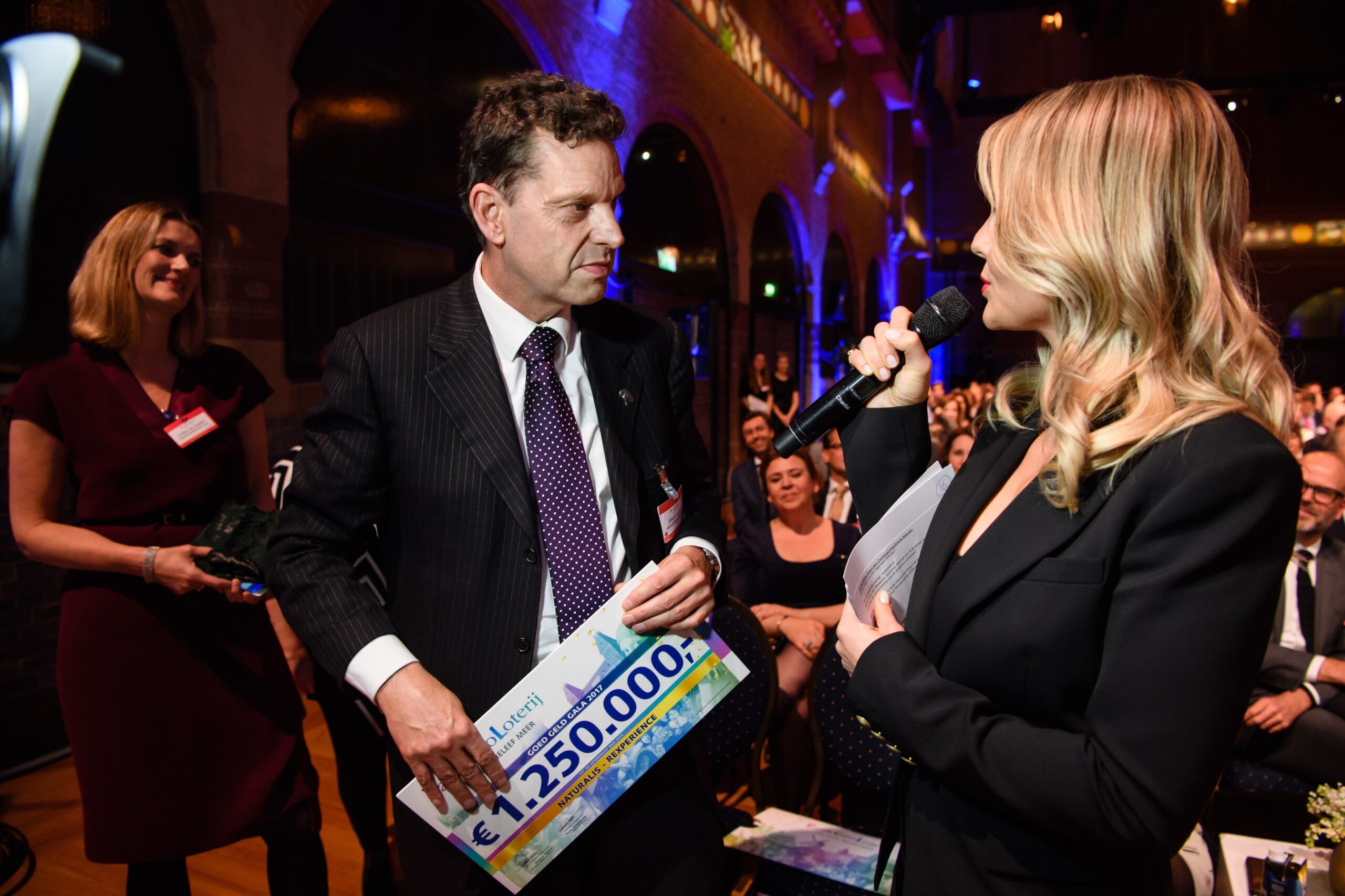 Edwin van Huis, directeur van Naturalis, werd afgelopen avond verrast met een enorme cheque tijdens het BankGiro Loterij Goed Geld Gala. Die kan de bedragen toekennen dankzij de ruim 580.000 Nederlanders die meespelen in de BankGiro Loterij die dit jaar een recordbedrag van 66,9 miljoen euro verdeelt onder 66 culturele instellingen in Nederland.