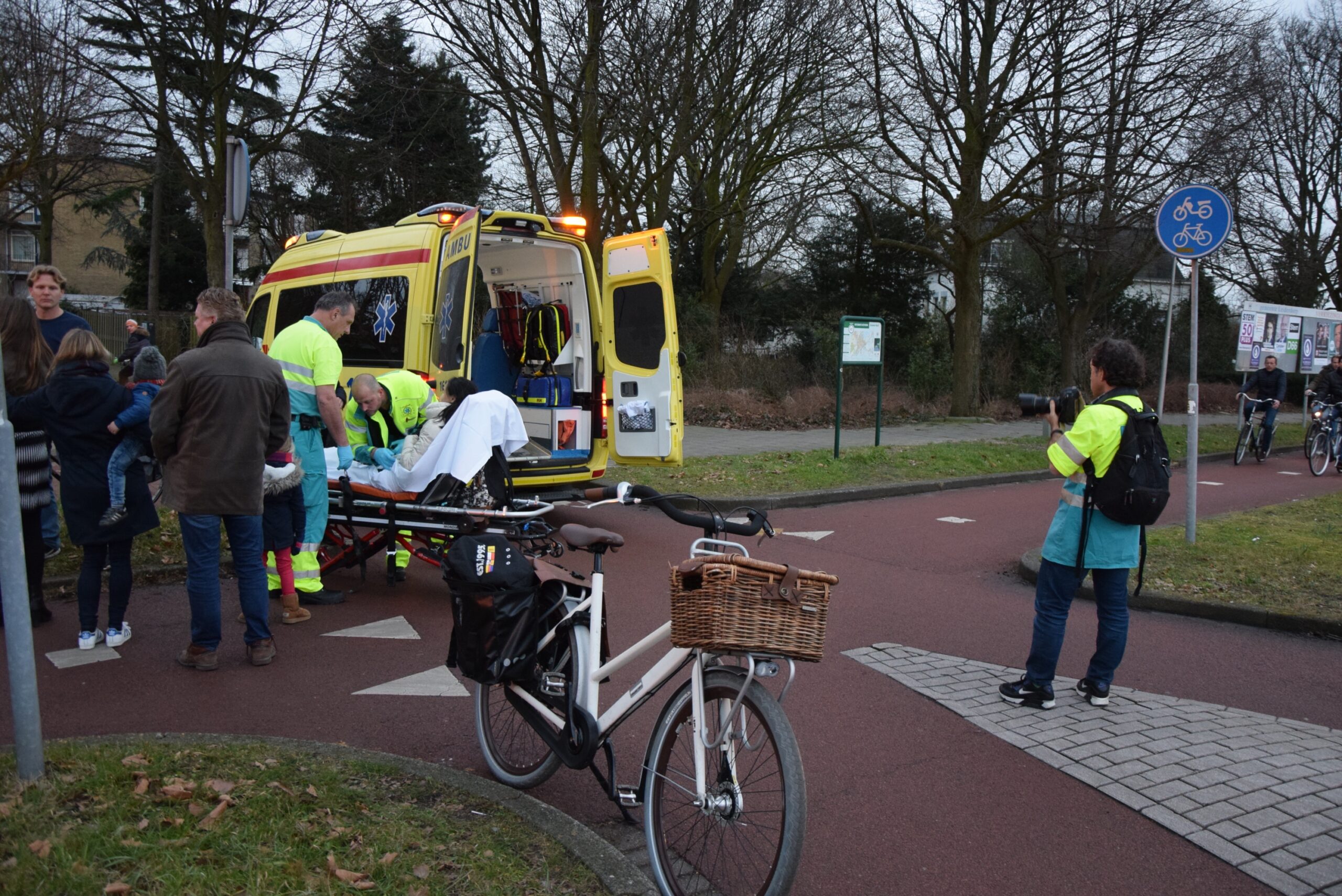 Een uurtje later was het op exact dezelfde plek opnieuw raak. Ook nu ging het weer om een fietser die onderuit was gegaan. De ambulancedienst had de gevallen vrouw net op de brancard gelegd en de ambulance ingeschoven, toen een derde fietser hard ten val kwam. Vlak achter de ambulance.