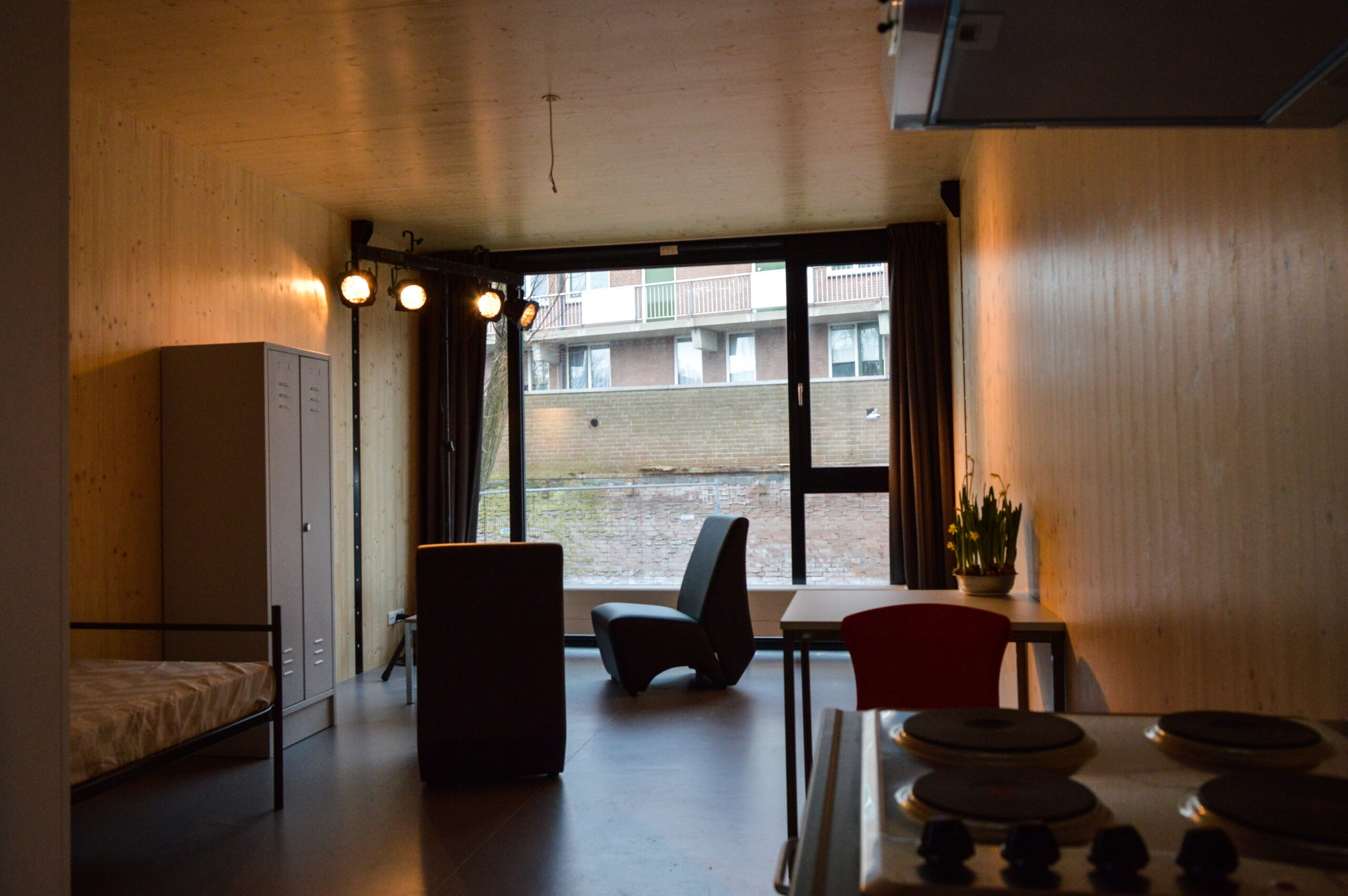 De gestapelde eenpersoonswoningen zijn geen containers. Het zijn massief houten woningen met allemaal een eigen keuken, badkamer en verwarming. Ze zijn bovendien extreem goed geïsoleerd. ‘All electric’ noemt Knijtijzer dat. “Dat betekent dat er geen fossiele brandstoffen nodig zijn”. Brandveilig zijn ze ook. Treurig genoeg is dat al voor de ingebruikname gebleken. Afgelopen nacht werd brand gesticht bij het complex. Daarbij raakte alleen een deel van de houten gevelbekleding beschadigd. “Volgens het bouwbesluit moet er tussen woningen een uur brandwerendheid zijn. Bij de Finch-modules is dat bijna drie uur.