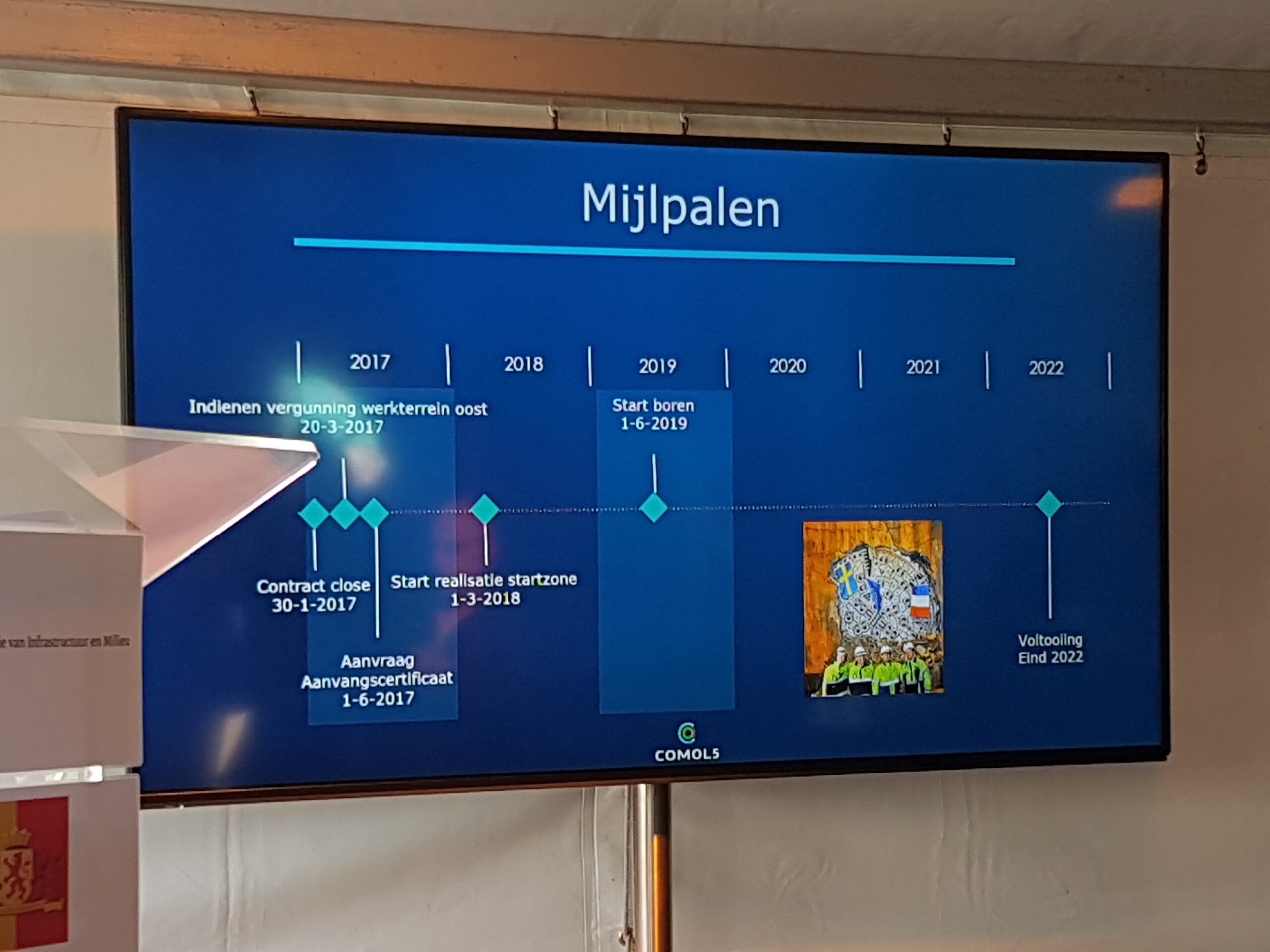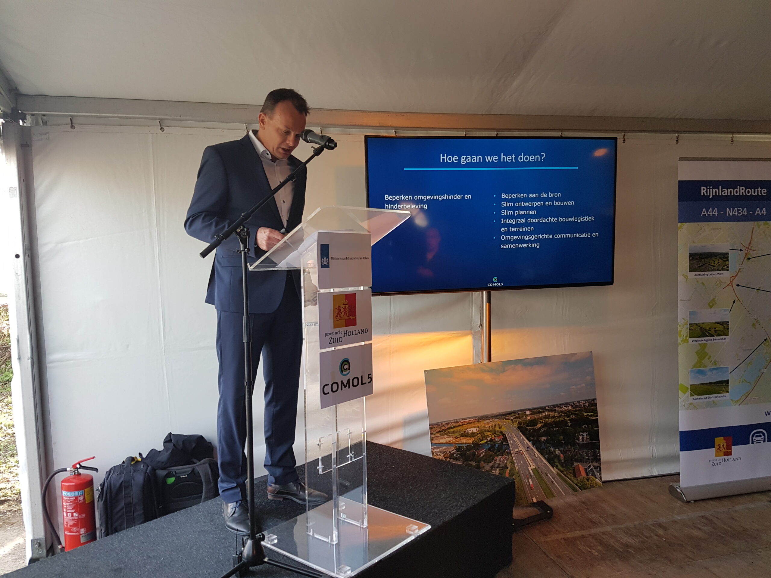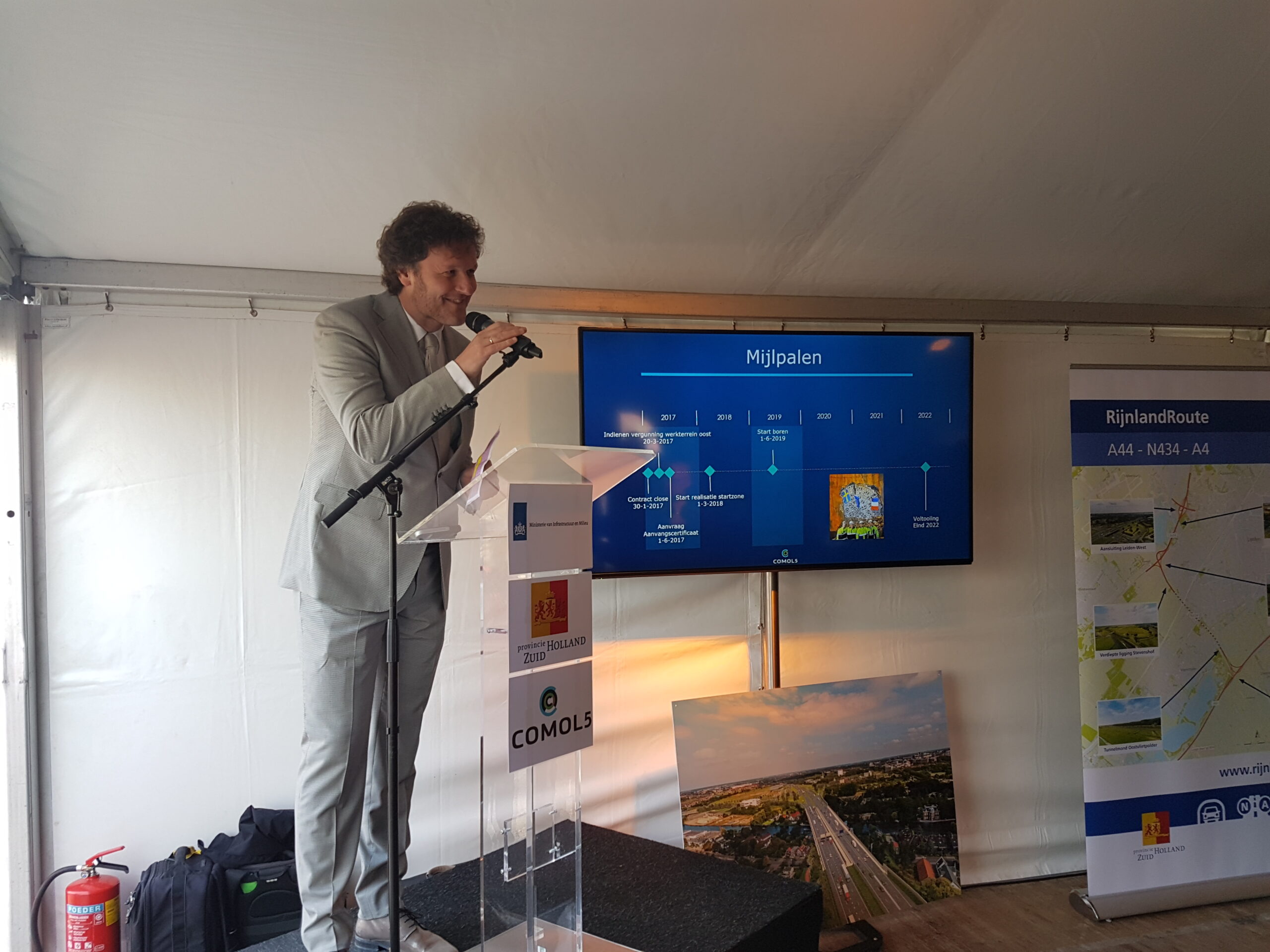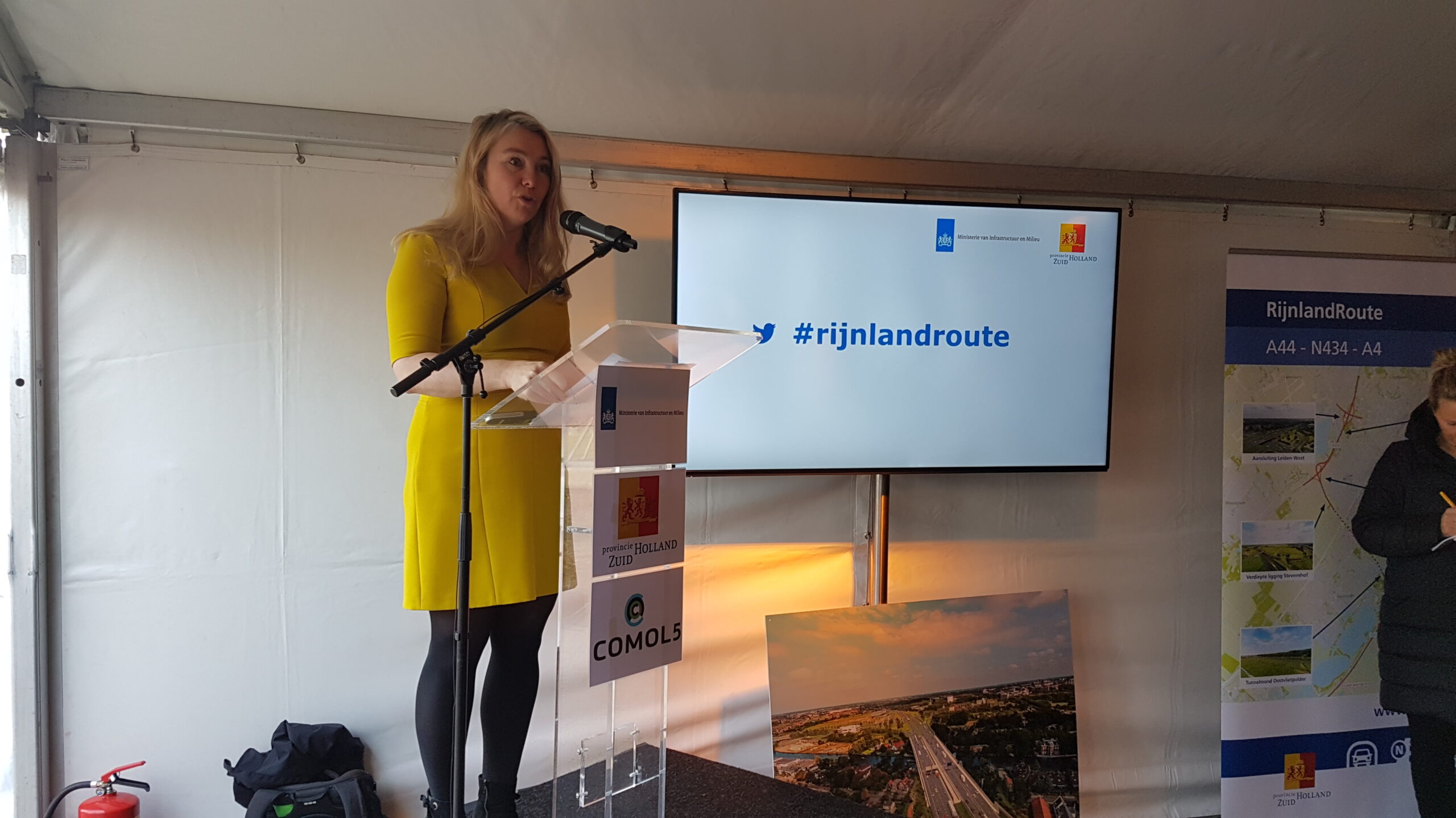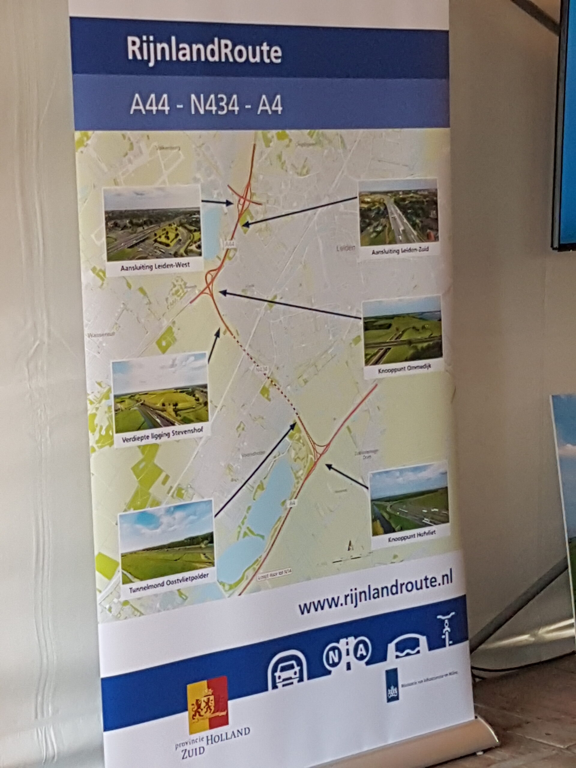 Na toespraken van minister Melanie Schultz van Infrastructuur en Milieu, Gedeputeerde Floor Vermeulen (Verkeer en Vervoer) van de provincie Zuid Holland en vertegenwoordigers van bouwcombinatie Comol5 werd met een gezamenlijke druk op de knop een groot bouwbord onthuld op de plek waar de komende jaren het knooppunt Ommedijk wordt aangelegd. dat is de aantakking van de N434, zoals de RijnlandRoute officieel heet, op de A44.