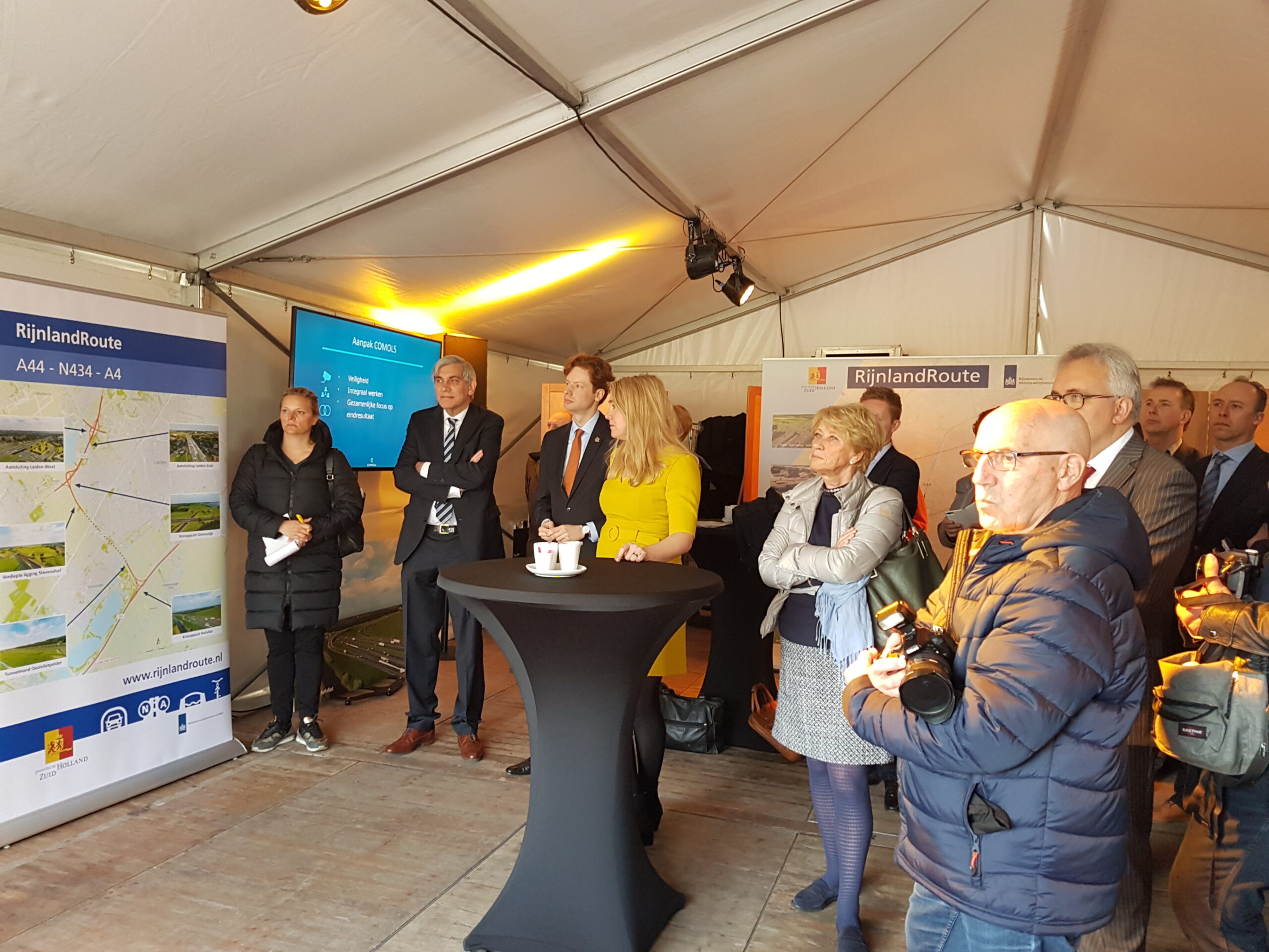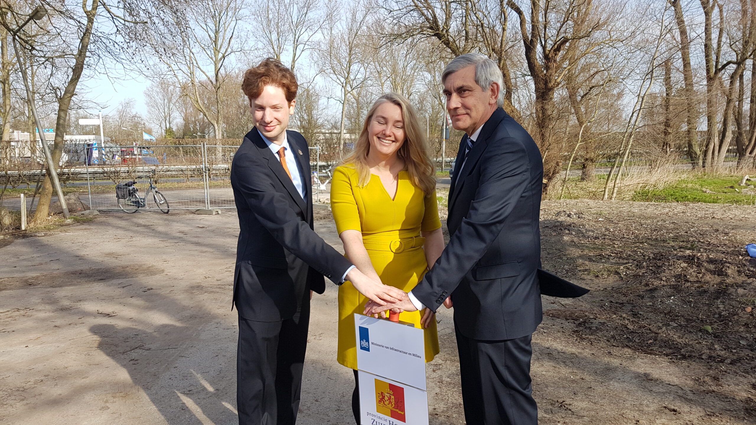 De start van de aanleg van de RijnlandRoute is vanmorgen officieel begonnen met een bijeenkomst op het terrein van het voormalige café De Drie Wilgen langs de Rijksstraatweg A44 bij Wassenaar.